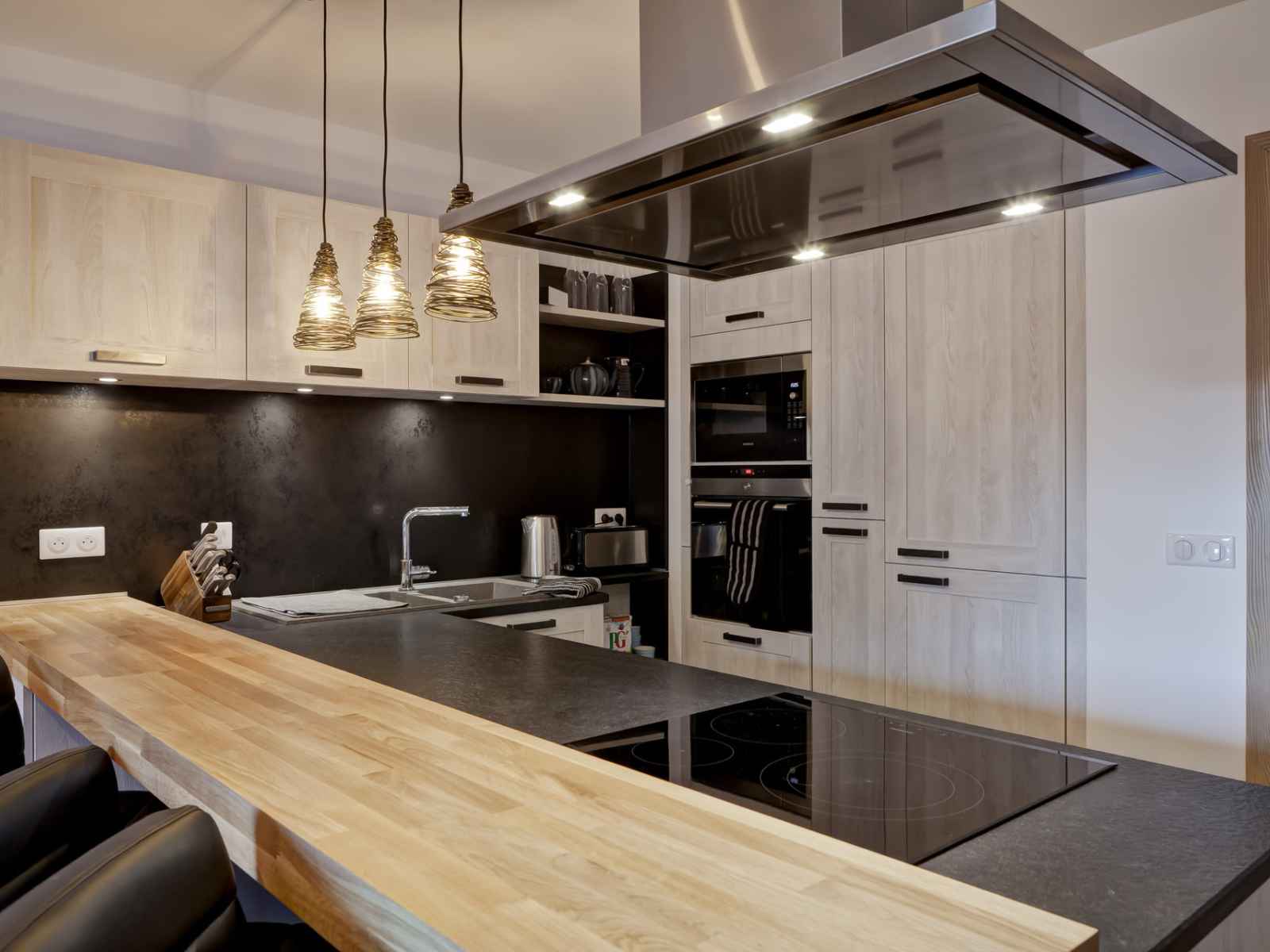 grande table, télévision écran plat et cheminée électrique. Cuisine équipée ouverte sur la pièce à vivre avec plaques à induction, four traditionnel électrique, micro-ondes, cafetière électrique à filtre, lave-vaisselle, hotte de cuisson et réfrigérateur avec freezer. COUCHAGES - Chambres en-suites : - Chambre 1 : 1 lit double King Size (180cm)ou 2 lits simples (2x90cm), rangements et spacieuse salle de bain avec toilettes attenante. - Chambre 2 : 1 lit double King Size (180cm) ou 2 lits simples, rangements, salle d'eau avec douche et toilettes attenante et accès au balcon. - Chambre 3 : 1 lit double King Size (180cm) ou 2 lits simples (2x90cm), salle d'eau avec douche et toielttes attenante et accès balcon. - Chambre 4 : 1 lit double Queen Size (160cm), rangements, salle de bain avec baignoire, douche et toilettes attenante et en angle, elle dispose d'une double exposition avec accès au balcon. - Coin montagne - Sans fenêtre : 1 ensemble de lits superposés (2 lits simples 2x90cm) avec grande salle d'eau avec douche et toilettes attenante. Le couchage en hauteur ne convient pas à un enfant de moins de 6 ans. - Salon : un canapé-lit convertible Queen Size pour 2 personnes (160x200 cm). Les salles de bains/d'eau attenantes incluent : 5 toilettes, 1 avec baignoire, 3 avec douches et 1 avec baignoire & douche. Casier à skis et sèche-chaussures privatifs dans le hall d'entrée de la résidence. 1 Garage avec lave-linge et 1 place de parking extérieure non couverte - Privée. Accès WiFi inclus. CONDITIONS DE LOCATION : Linge de lit inclus du 15/12 au 30/04 uniquement, sinon en supplément. Linge de toilette et ménage de fin de séjour non inclus et sur demande. Caution demandée à l'arrivée. Animaux non autorisés. Appartement non fumeur. cet appartement n'est pas equipé pour les pmr