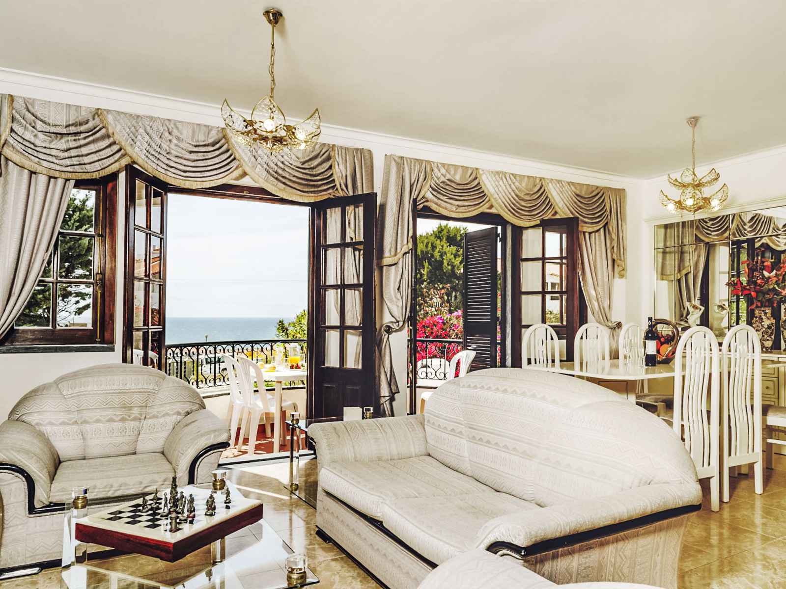 "duplex loureiro", appartement sur 2 niveaux 5 pièces 110 m2, au rez-de-chaussée. aménagement confortable et plaisant: séjour/salle à manger avec 1 divan-lit double et tv (câblée) (écran plat). sortie sur le balcon. cuisine (4 plaques de cuisson, lave-vaisselle, micro-ondes) avec table pour les repas. douche/wc. pas de chauffage. À