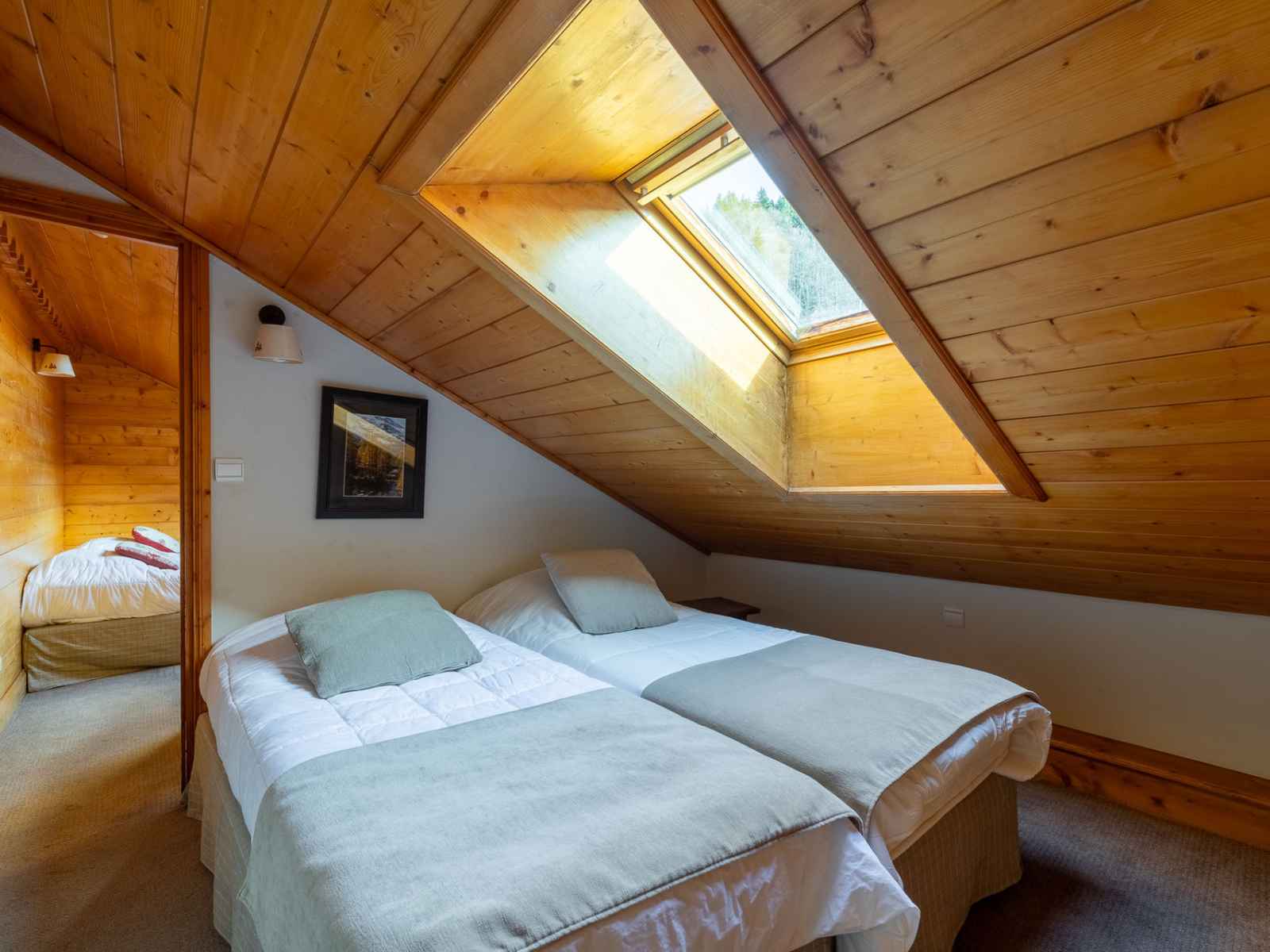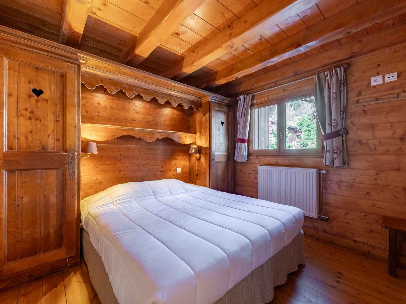 résidence. Les couchages Une 1ère chambre avec 1 lit double (160cm) et sa salle de bain attenante avec wc. Une 2ème chambre 2 lits simples avec une douche attenante et un wc. Une 3ème chambre avec 2 lits simples, salle de bain et un balcon. Une 4 ème chambre avec 2 lits simples. Sur la mezzanine 2 lits simples. Le coin cuisine Il est équipé de plaques électriques, d'un four, d'un lave vaisselle et d'un petit refrigérateur. Les sanitaires une salle de bain avec wc, 2 salles de douches dont 1 avec un wc et un wc séparé. Les équipements complémentaires Une cheminée (bois non fourni), un casier à skis et une place de parking couverte. Accès à la piscine couverte de la résidence. Informations supplémentaires Nos amis les animaux ne sont pas tolérés dans cet appartement Appartement non fumeur Le linge de lit et de toilette sont inclus sauf pour les courts séjours et en été. Une clé 4g est disponible sur demande à votre agence CIS à la location au tarif de €41/semaine. Possibilité de réserver des forfaits de ski avec tarif avantageux (hors vacances scolaires)
