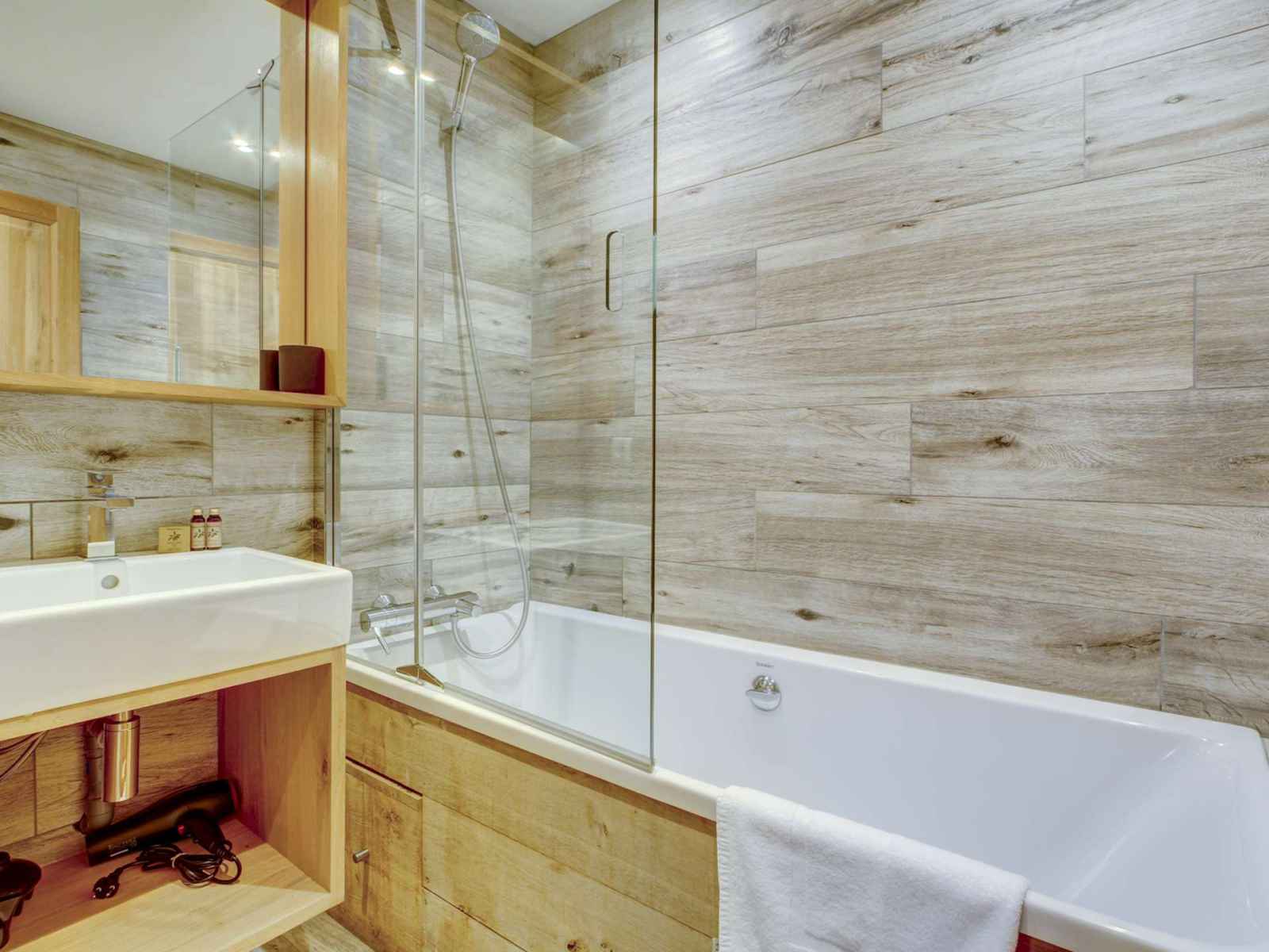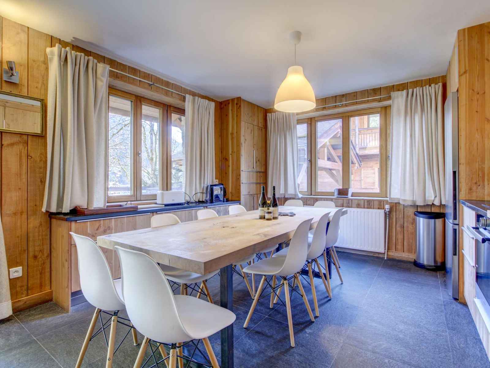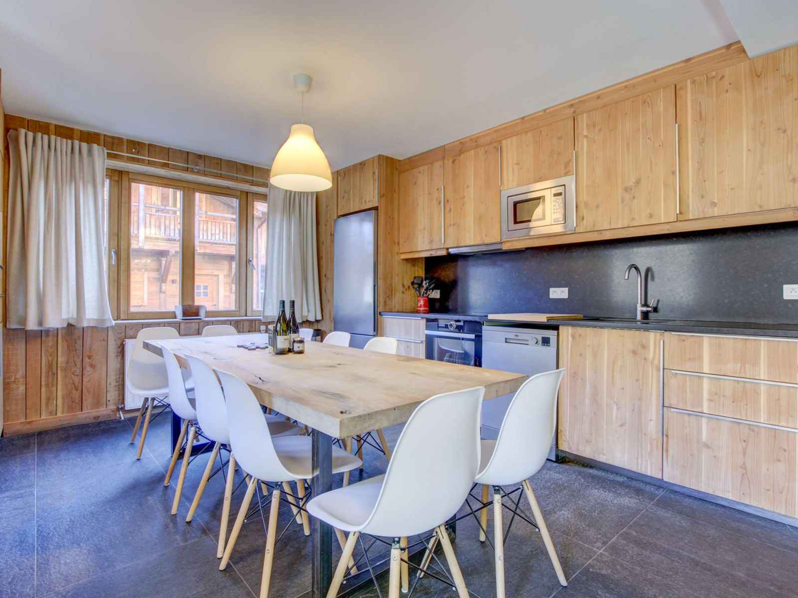 Appartement au rez-de-chaussée dans un chalet entièrement rénové avec grande terrasse. design contemporain conservant le charme montagnard.