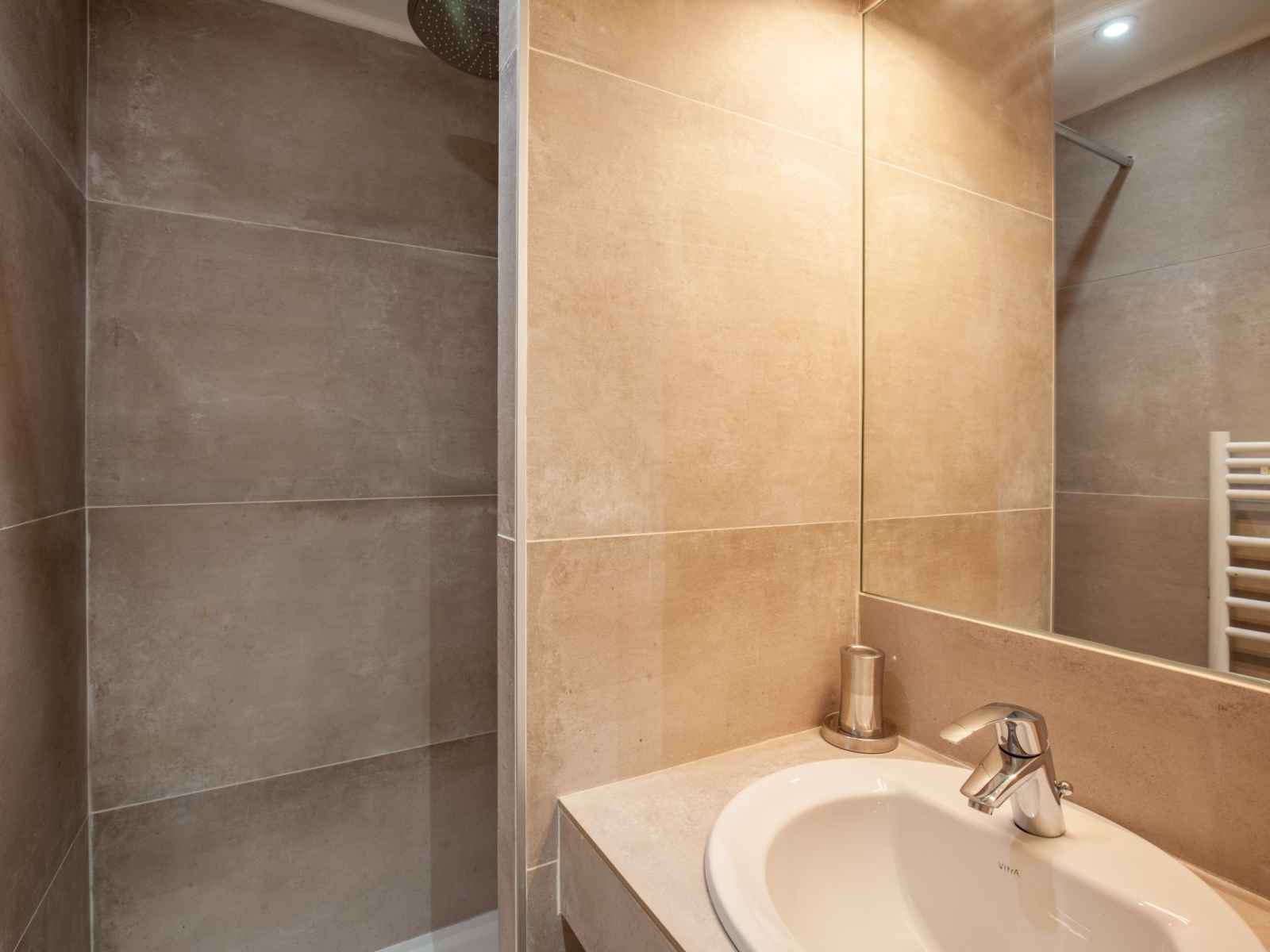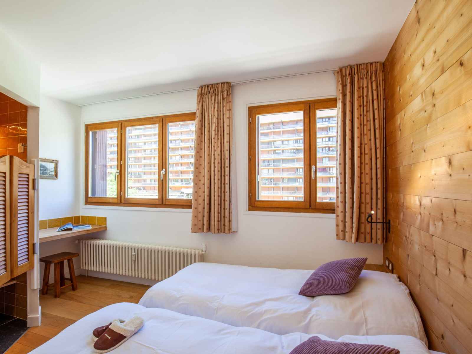 Apt 5 pièces 105 m2 au 6ème étage. aménagement confortable et de bon goût: séjour/salle à manger avec tv et écran plat. 1 chambre avec 1 grand-lit (160 cm, longueur 190 cm), lavabo et douche. 1 chambre avec 2 lits (80 cm, longueur 190 cm). 1 chambre avec 2 lits (80 cm, longueur 190 cm), lavabo et douche. 1 chambre avec 2 x 2 lits