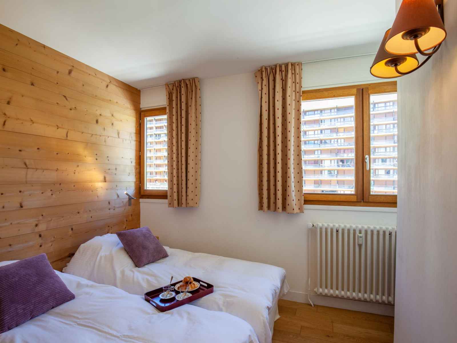 superposés (80 cm, longueur 190 cm). Cuisine ouverte (four, lave-vaisselle, 4 plaques à induction, micro-ondes). Salle de bains, douche, 2 WC séparés. Balcon, situation sud-est. Meubles de terrasse. Superbe vue panoramique sur le lac, les montagnes et les pistes de ski. A disposition: lave-linge, sèche-linge. Internet (Connexion WIFI, gratuit). Veuillez noter: logement non-fumeur pas de parking. Détecteur de fumée. Annonce d'un particulier (art 155, IV du CGI).