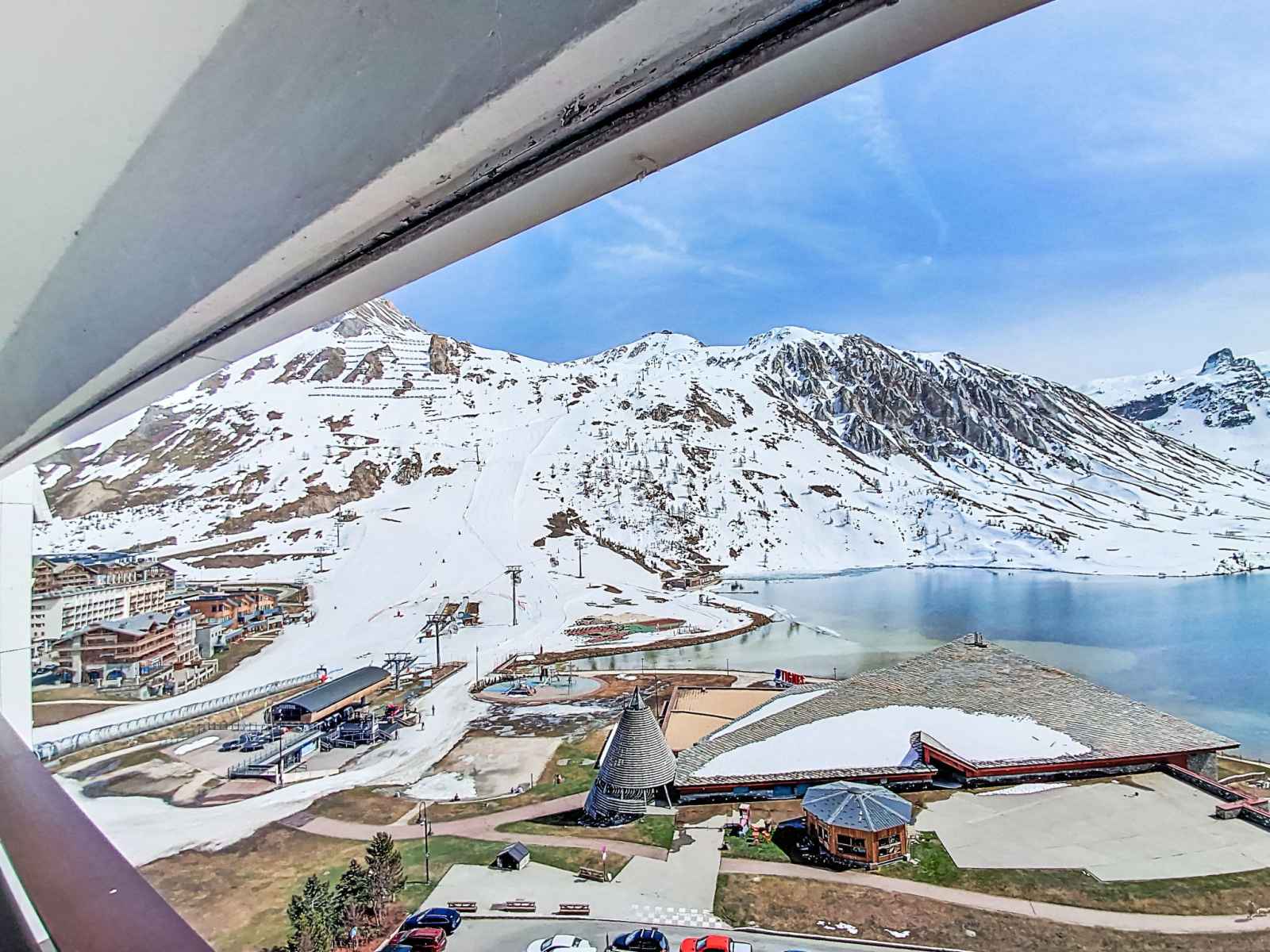 Tignes le lac: belle résidence "palafour (le lac)", de 11 étages. situation ensoleillée dans un quartier résidentiel, excellente situation: centrale mais tranquille, juste au bord du lac, juste au bord du domaine skiable. infrastructures de la résidence: restaurant, boutique, ascenseur, local pour les skis, chauffage central. supermarché 10