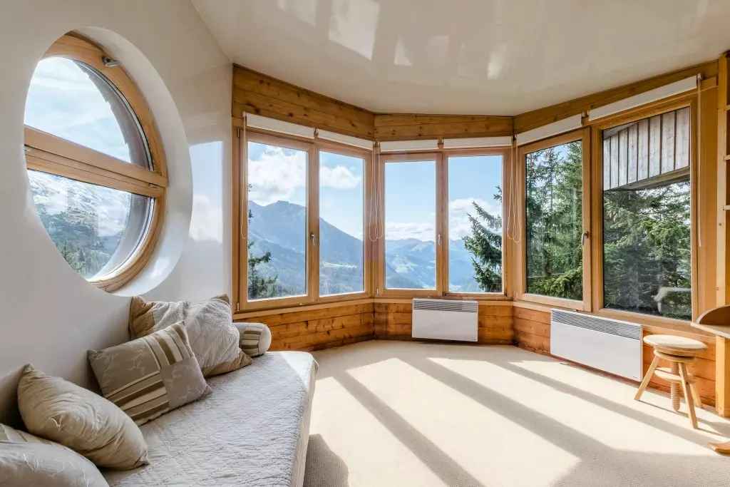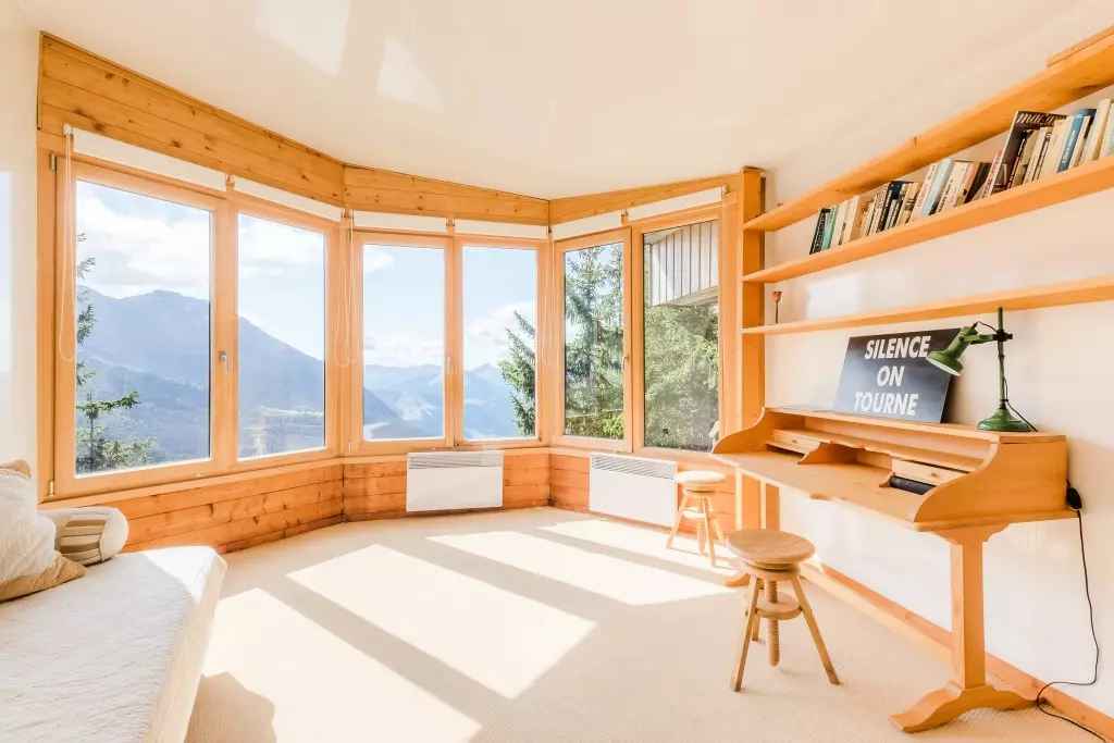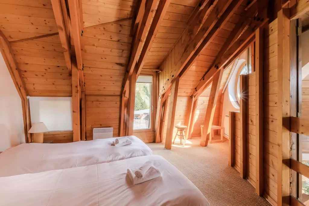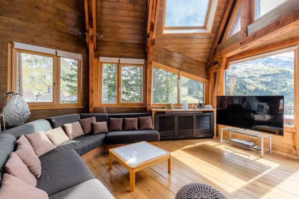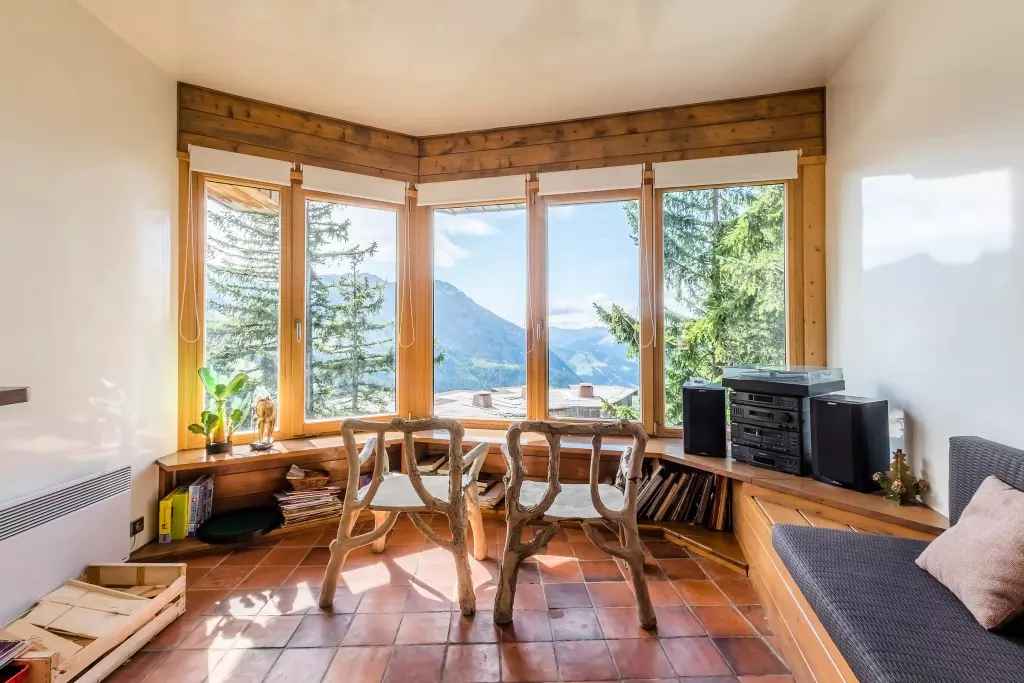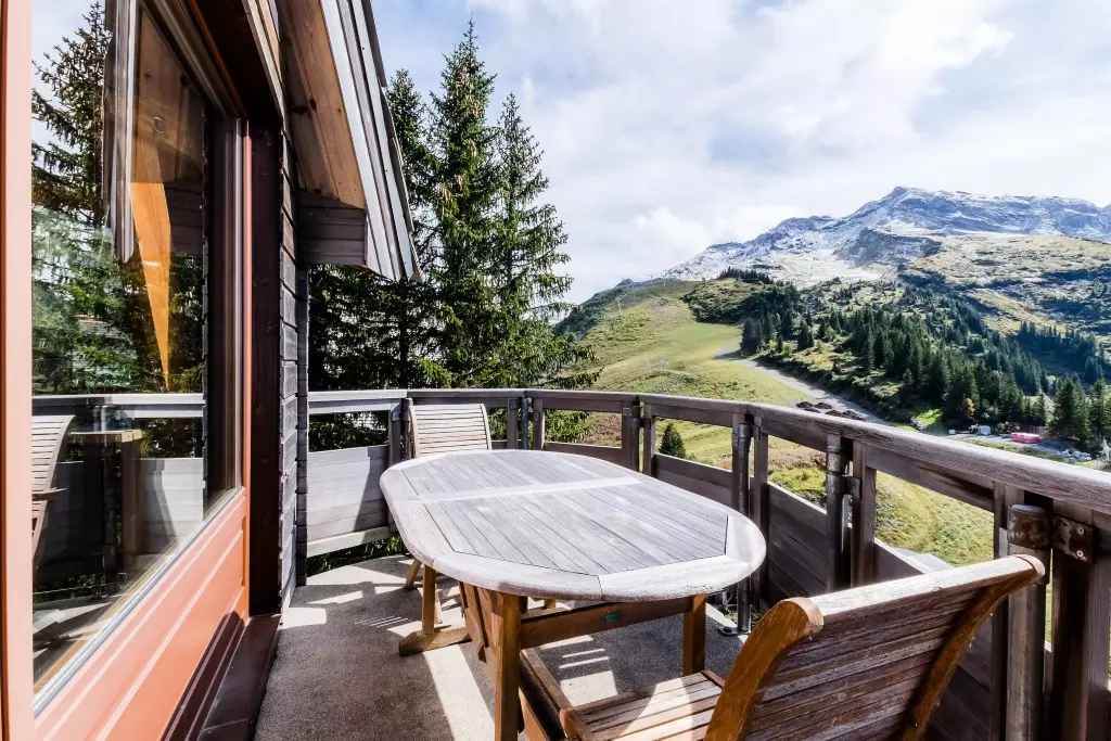 une belle vue sur la vallée de morzine s’offre à vous depuis l’un des deux balcons de ce chalet de montagne à avoriaz installé au pied des pistes.
