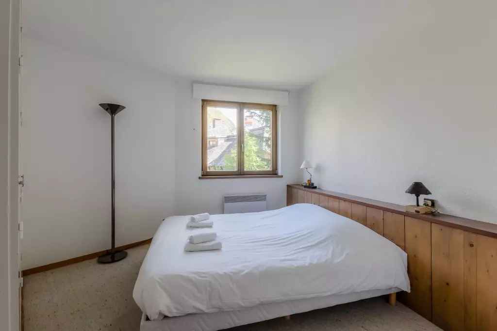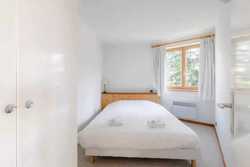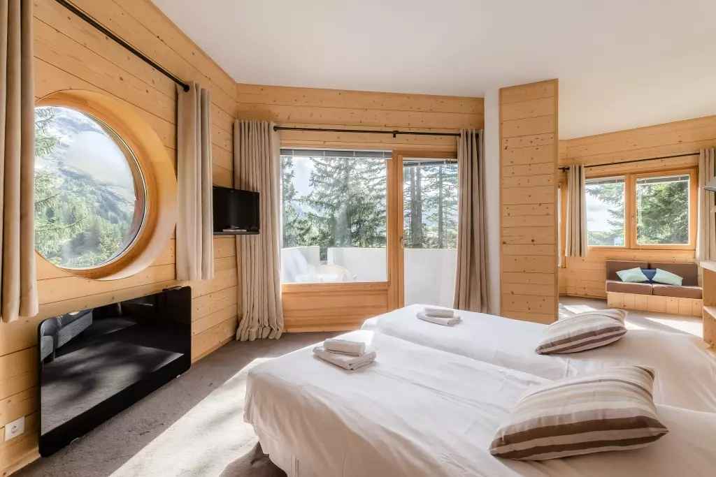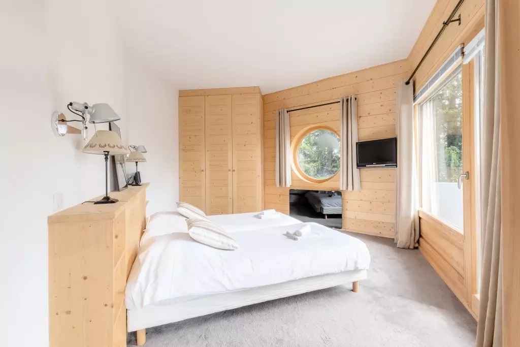 Au niveau -3 : 1 chambre avec 1 lit double et 1 lit bébé (sur demande). 1 suite parentale avec salle de douche attenante : 1 lit double (2x90x200), 1 télévision, 2 sofas et accès à un balcon exposé sud.