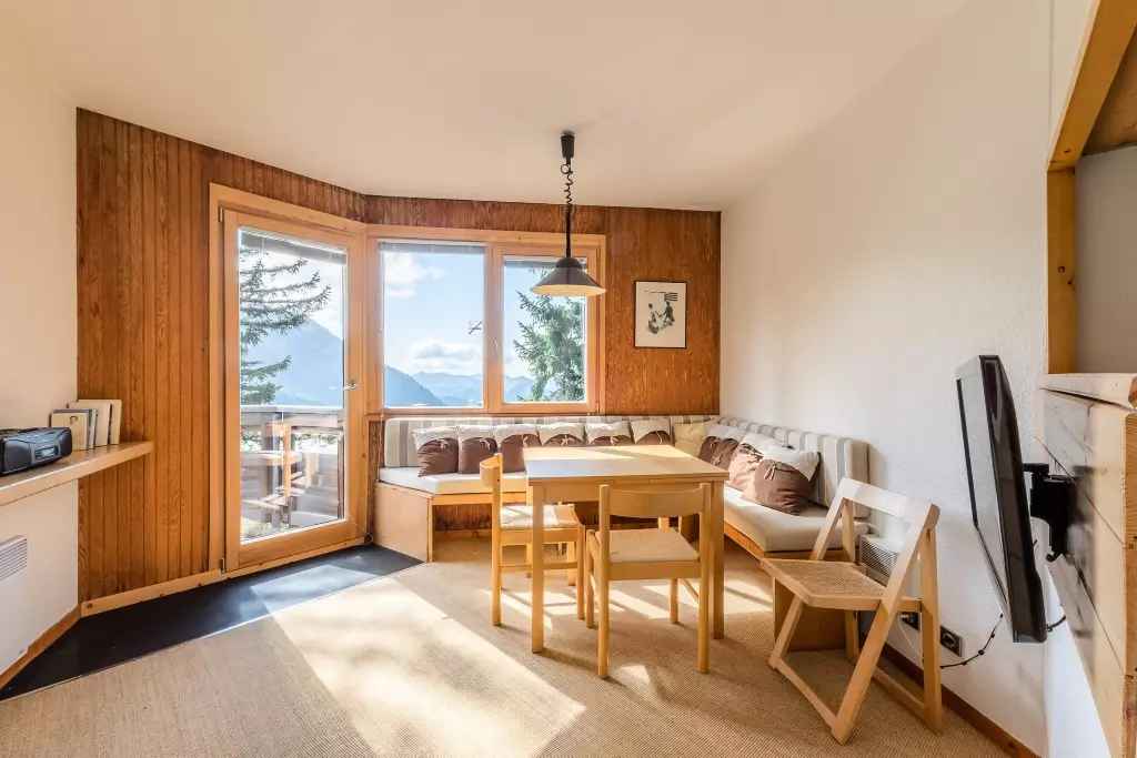 Au niveau -1 : 1 table avec banc, 3 chaises et télévision.