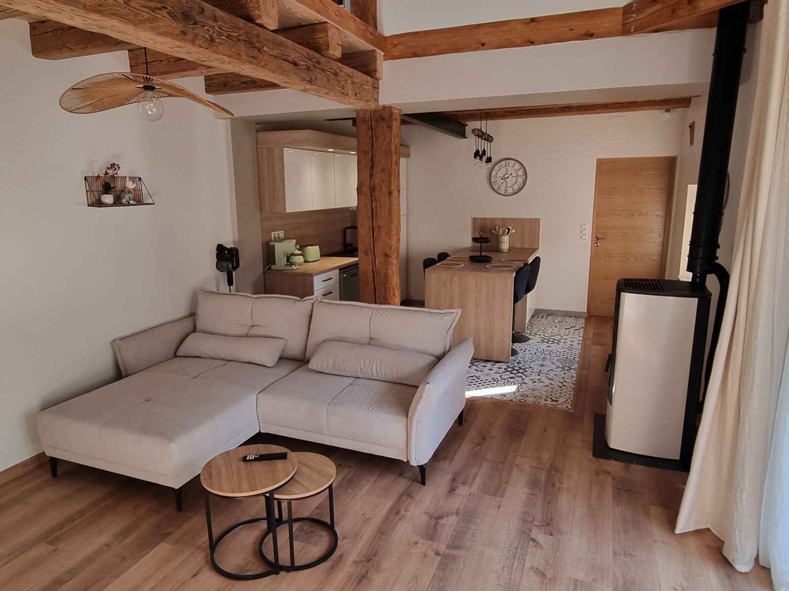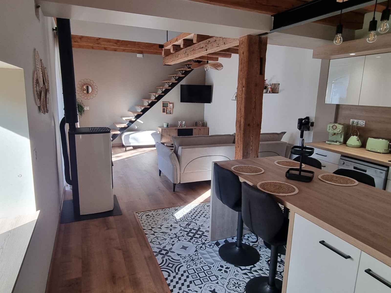 La grange de guew est un gîte de charme de 95m2 avec un espace détente privatif (jacuzzi et sauna), une chambre spacieuse en mezzanine, une terrasse privative et une espace de vie ouvert en rez de chaussée. lorsque vous entrez dans la grange de guew au rez de chaussée, un grand espace de vie vous y attend. l'espace salon est pourvu d'une tv