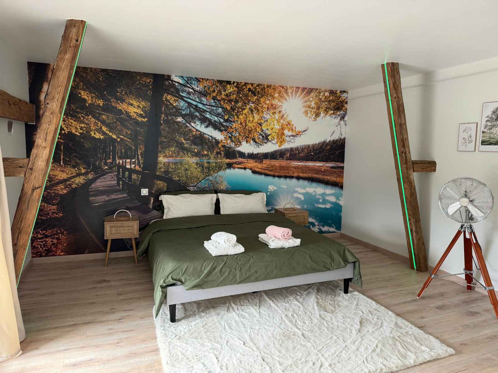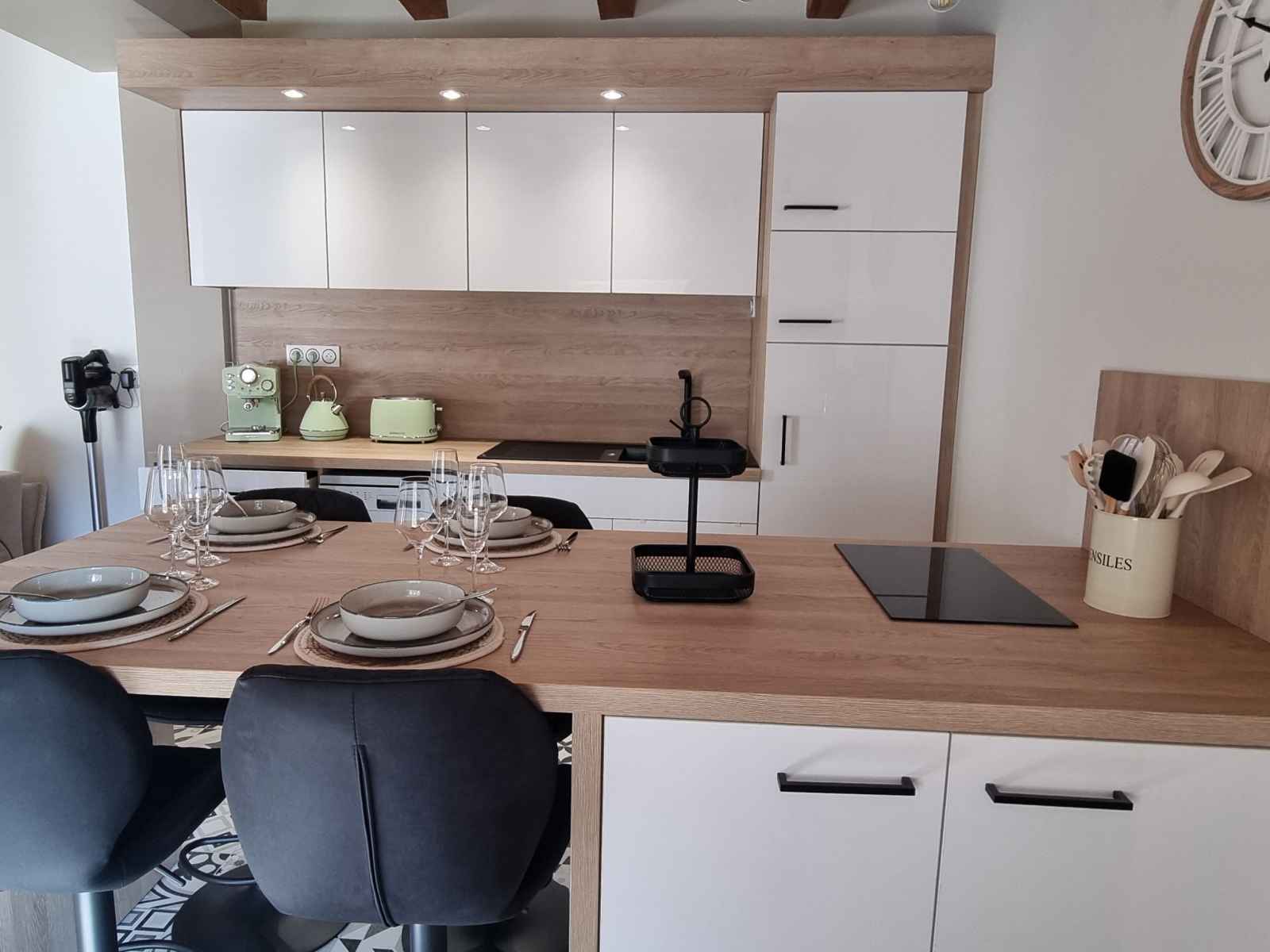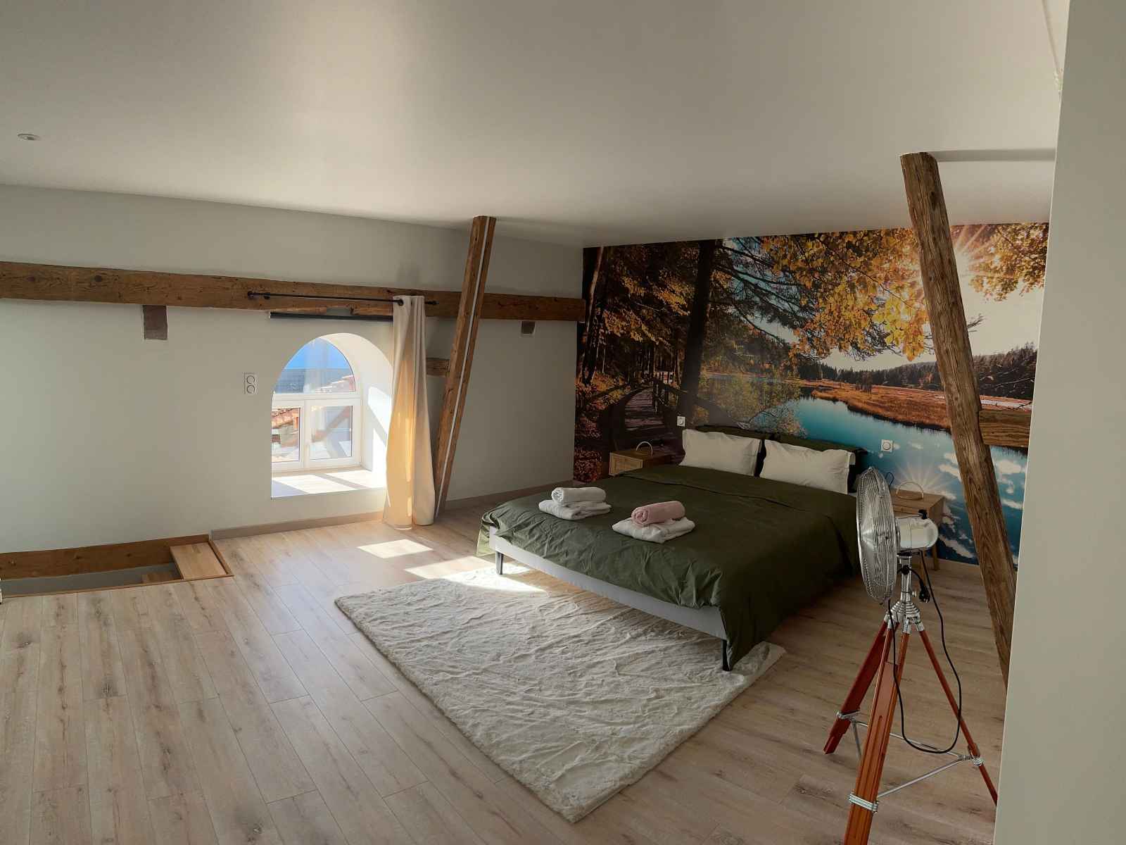 écran plat connecté avec smart TV (Netflix (accès à un compte gratuitement), YouTube...), d'un canapé convertible 140x190cm et des jeux de société sont à votre disposition. La cuisine est ouverte sur le salon et est entièrement équipée avec tout le nécessaire : micro-ondes, four, réfrigérateur 140L, plaque à induction 3 foyers, lave-vaisselle, grille-pain, bouilloire, machine à café expresso, mixeur à soupe, batteur, appareil à raclette, appareil à fondu et tout le nécessaire à vaisselle. Également quelques aromates pour agrémenter par une petite touche perso à votre cuisine faites sur place si besoin. Vous avez également accès par la pièce de vie à l'espace bien être privatif avec un jacuzzi spacieux 5 places un sauna infrarouge, et une douche à l'italienne situé à côté . Les peignoirs et les serviettes sont à votre disposition gratuitement. Cet espace est en accès libre et est exclusivement réservée pour vous pendant votre séjour. A l'étage, une chambre très spacieuse en mezzanine de 22m2 avec un lit de 180x200cm et donnant sur un filet suspendu où vous pourrez vous y détendre. Relaxation détente . Un grand dressing avec machine à laver et nécessaire de repassage sont disponibles dans le logement. Vous trouverez également un WC indépendant et une salle d'eau avec douche à l'italienne 140x90, un sèche cheveux et un lisseur, les serviettes sont fournis. Un espace extérieur clôturé privatif de 25m2 composé d'une table avec chaises, un parasol, 2 relax, barbecue, idéal pour manger et vous détendre en toute intimité. Pour la saison d’été Pour vos loisirs, 2 VTT sont à disposition ainsi que des raquettes à neige. Un garage fermé est à également à votre disposition pour vos 2 roues si besoin. Entrée de l'hébergement de plain pied, chambre, salle d'eau et WC à l'étage. Arrivée dans le logement est à partir de 17h00