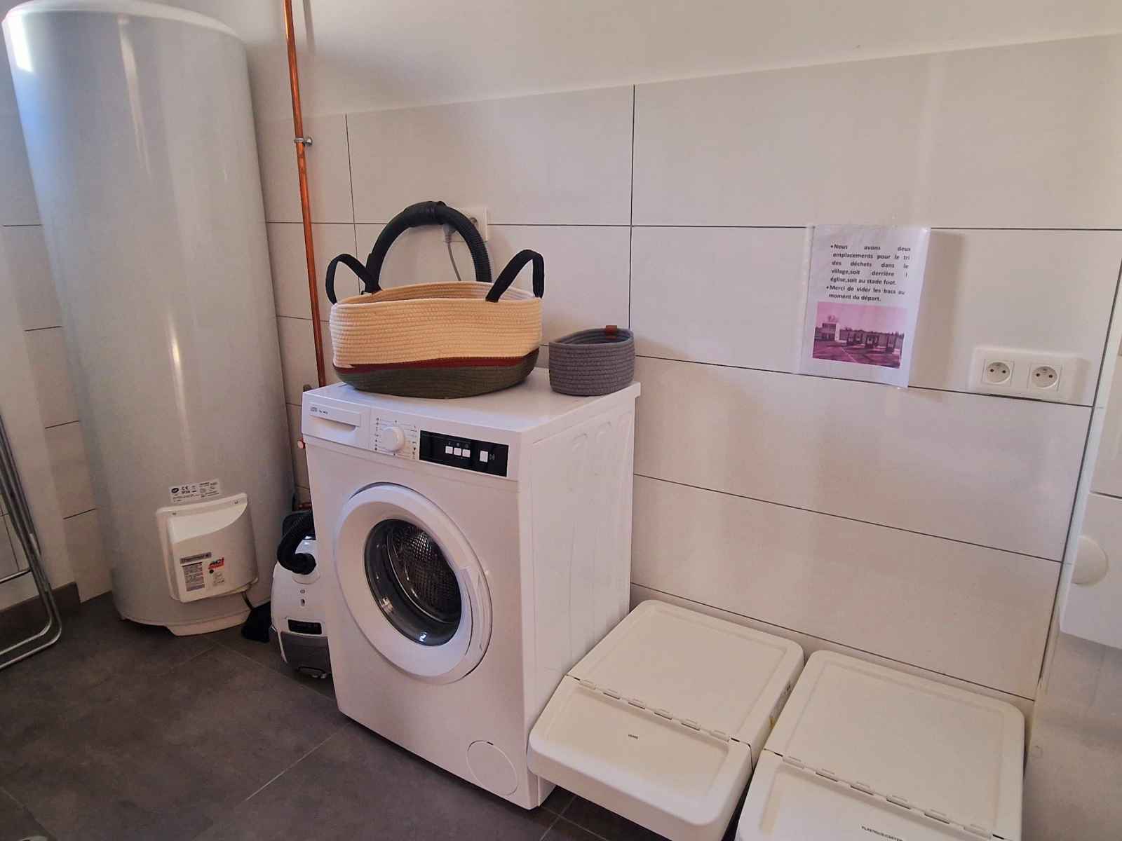 le rez de chaussée comprend une cuisine équipée, un espace repas, une coin salon, un wc indépendant et une buanderie équipée d'un lave