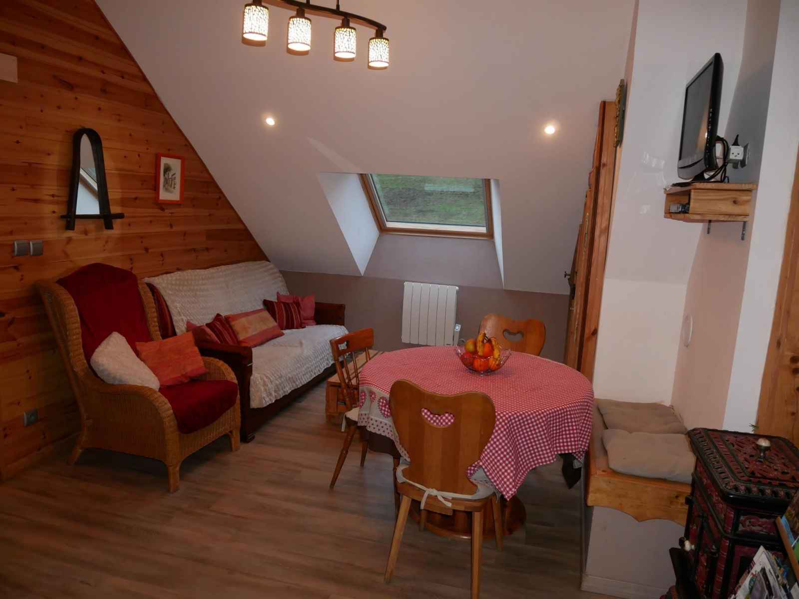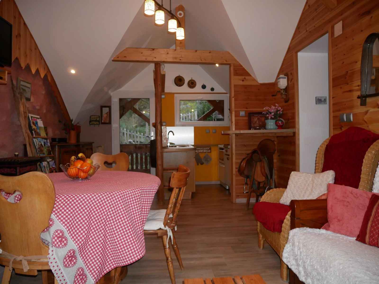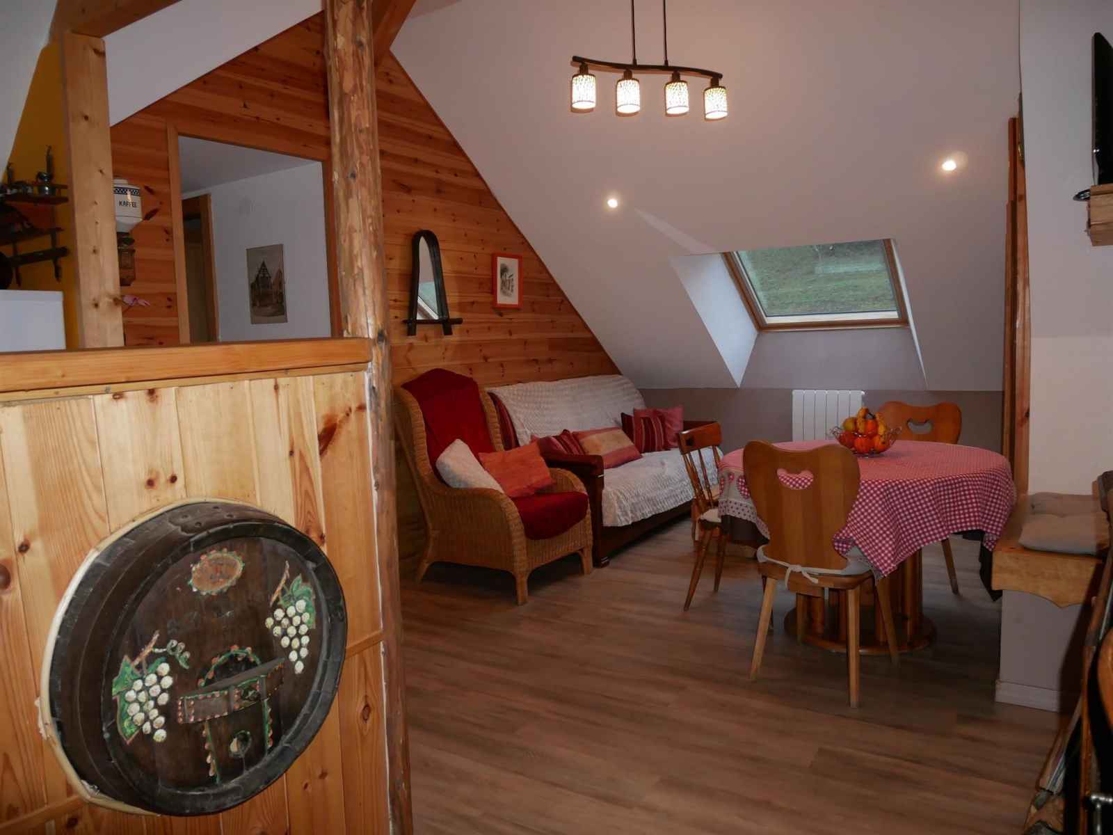 (1272 m d’altitude) Le gîte se situe à 30 mn de Mulhouse ou Colmar et à 10 mn de la route des vins. L’accès au gîte se fait par un chemin carrossable de 100 mètres. Le logement se trouve dans la maison du propriétaire avec une entrée indépendante, il peut accueillir jusqu'à 4 personnes. Il comprend une pièce à vivre avec un coin cuisine ouvert sur le salon & salle à manger, une salle d'eau avec douche et WC et deux chambres à coucher (1 lit double de 140x190 et 2 lits simples de 90x190). Sont à votre disposition : cafetière classique avec filtre, bouilloire, service à raclette, mixer plongeant. Le lave-linge et le sèche-linge sont en commun avec le propriétaire. Une terrasse extérieure (avec barbecue et transat) ainsi qu'une place de parking vous sont réservées. Plusieurs chemins de randonnées pédestres partent depuis le gîte. En hiver possibilité de pratiquer le ski alpin ou le ski nordique à 25 mn du gîte (Markstein 1185 m d’altitude)