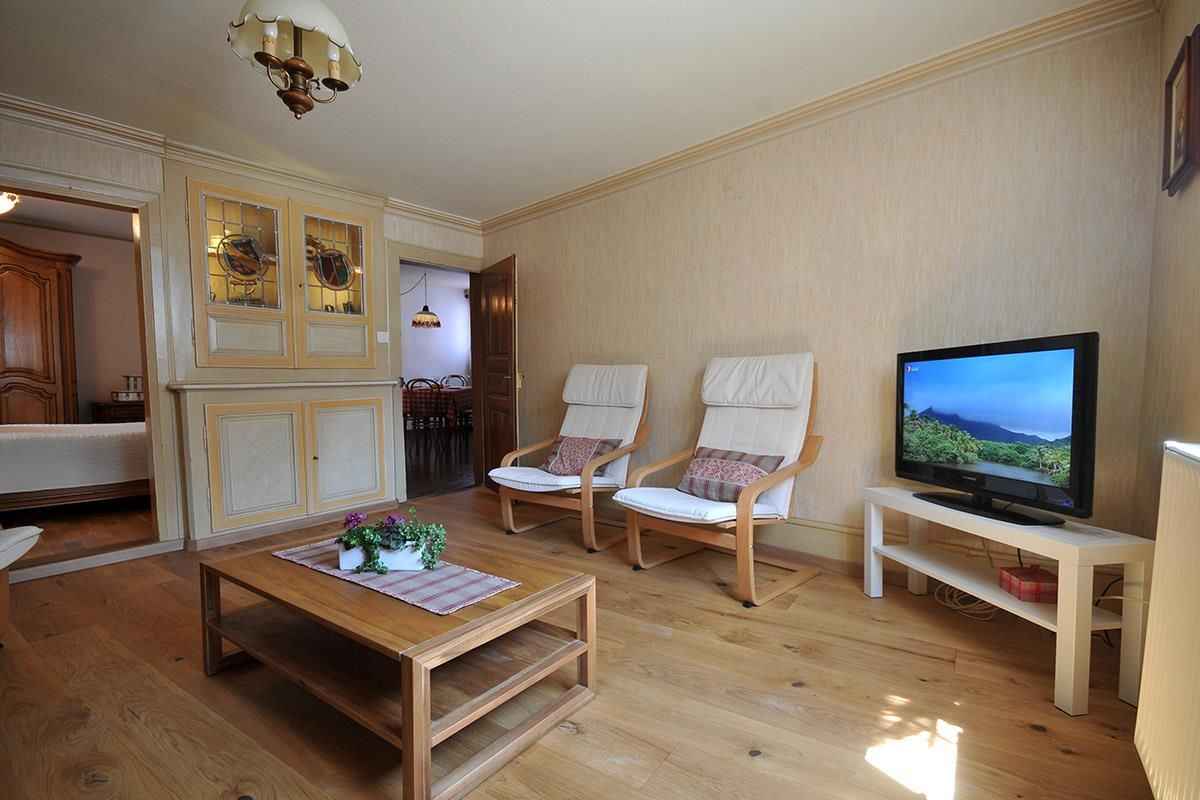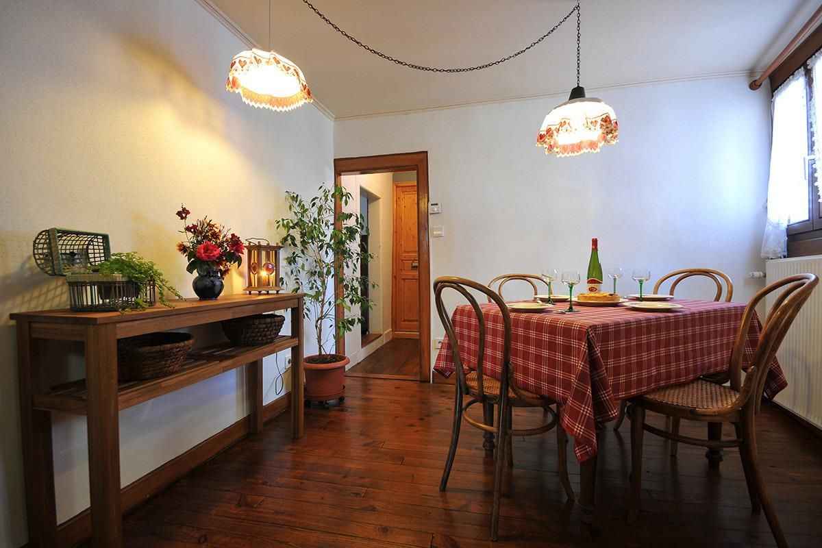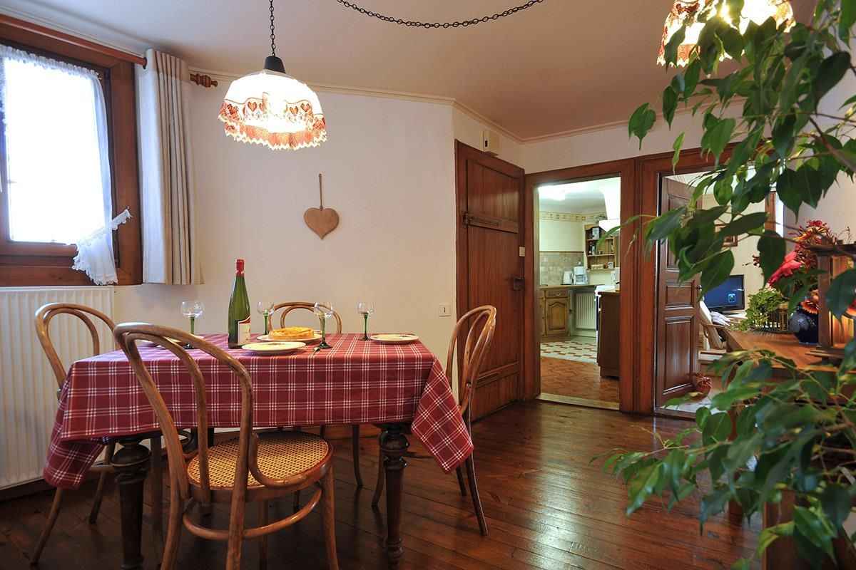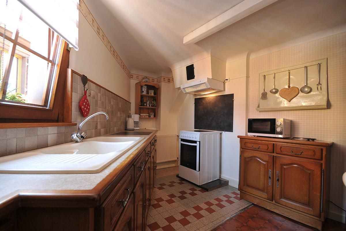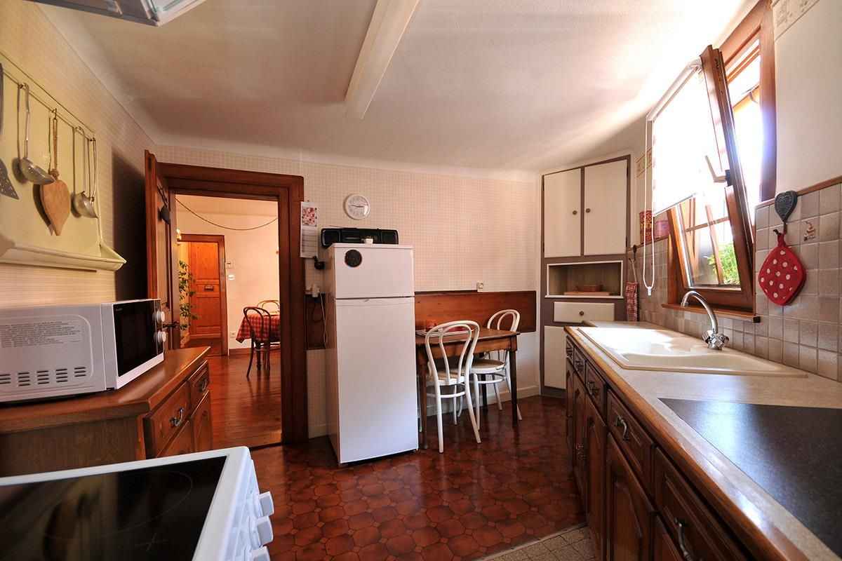 (8 km), Turckheim (4 km) et au cœur de nombreuses activités touristiques, culturelles ou sportives. La maison qui peut accueillir 4 personnes est chaleureuse et aménagée pour assurer votre confort. Au rez-de-chaussée se trouve un grand hall d'entrée avec espace jeux (babyfoot, fléchette, arcade), une buanderie avec lave-linge et matériel de repassage et un WC. Un escalier en bois monte à l'étage qui se compose : - d'un séjour confortable avec fauteuils et télévision - d'une cuisine équipée d'une cuisinière vitrocéramique, d'un grand réfrigérateur d'un four micro ondes et de tout le matériel électroménager nécessaire (pas de lave vaisselle) - d'un espace repas indépendant - d'une chambre à coucher avec 1 lit de 140x190 - d'une chambre avec deux lits de 90x190, transformables en un grand lit de 180x190 - d'une salle d'eau avec un lavabo et une douche - d'un WC indépendant Pour votre confort, le linge de maison (draps, linge de toilette et torchons de cuisine) est fourni et vos lits sont faits à l'arrivée. Le parking est possible gratuitement à quelques pas de la maison. Matériel bébé sur demande : lit parapluie, pot, adaptateur wc, chaise haute. Le village dispose d'un commerce de proximité. Accueil à partir de 16h. Nous téléphoner 30mn avant l'heure d'arrivée Accueil à partir de 16h. Nous telephonner 30mn avant l'heure d'arrivée