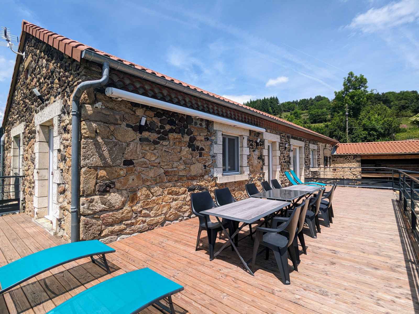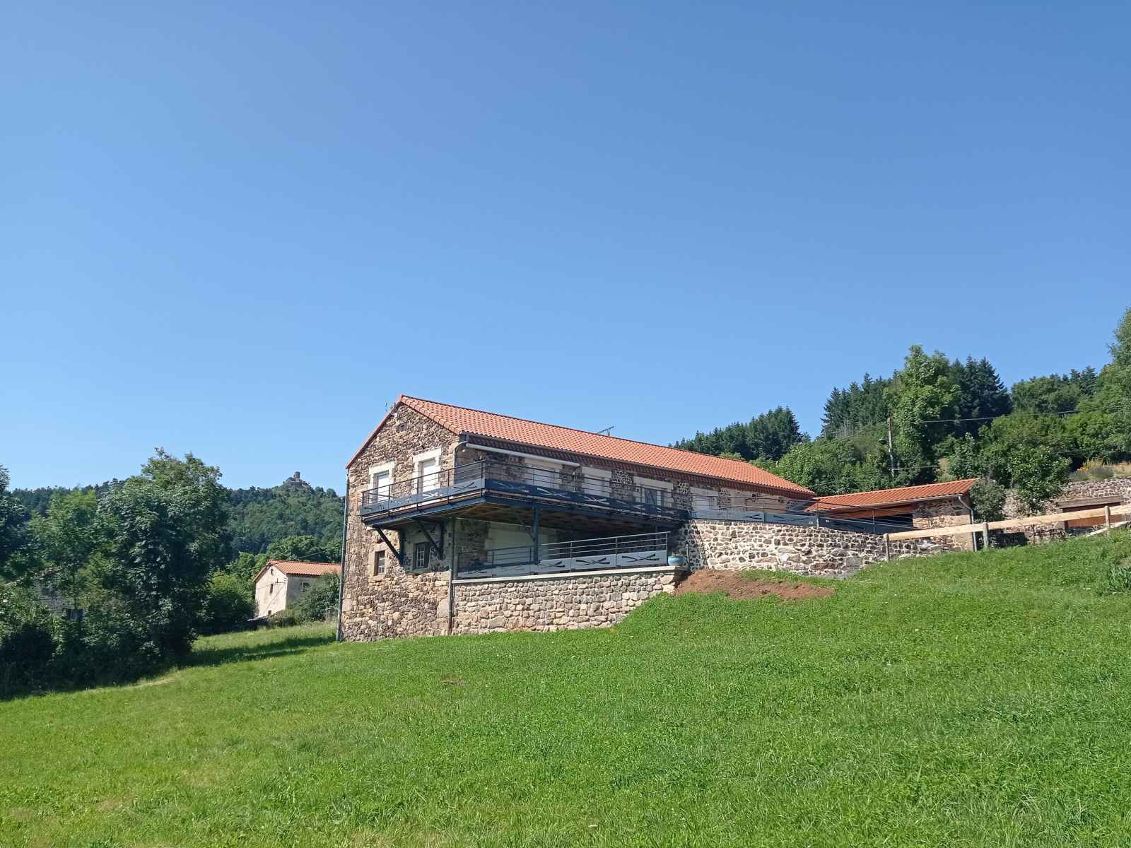pour en faire un lieu de vacances à la fois authentique et confortable, loin des tumultes du quotidien. La magnifique terrasse de la maison offre une vue à couper le souffle sur les paysages alentours. Le terrain est vaste, et sera idéal pour des jeux en extérieurs. Activités aux alentours : nombreuses balades ( le GR65 passe à proximité), visite de la tour de Rochegude (construite au XIII ème siècle), pêche dans l 'Allier, baignade ou sport en eaux vives à la plage de Monistrol d'Allier (2km) Un peu plus loin : Partez à la découverte des magnifiques villages de la Vallée de L'Allier ( Prades, Saint Julien des Chazes, Lavoûte-Chilhac , Sainte Ilpize, etc), visitez l'immanquable ville du Puy-en-Velay et ses nombreux monuments classés au Patrimoine Mondial de l UNESCO, le Lac du Bouchet, Saugues avec sa légendaire bête du gévaudan ou encore la jolie ville de Brioude... Le gîte n'est pas équipé d'internet, en revanche la couverture 4G est excellente. Pour votre confort, Aurélie et Anthony fournissent les draps . En option : Linge de bain : 7€ par personne Chauffage : 10€ par jour si utilisation. Le ménage est "compris" mais vous veillerez à ranger le gîte, vider les poubelles et le lave-vaisselle, rincer les tables et sanitaires et passer le balai au moment de votre départ. (Caution ménage de 80€ à remettre à votre arrivée) La maison siège sur un grand terrain, avec parking, zone engazonnée, et abri de voiture possible (sous la terrasse). La partie habitation de la maison est située au premier étage, accessible en pente douce par l'ancienne montée de grange (bien que l'accès ne soit pas recommandé aux personnes en fauteuil, il est possible aux personnes souffrant de difficultés motrices si elles sont accompagnées). L'entrée se fait par un hall desservant la pièce de vie composée d'une cuisine entièrement équipée ( Batterie de cuisine complète, four électrique, four micro-onde, cafetière Senseo et filtre, bouilloire, grille pain, lave-vaisselle, robot mixeur, appareil à raclette, plancha ...) et d'un salon TV avec bibliothèque et quelques jeux de société. Une petite buanderie avec lave linge et sèche linge et un WC complète l 'espace jour. Quant à l'espace nuit, situé sur le même niveau il se compose de 3 chambres ( 1 équipée d'un lit en 140, les 2 autres sont équipées d'un lit en 140 et de 2 couchages en 90 superposés) d'une salle d'eau avec douche italienne, wc et meuble double vasque et une deuxième salle d'eau avec douche italienne et meuble vasque.