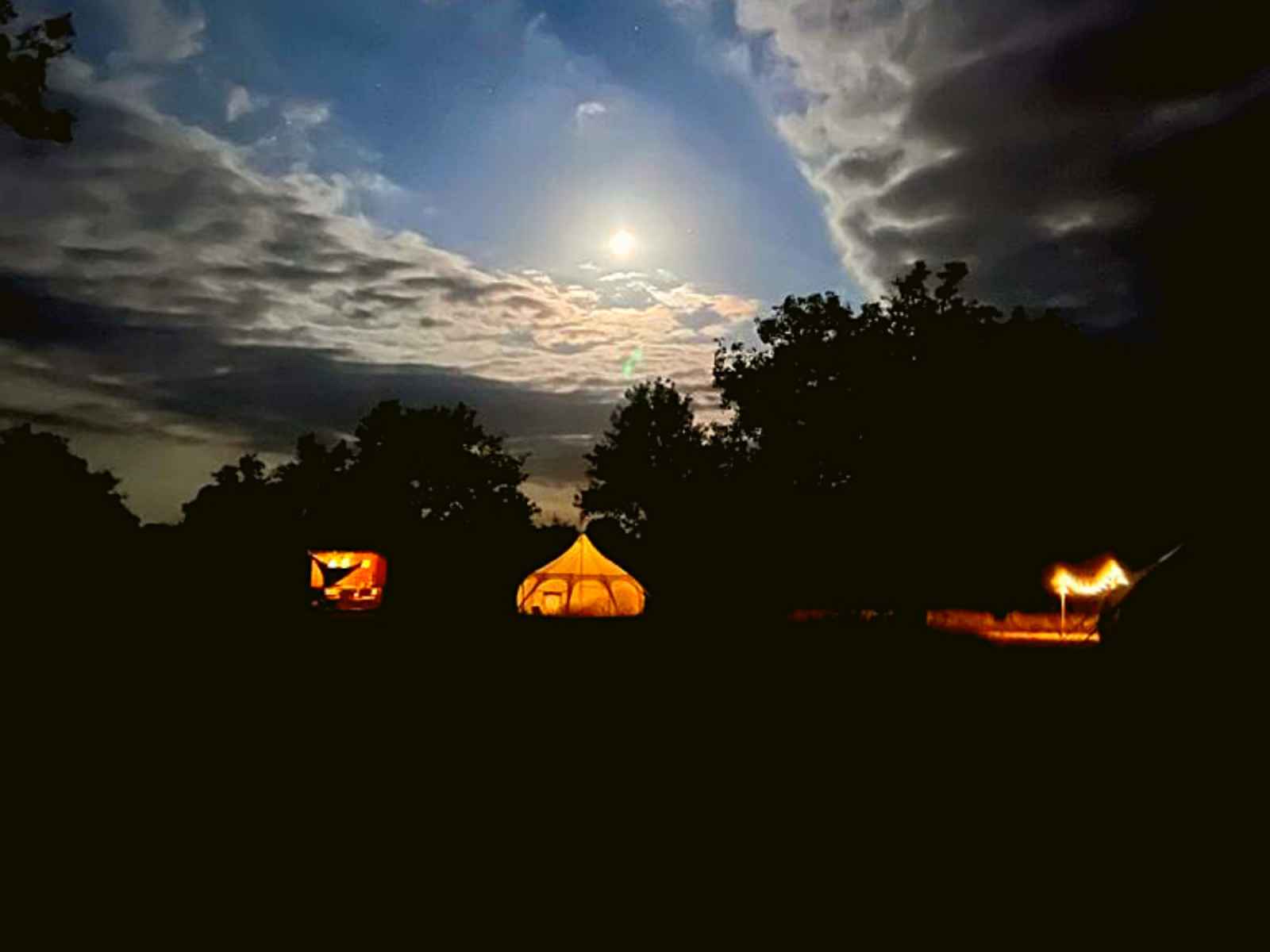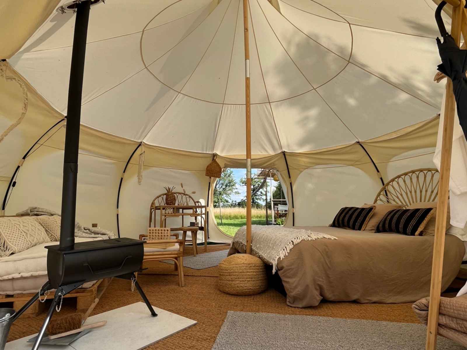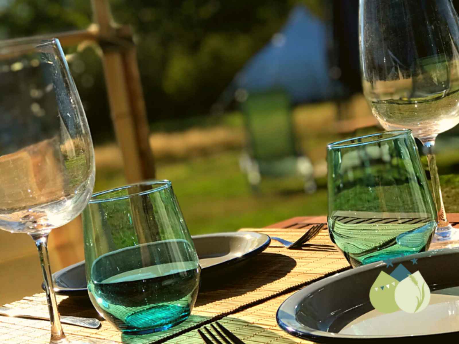 wc privatifs et évier dans un local à proximité de la tente. Place de parking privative. Piscine hors-sol partagée avec les autres clients. Il y a une table d’hôtes où le chef résident Simon cuisine 1 à 2 soirs par semaine. D’autres options de restauration sur place sont disponibles à d’autres moments, pour que vous puissiez simplement vous détendre!