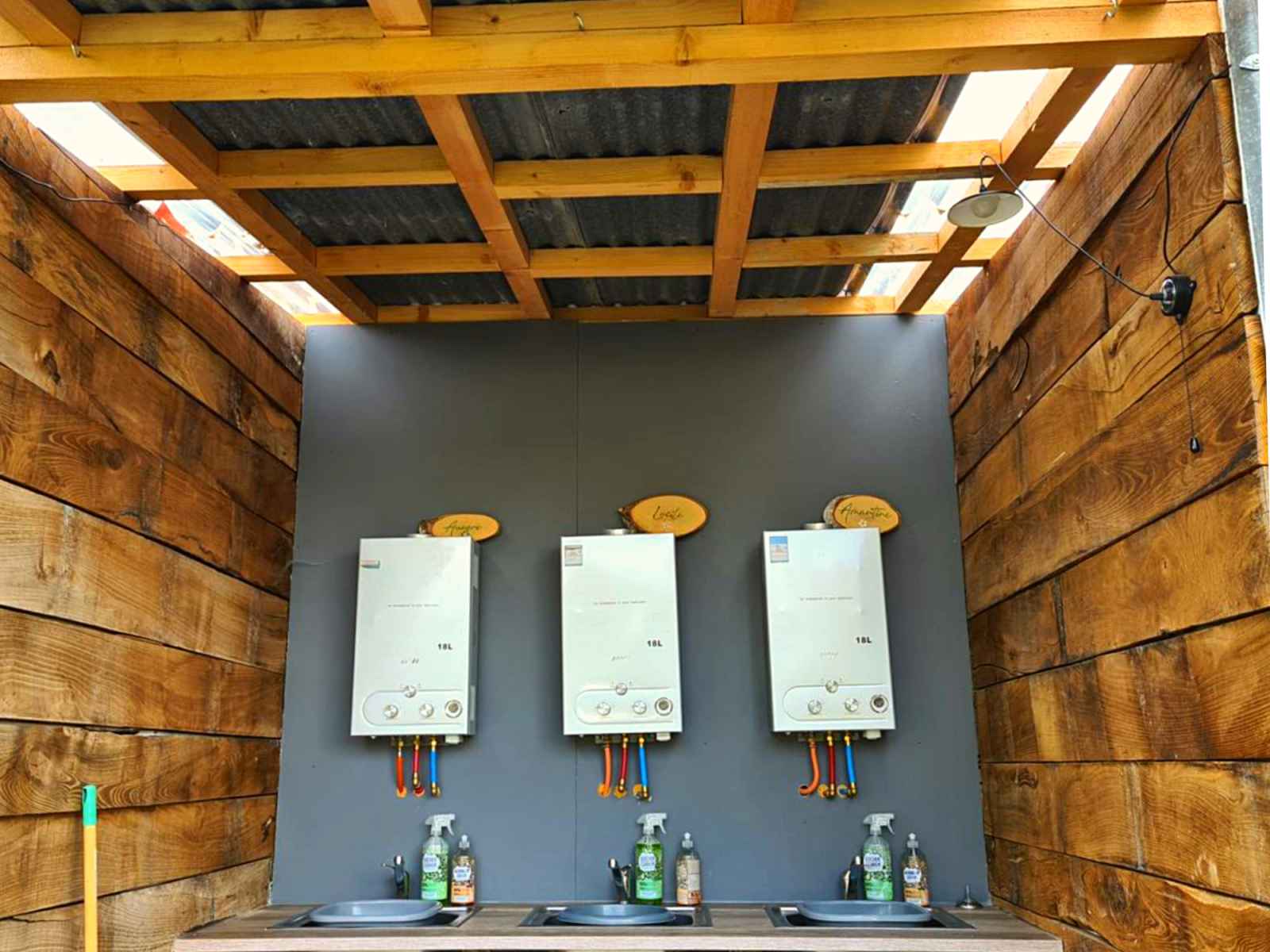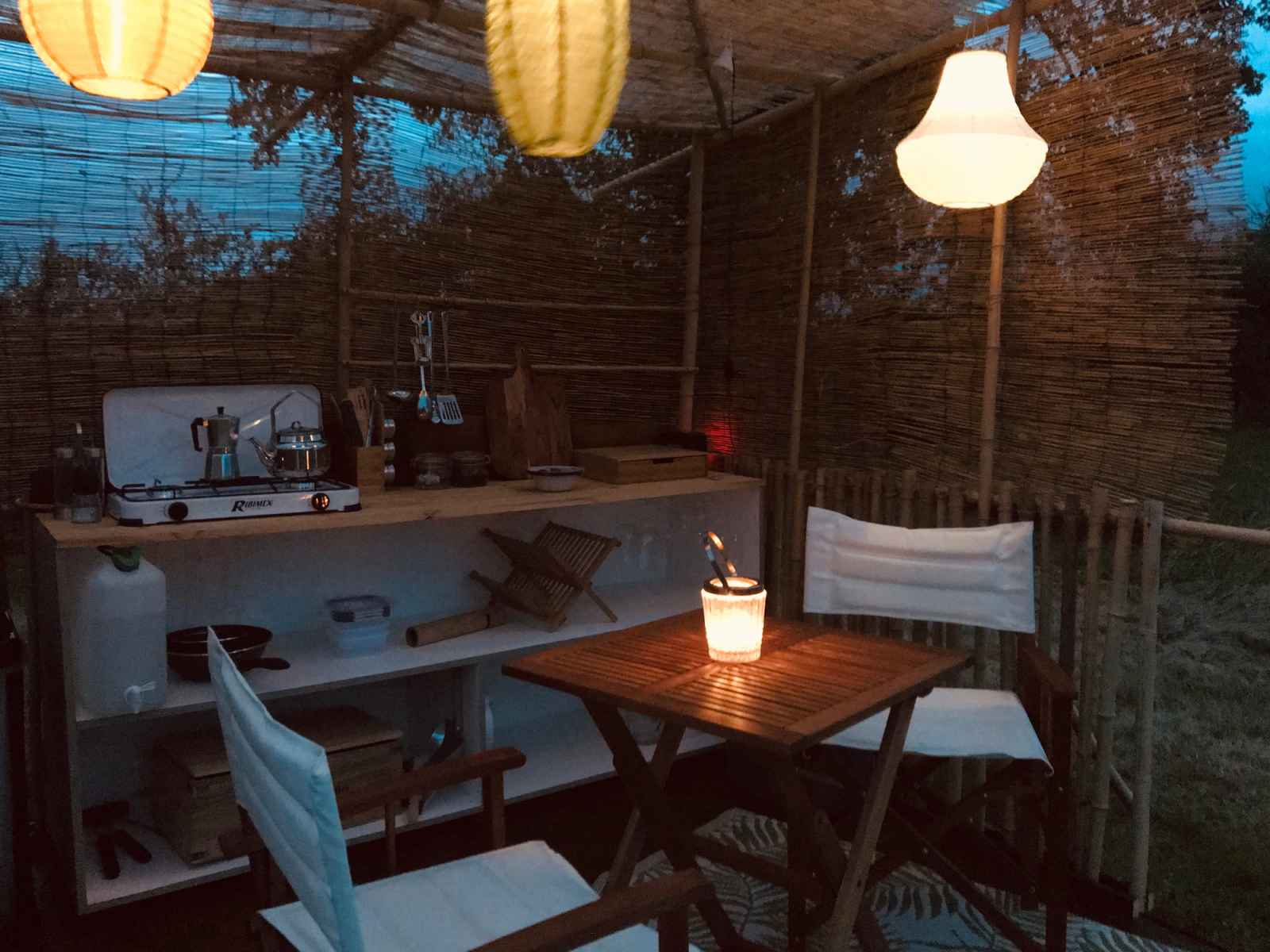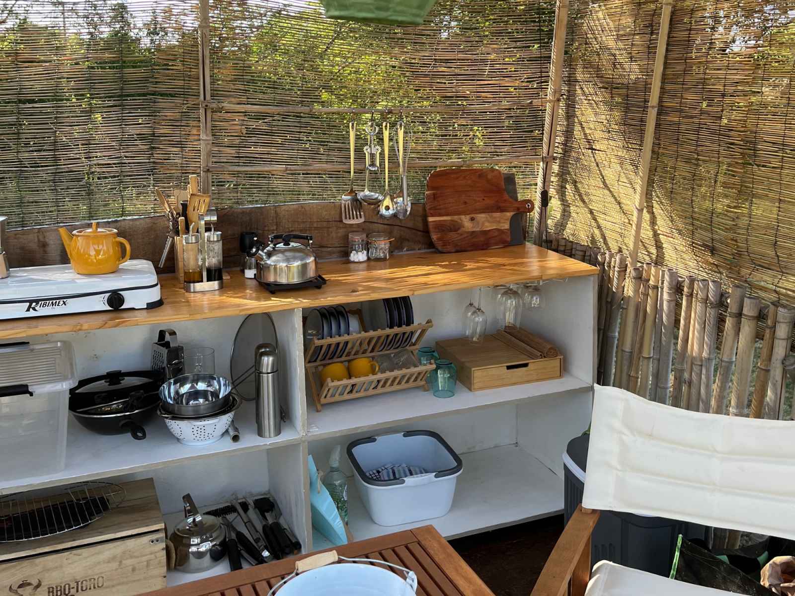 wc privatifs et évier dans un local à proximité de la tente. Place de parking privative. Piscine hors-sol partagée avec les autres clients. Il y a une table d’hôtes où le chef résident Simon cuisine 1 à 2 soirs par semaine. D’autres options de restauration sur place sont disponibles à d’autres moments, pour que vous puissiez simplement vous détendre!