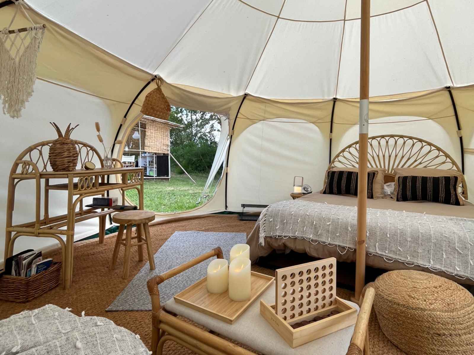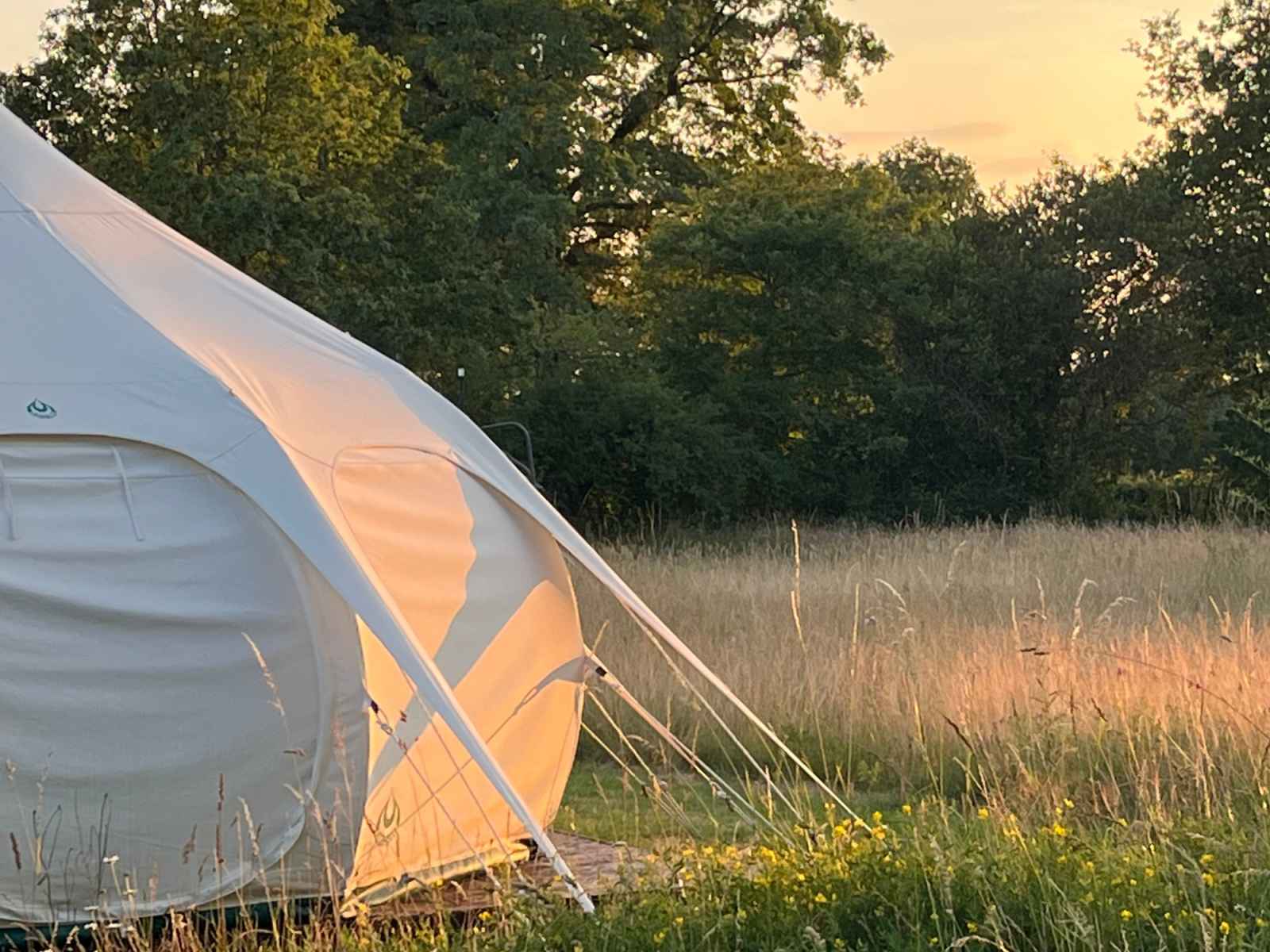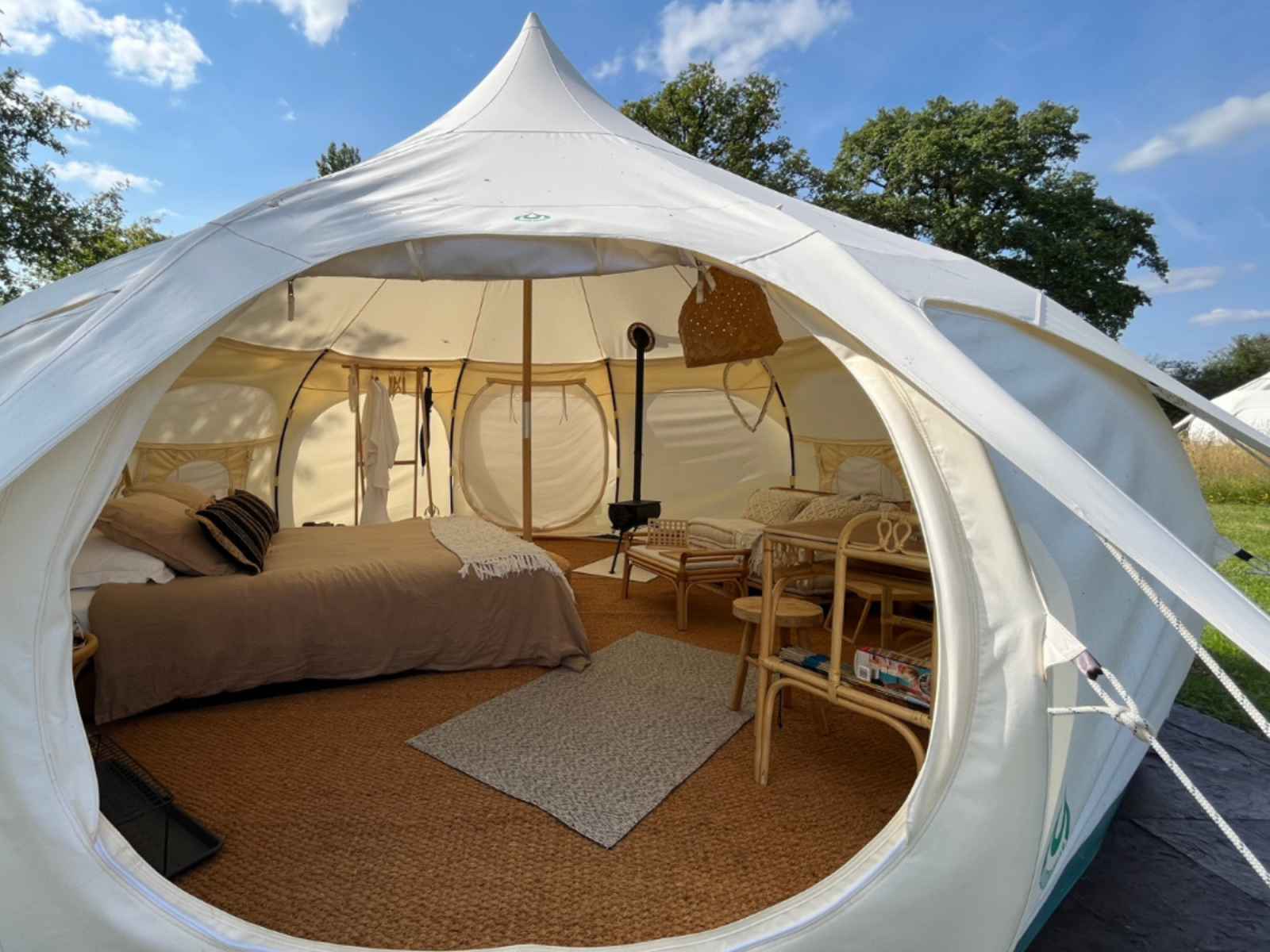 Entre berry et limousin, à proximité des lieux de vie de george sand venez vous ressourcer en pleine nature pour une expérience de "glamping". tente de haute qualité avec un lit de 2 personnes, un coin salon. générateur électrique solaire. en extérieur cuisine d'été privative, coin feu de bois et chaises longues. salle d'eau privative,