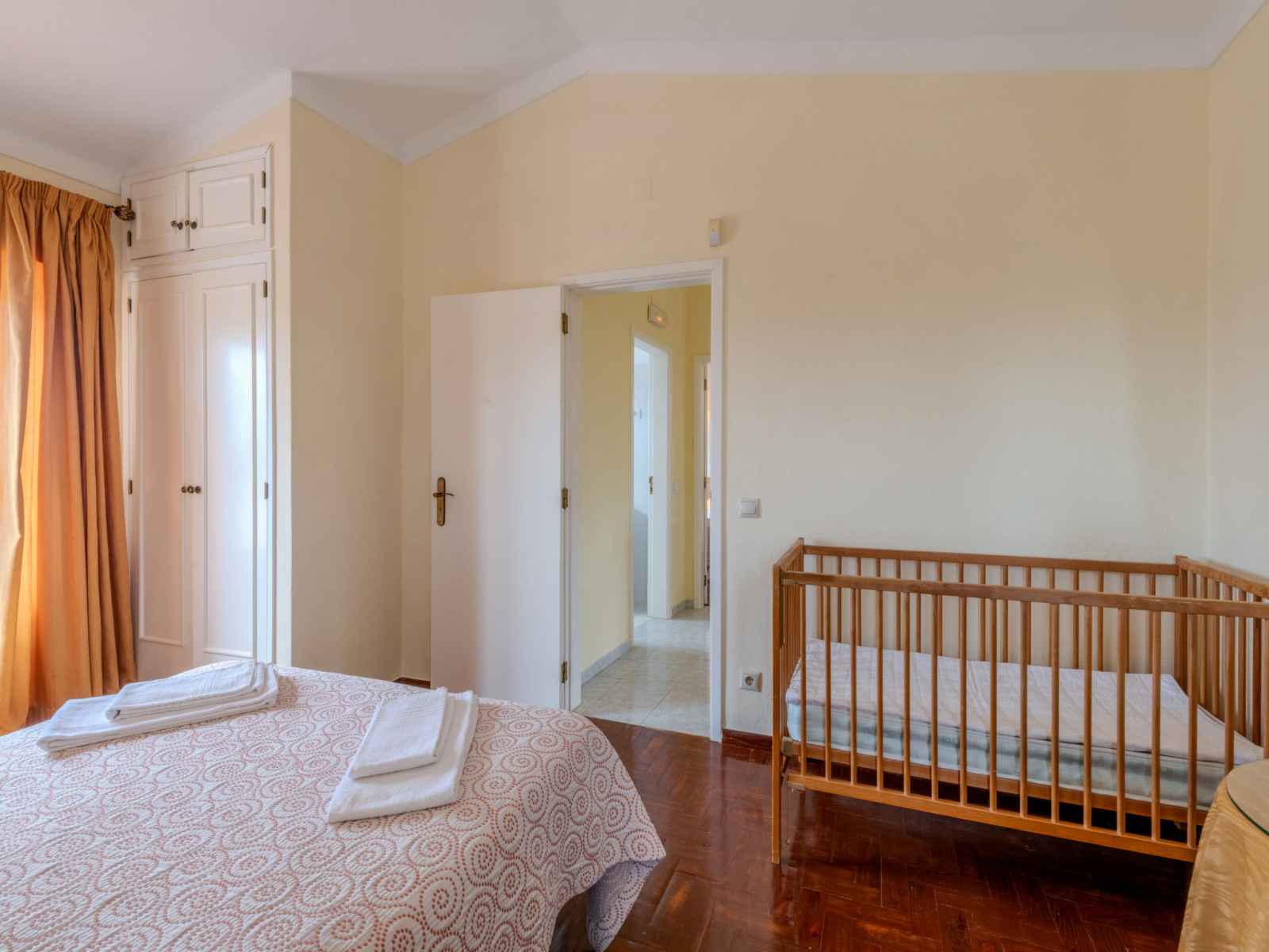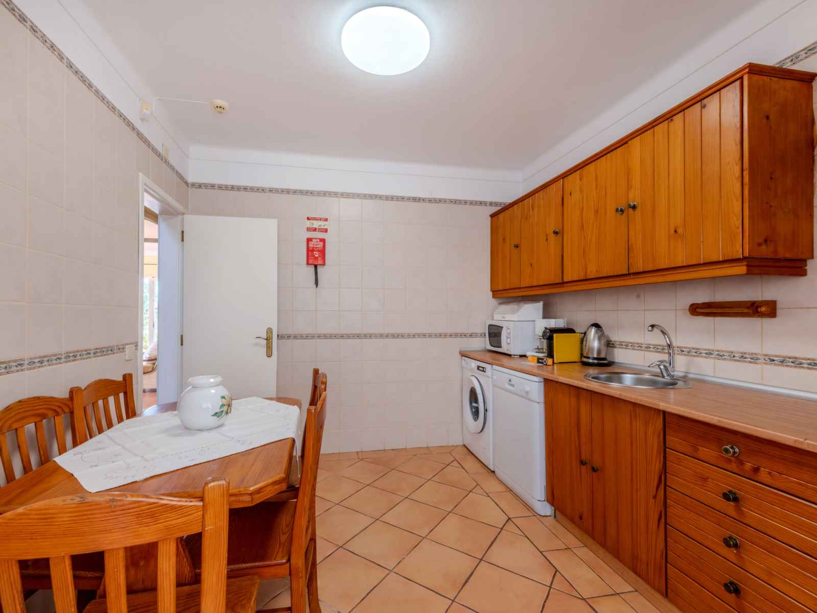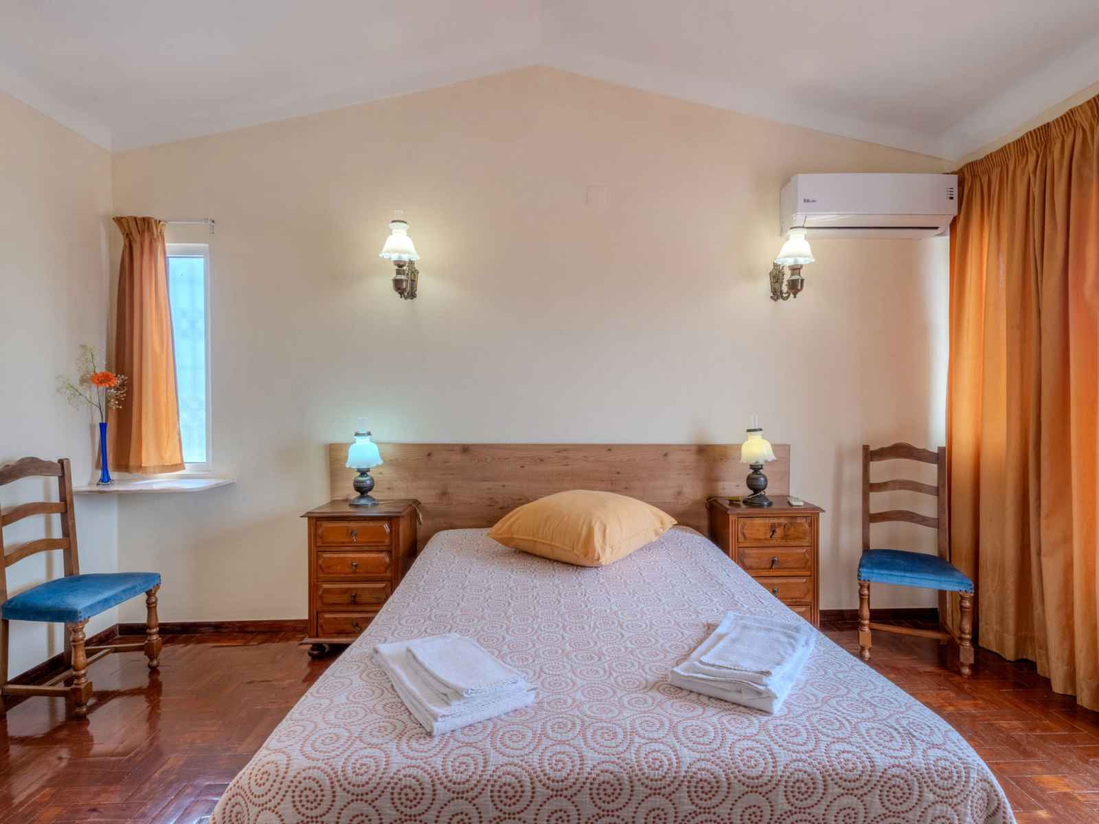 lave-vaisselle, 4 feux, grille-pain, bouilloire électrique, micro-ondes, congélateur, cafetière électrique) avec table pour les repas. Sortie sur le jardin. Douche/WC. À l'étage supérieur: 1 chambre avec 1 grand-lit (140 cm, longueur 200 cm), air-conditionné. Sortie sur la terrasse. 1 chambre avec 2 lits (90 cm, longueur 200 cm), air-conditionné. Sortie sur la terrasse. Douche/WC. Chauffage électrique. Chauffage pas dans toutes les pièces. Sol en parquet. Terrasse couverte. Meubles de terrasse, barbecue, chaises longues (6). A disposition: lave-linge, coffre-fort, fer à repasser, chaise haute pour enfant, lit bébé, sèche-cheveux. Internet (Connexion WIFI, gratuit). Veuillez noter: logement non-fumeur. Détecteur de fumée, extincteur. 42696/AL