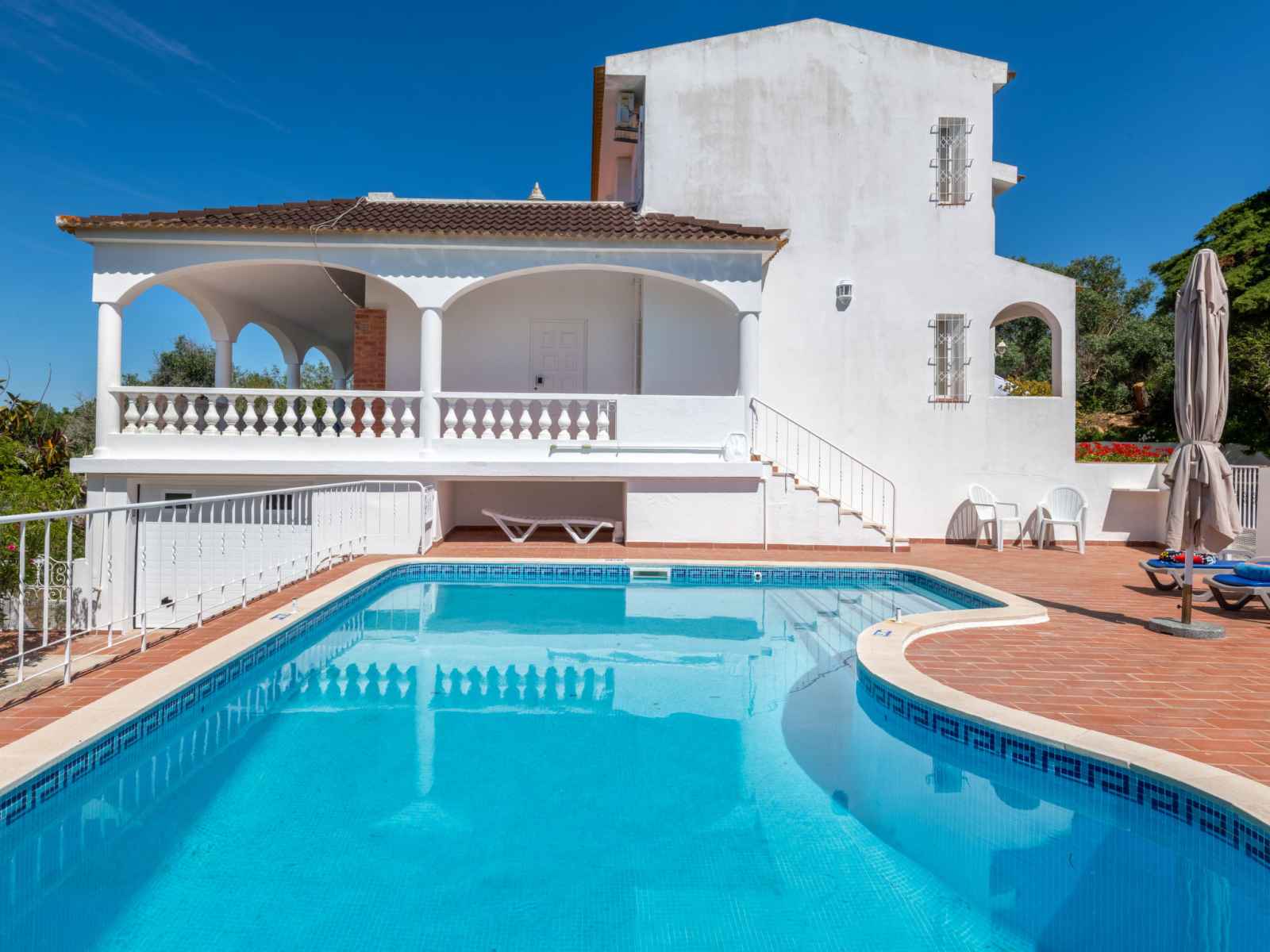 Belle maison rustique "neves i", environnée par les arbres et prés. À 4 km du centre d'albufeira, à 3 km de la mer. en commun: tennis. a usage privé: terrain 500 m2 (clôturé) avec arbres, champ, piscine chauffée (37 m2, profondeur 70 - 200 cm, disponibilité saisonnière: 01.jan. - 31.dec.) avec marches intérieures. piscine de forme