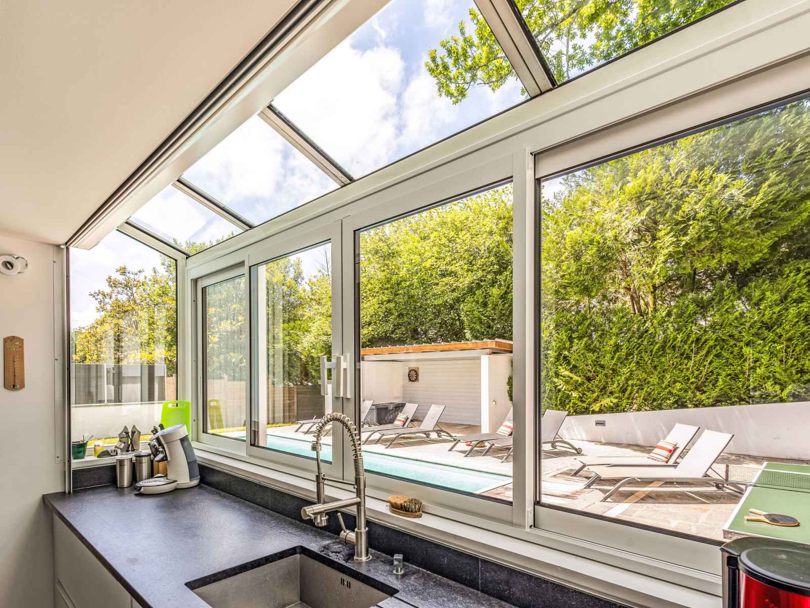 Villa 5 pièces 220 m2. spacieux et clair, partiellement rénovée en 2024, aménagement confortable et moderne: séjour/salle à manger avec tv (écran plat). sortie sur la terrasse, sur la piscine. cuisine ouverte (four, lave-vaisselle, 3 plaques à induction, grille-pain, bouilloire électrique, micro-ondes, congélateur, cafetière