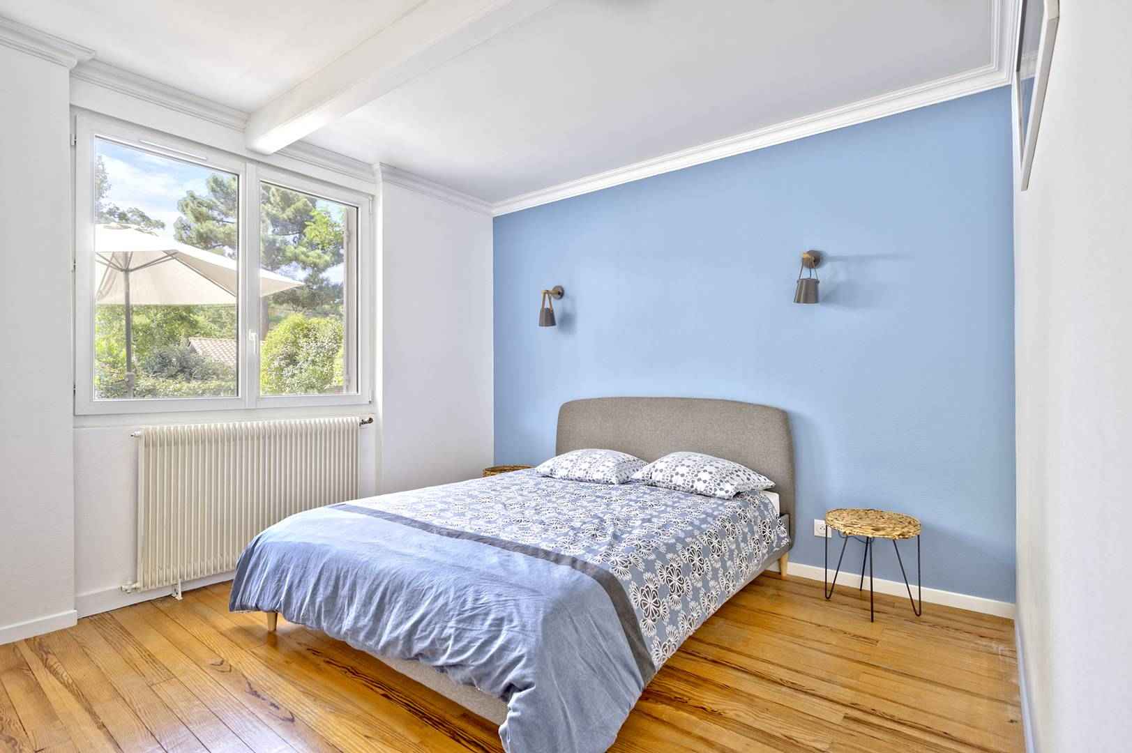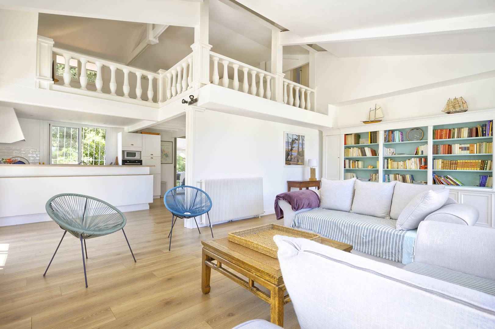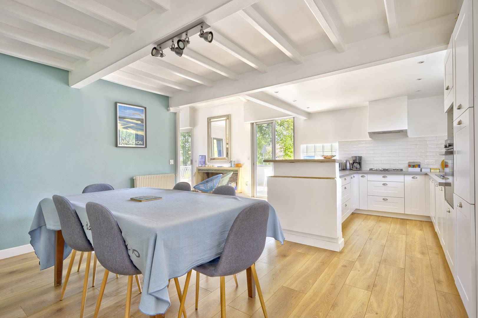 Au 1er étage, vous entrez dans un salon lumineux exposé au Nord et à l'Est, agrémenté de canapés et d'une cheminée. La cuisine ouverte est entièrement équipée avec réfrigérateur (incluant un compartiment congélateur), lave-vaisselle 6 couverts, four à micro-ondes, four traditionnel, 3 feux à gaz, hotte et machine Nespresso. Vous disposez également d'une salle à manger conviviale. Deux chambres sont situées à cet étage, l'une exposée au Sud avec un lit king-size (160 cm) et placard/penderie, et l'autre à l'Ouest et au Nord avec un lit king-size (160 cm), télévision et placard/penderie. Il y a également des toilettes séparées et une salle de bain avec deux lavabos. La mezzanine comprend un salon TV avec des canapés confortables et une troisième chambre exposée au Sud, équipée d'un lit king-size (160 cm) et d'une salle d'eau attenante avec toilettes. Le rez-de-jardin, accessible également depuis le jardin, propose un espace avec buanderie (lave-linge et sèche-linge), une salle d'eau supplémentaire, deux chambres (une exposée à l'Est avec un lit king-size (160 cm) et une autre suite parentale exposée à l'Est avec deux lits simples (90 cm) et une salle de bain attenante). Il y a aussi des toilettes séparées et une 6ème chambre avec deux lits superposés (80 cm) et une petite fenêtre. Profitez des deux belles terrasses ensoleillées (au Sud et à l'Est), équipées de mobilier et d'un store banne, ainsi que du jardin verdoyant qui entoure la maison. Cette maison est équipée de WIFI/Internet, décorée avec élégance, spacieuse et extrêmement lumineuse. Son état impeccable en fait un choix idéal. Sa situation géographique est privilégiée : à 800 mètres de la plage, 650 mètres d'une boulangerie/pâtisserie et à seulement 10 minutes en voiture du centre-ville d’Arcachon. Les animaux ne sont pas admis. Le linge blanc n'est pas fourni mais peut être loué via notre partenaire LocLinge (code promo : vacances33). (adhésion facultative). Le ménage de départ est inclus, conditionné à un entretien normal et régulier de la location pendant le séjour.