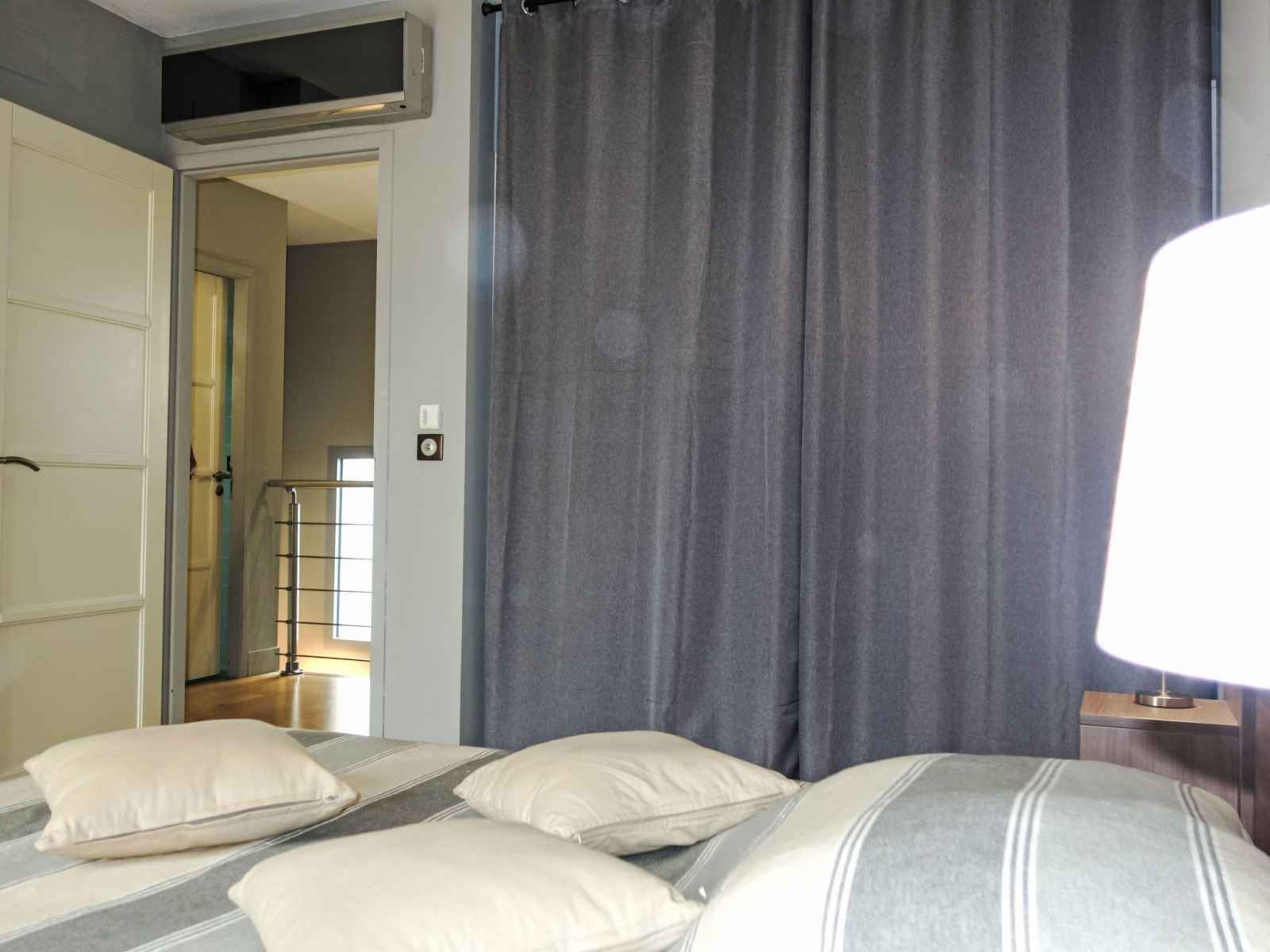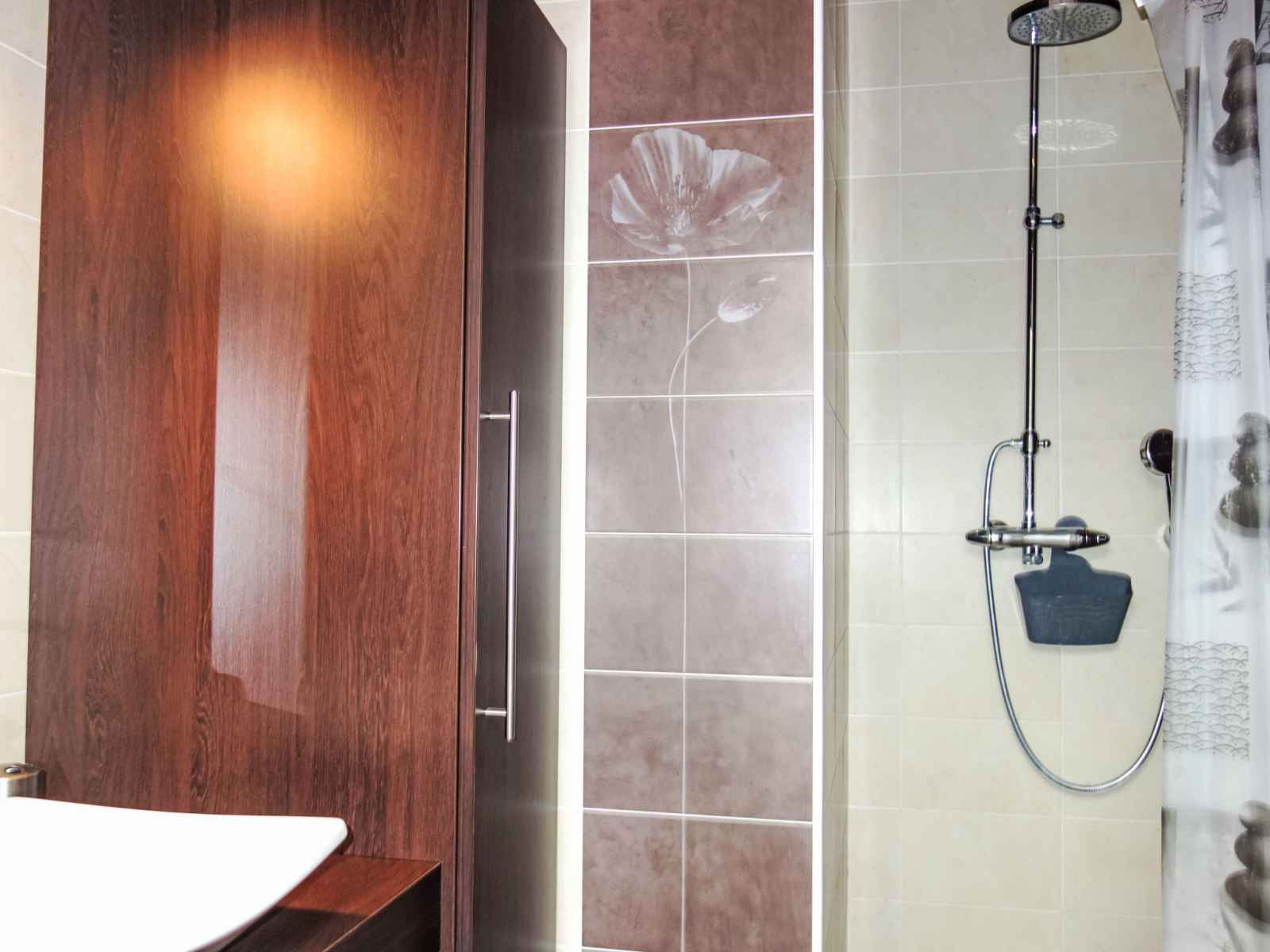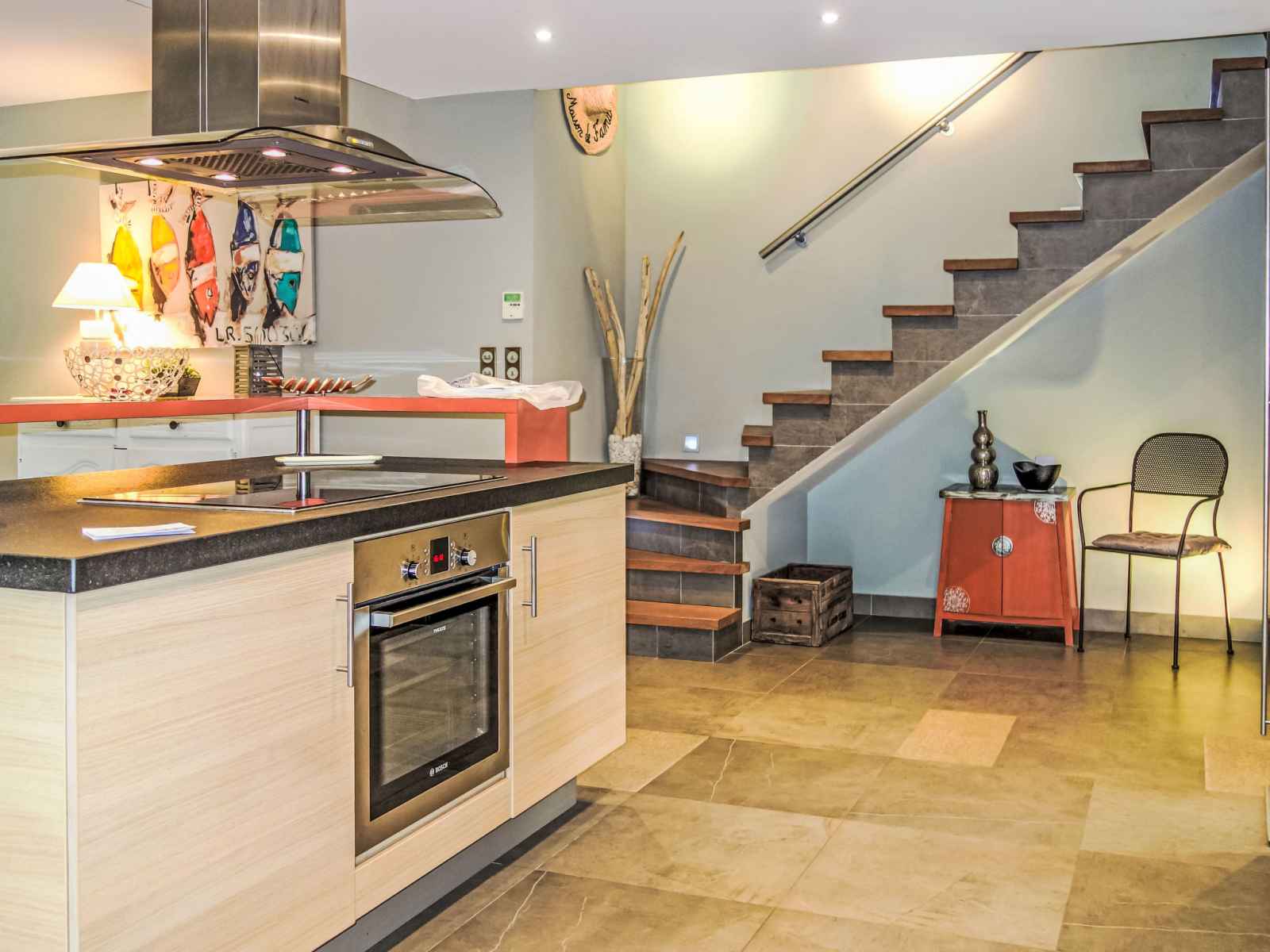 bouilloire électrique, micro-ondes, congélateur, cafetière électrique, Capsules pour machine à café (senseo) (NON INCLUSES)). Sortie sur la terrasse. 2 WC séparés. Air-conditionné. À l'étage supérieur: 2 chambres, chaque chambre avec: 1 grand-lit et air-conditionné. Sortie sur le balcon. Douche, WC séparé. A disposition: lave-linge, sèche-linge, fer à repasser, sèche-cheveux. Internet (Connexion WIFI, gratuit). Veuillez noter: détecteur de fumée.