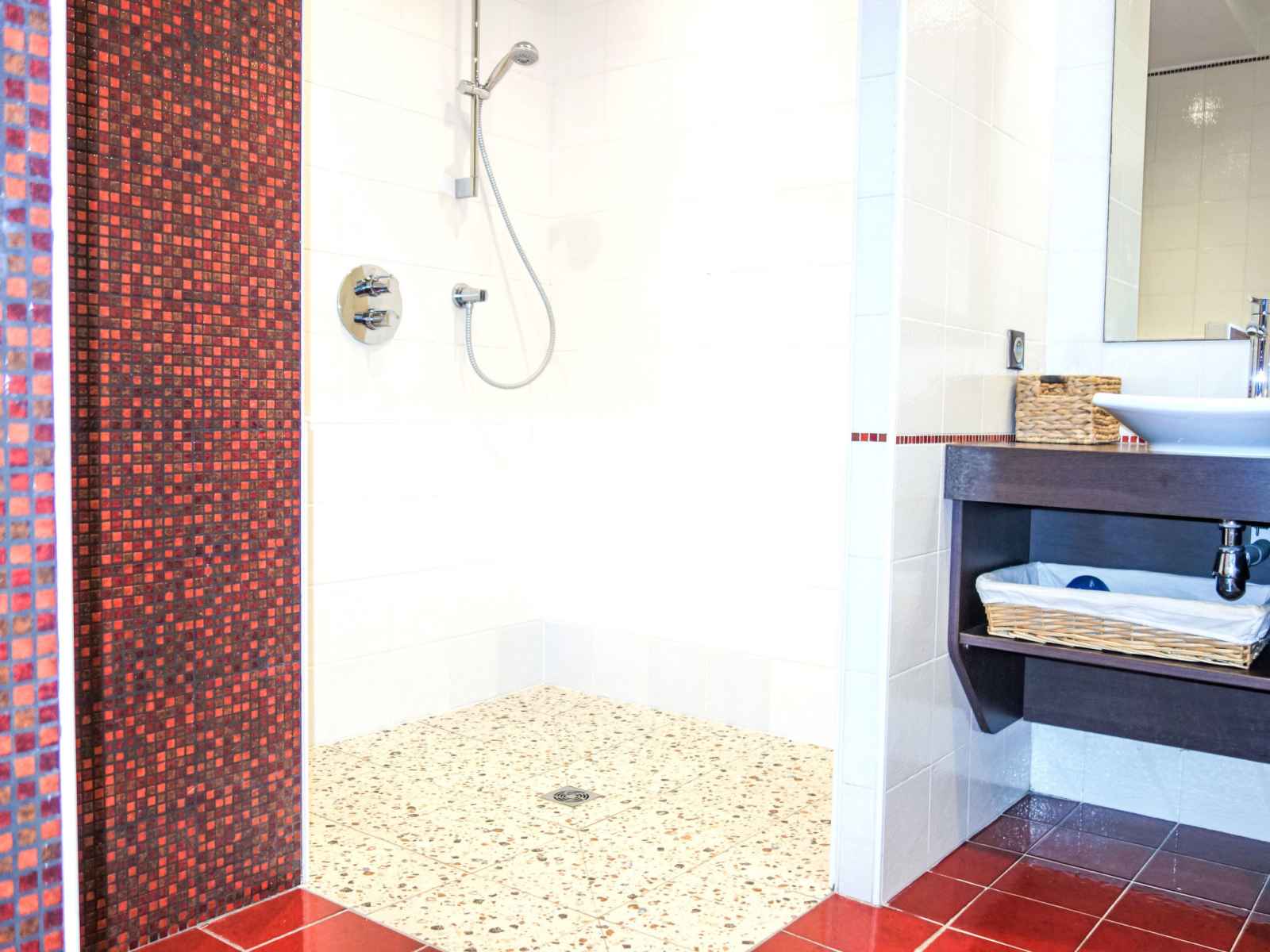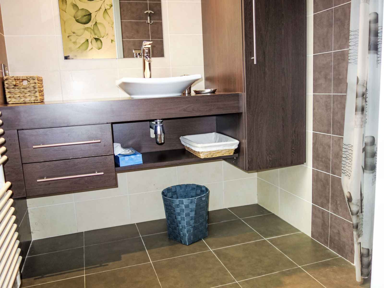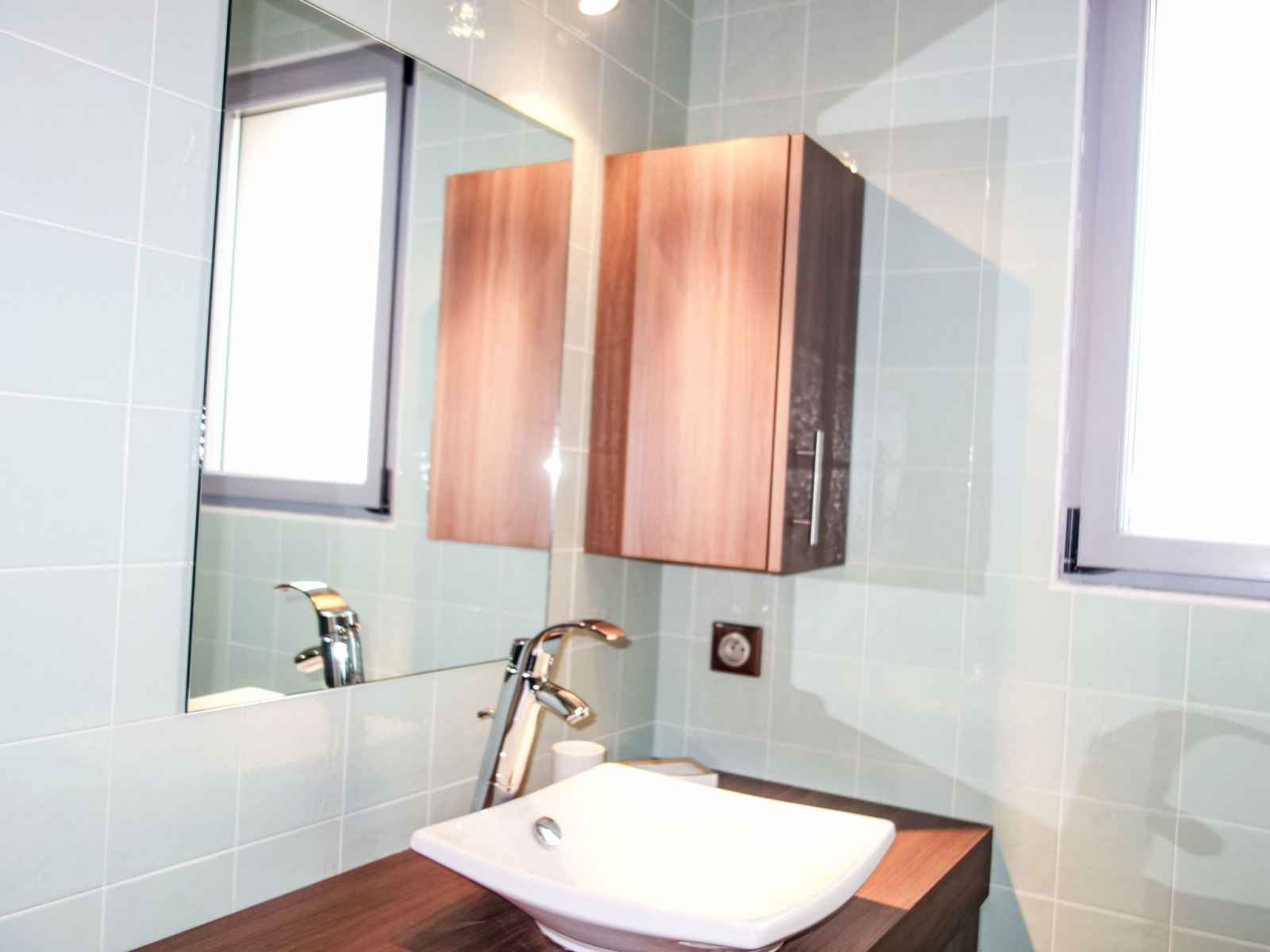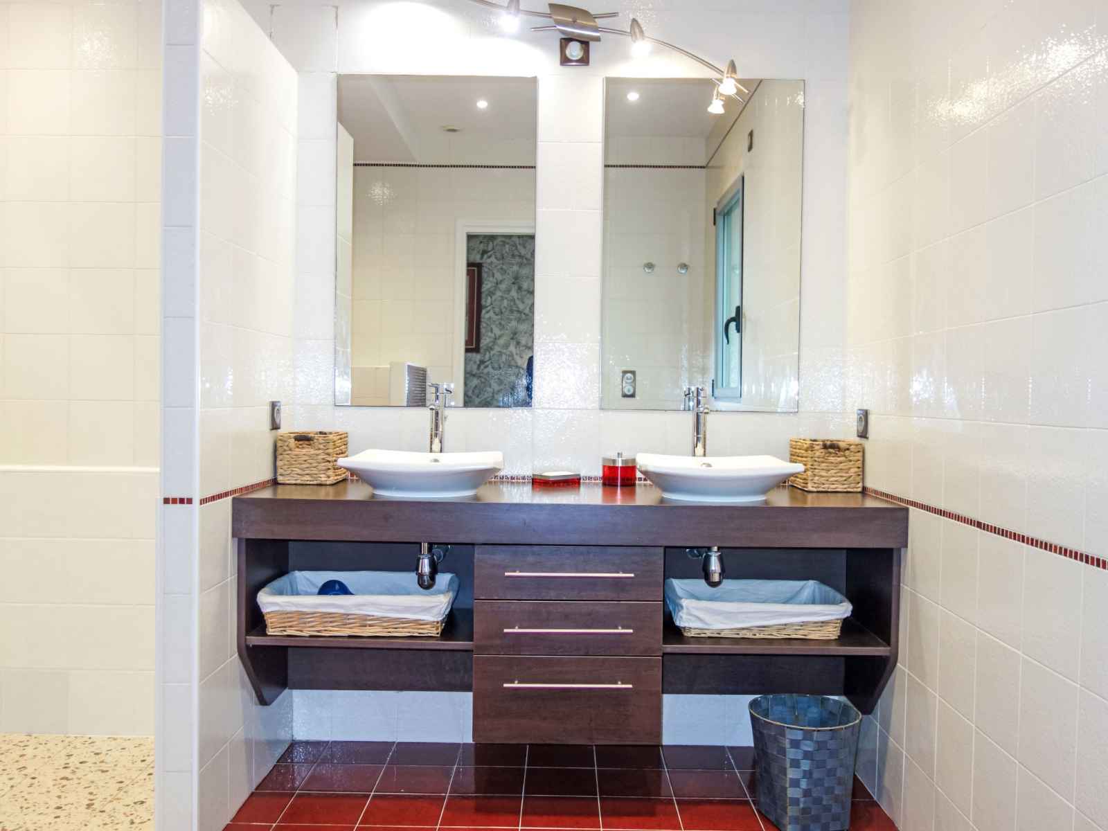 bouilloire électrique, micro-ondes, congélateur, cafetière électrique, Capsules pour machine à café (senseo) (NON INCLUSES)). Sortie sur la terrasse. 2 WC séparés. Air-conditionné. À l'étage supérieur: 2 chambres, chaque chambre avec: 1 grand-lit et air-conditionné. Sortie sur le balcon. Douche, WC séparé. A disposition: lave-linge, sèche-linge, fer à repasser, sèche-cheveux. Internet (Connexion WIFI, gratuit). Veuillez noter: détecteur de fumée.