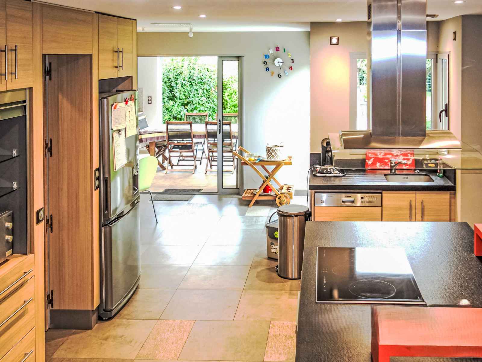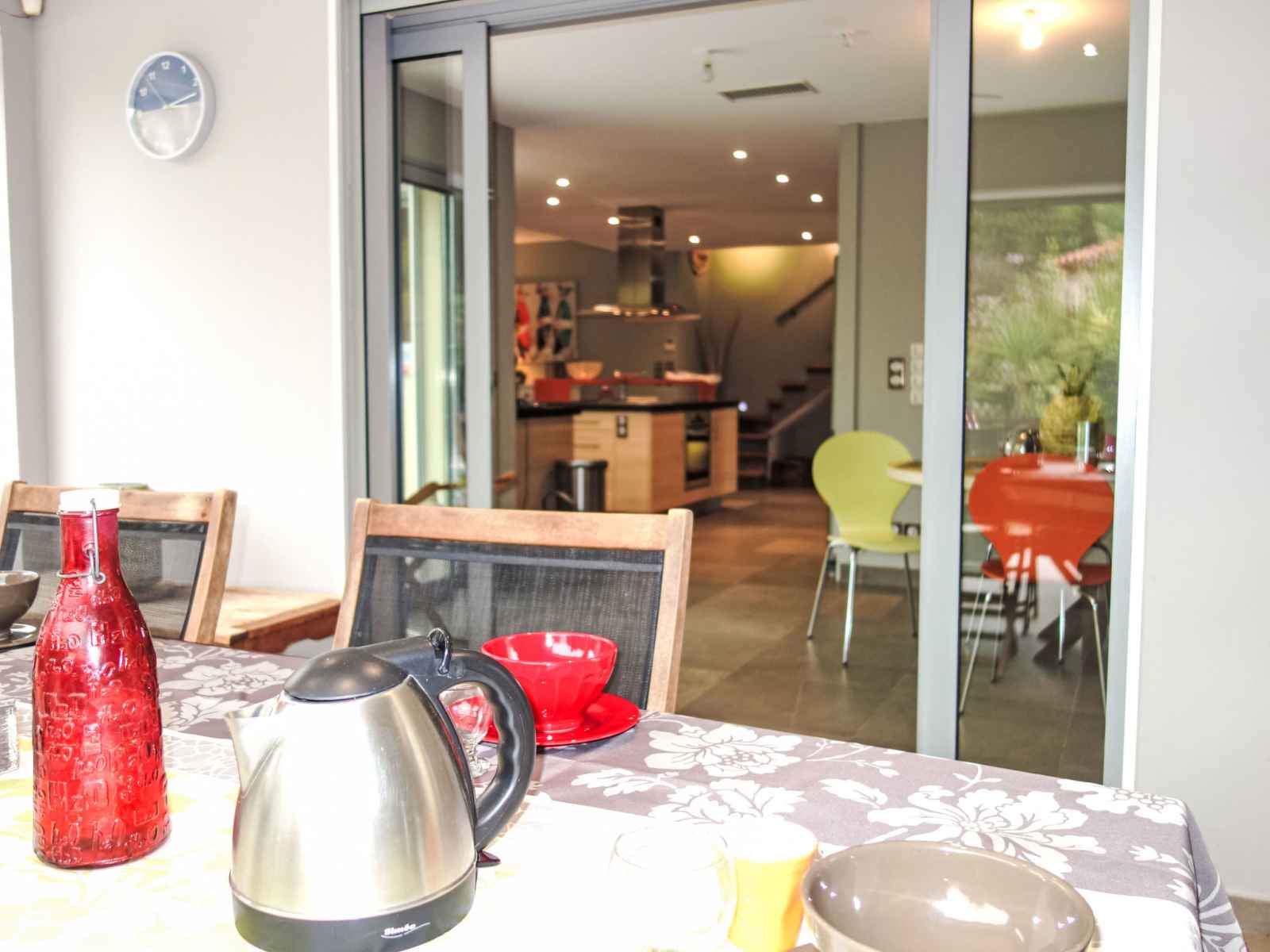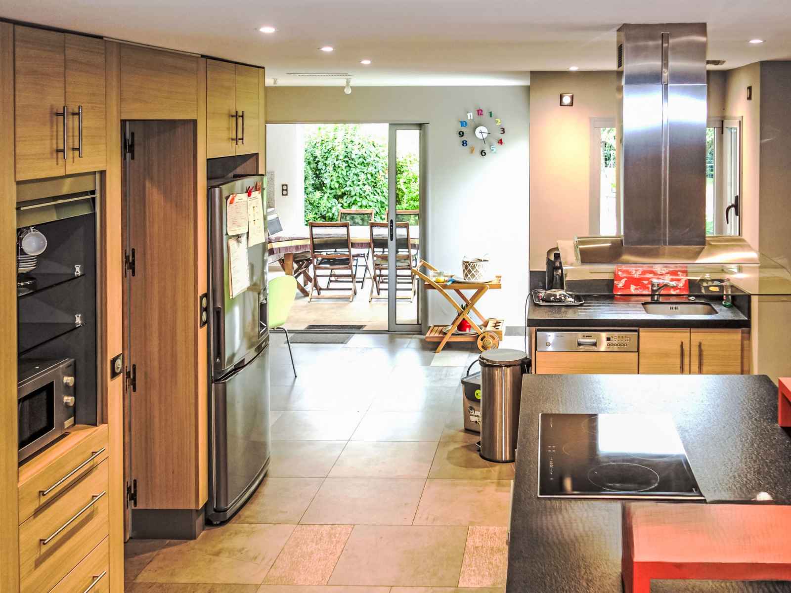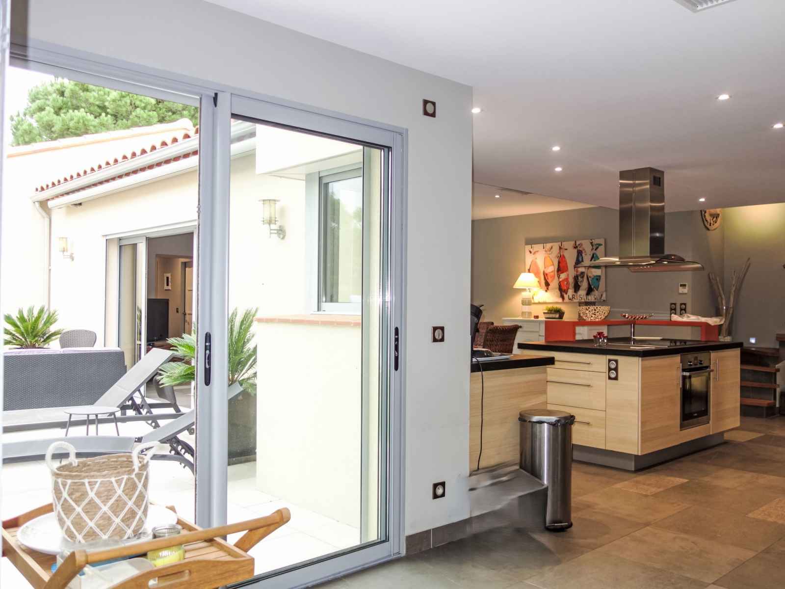 Villa 6 pièces 200 m2 sur 2 niveaux, situation sud-ouest. aménagement confortable et agréable: séjour avec coin repas et tv (écran plat). sortie sur la terrasse. 1 chambre avec 1 grand-lit, bidet et douche. sortie sur la terrasse. 1 chambre avec 1 grand-lit et douche. cuisine ouverte (four, lave-vaisselle, 4 plaques à induction, grille-pain,