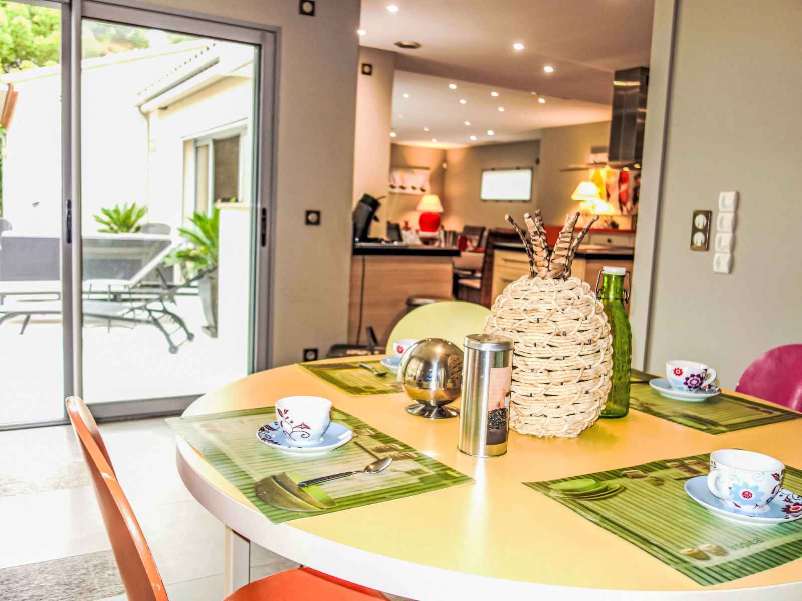 St génis des fontaines à 10 km de argelès sur mer: belle villa moderne, confortable "villa lavande". en bordure de la localité, à 1 km du centre de st génis des fontaines, situation tranquille dans un quartier résidentiel, à 15 km de la mer, à 15 km de la plage, orientée sud-ouest. a usage privé: jardin entretenu, piscine rectangulaire