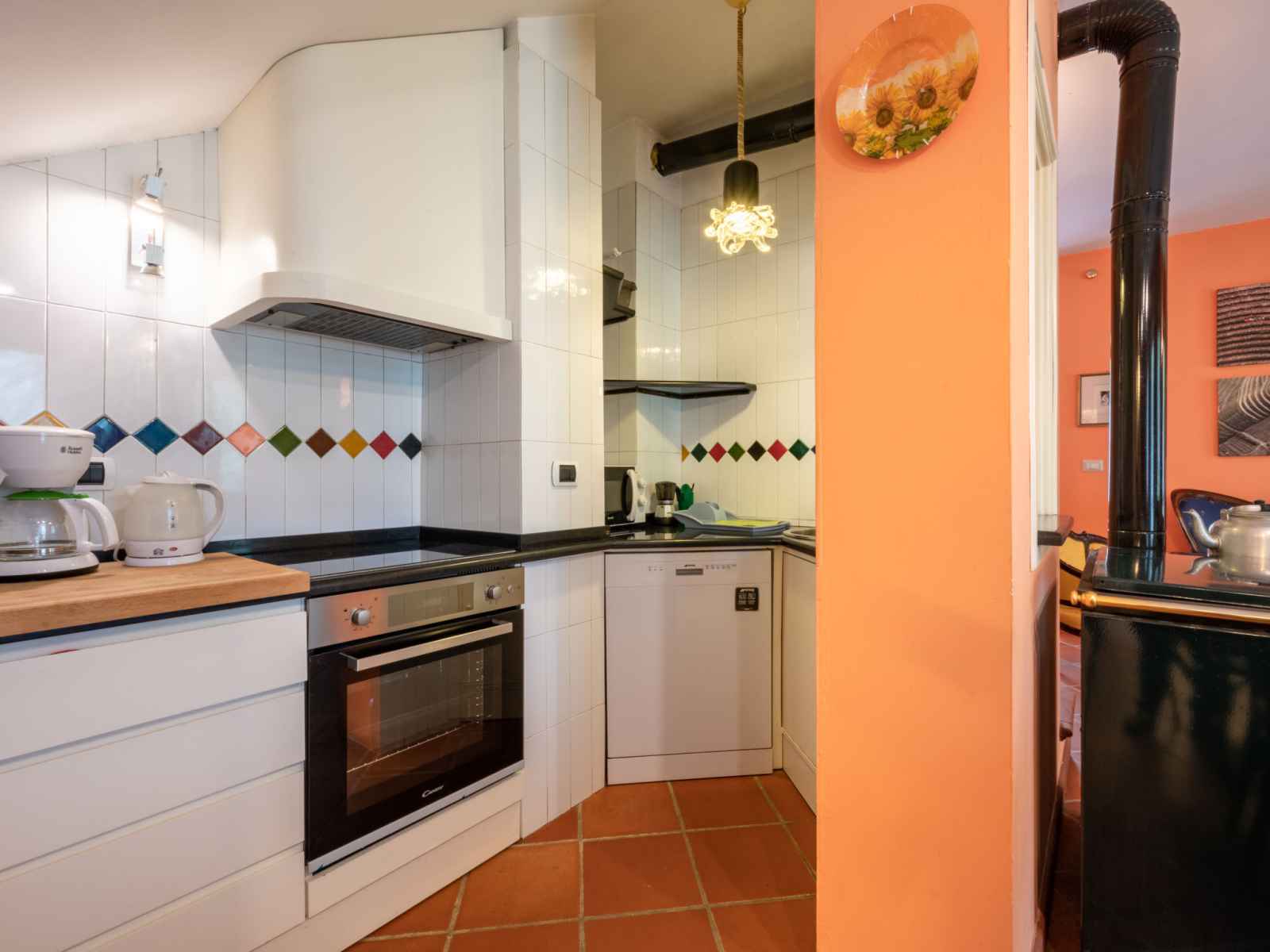 Maison 4 pièces 150 m2 sur 2 niveaux. aménagement rustique: séjour/salle à manger avec cheminée, table pour les repas et tv (satellite). petite cuisine ouverte (four, lave-vaisselle, 4 plaques à induction, grille-pain, bouilloire électrique, cafetière électrique). douche/wc. À l'étage supérieur: 1 chambre avec 1 lit double. sortie sur