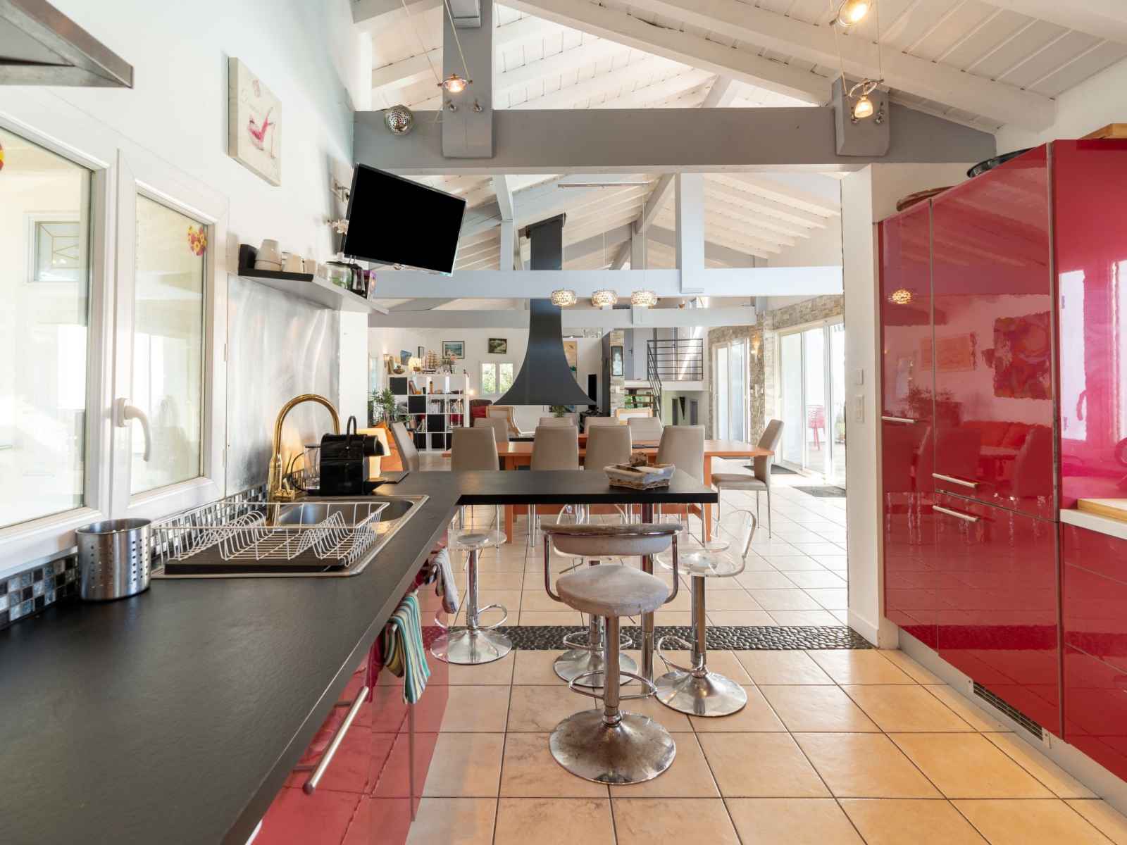 Villa 7 pièces 300 m2 sur 3 niveaux. aménagement confortable et agréable: séjour/salle à manger avec baie vitrée avec tv (écran plat), chaîne stéréo. cuisine (four, lave-vaisselle, 4 plaques vitrocéramiques, grille-pain, bouilloire électrique, cafetière électrique, capsules pour machine à café (nespresso) (non incluses)) avec tv