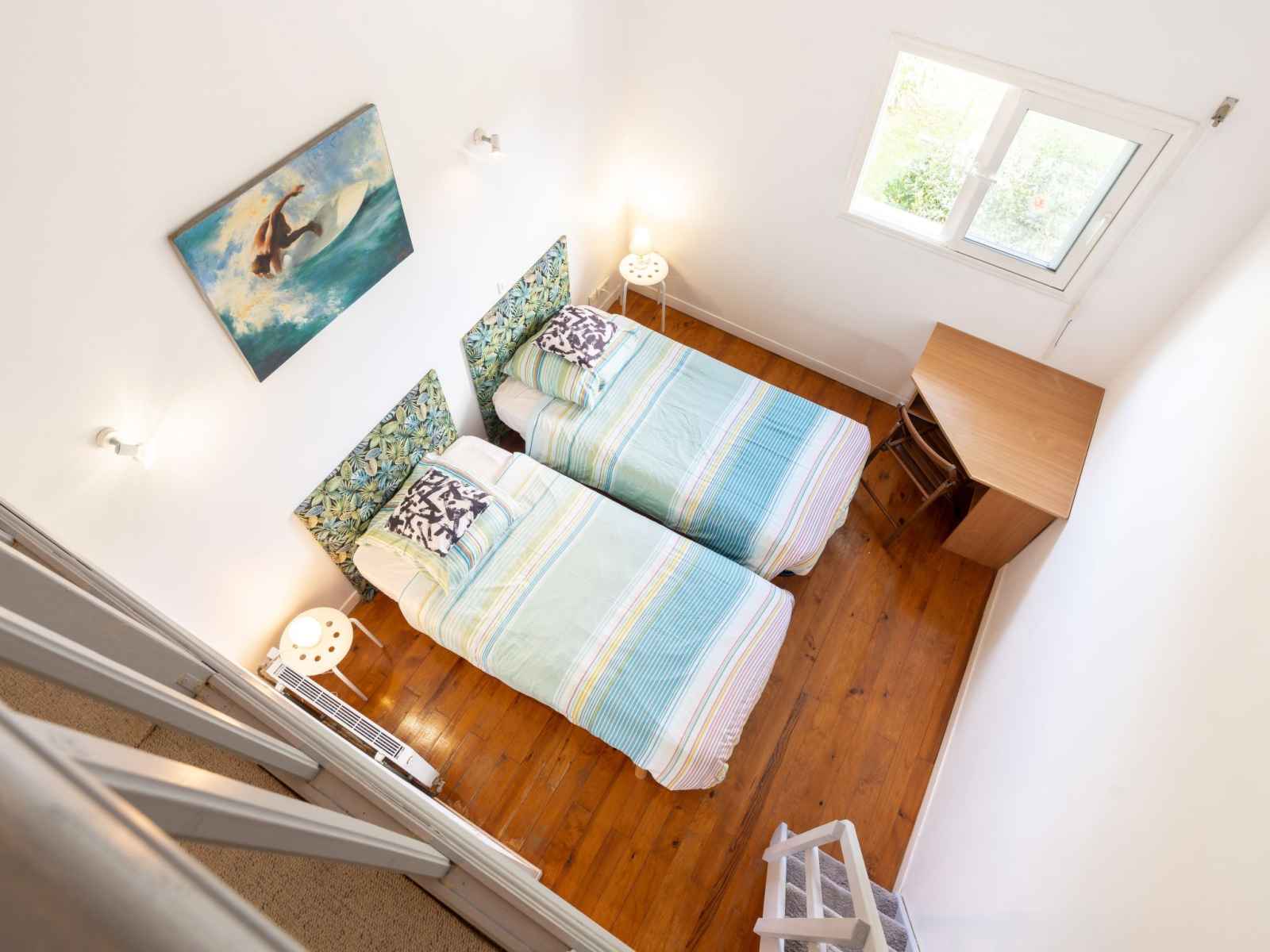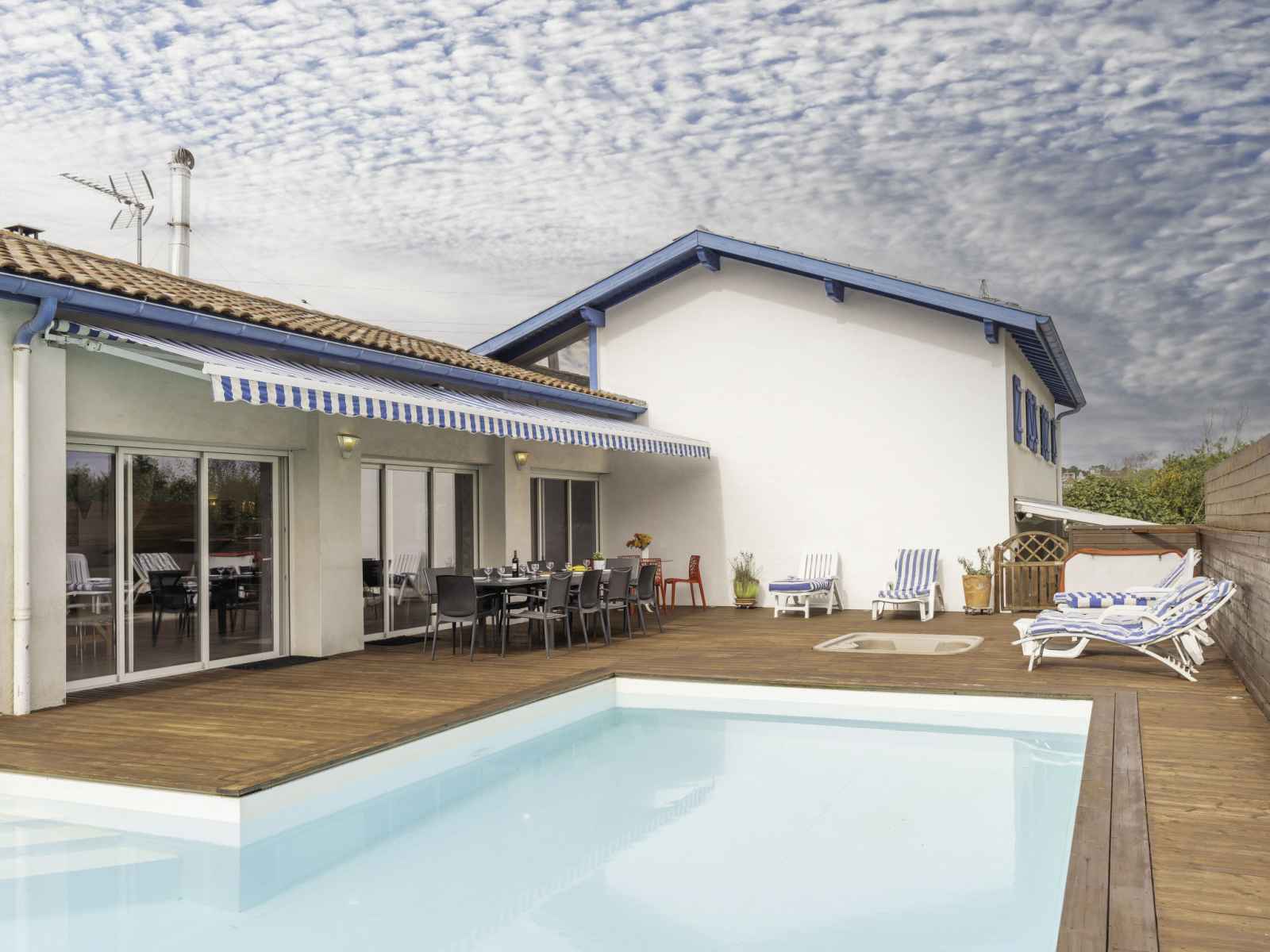 (écran plat). À l'étage inférieur: 2 chambres, chaque chambre avec: 2 lits (90 cm, longueur 190 cm), bain/WC et chauffage a gaz. Sortie sur la terrasse. 1 chambre avec 1 grand-lit (160 cm, longueur 200 cm), bain/WC. Sortie sur la terrasse. À l'étage supérieur: 3 chambres, chaque chambre avec: 1 lit (90 cm, longueur 190 cm), 1 grand-lit (140 cm, longueur 190 cm), douche/WC et TV (écran plat). Sortie sur le balcon. Balcon 8 m2, grande terrasse 140 m2. Meubles de terrasse, mobilier de balcon, chaises longues (7). A disposition: lave-linge, sèche-linge, fer à repasser, lit bébé, sèche-cheveux. Internet (Connexion WIFI, gratuit). Place de parking (3 Voitures), garage (2 Voitures). Veuillez noter: maximum 1 animal/ chien autorisé. Détecteur de fumée. Le propriétaire met à disposition 2 vélos électriques+ 7 vélos+ 1 canoe+2 planches surf mousse+ 1 stand up paddle gonflable. Annonce d'un particulier (art 155, IV du CGI). 64125000101AE