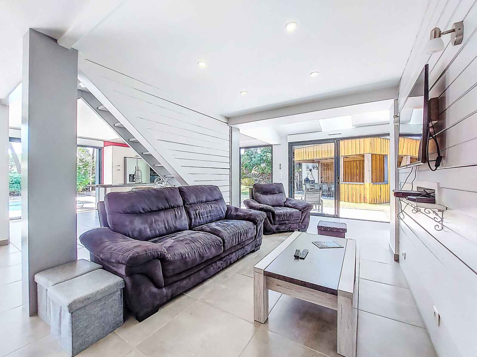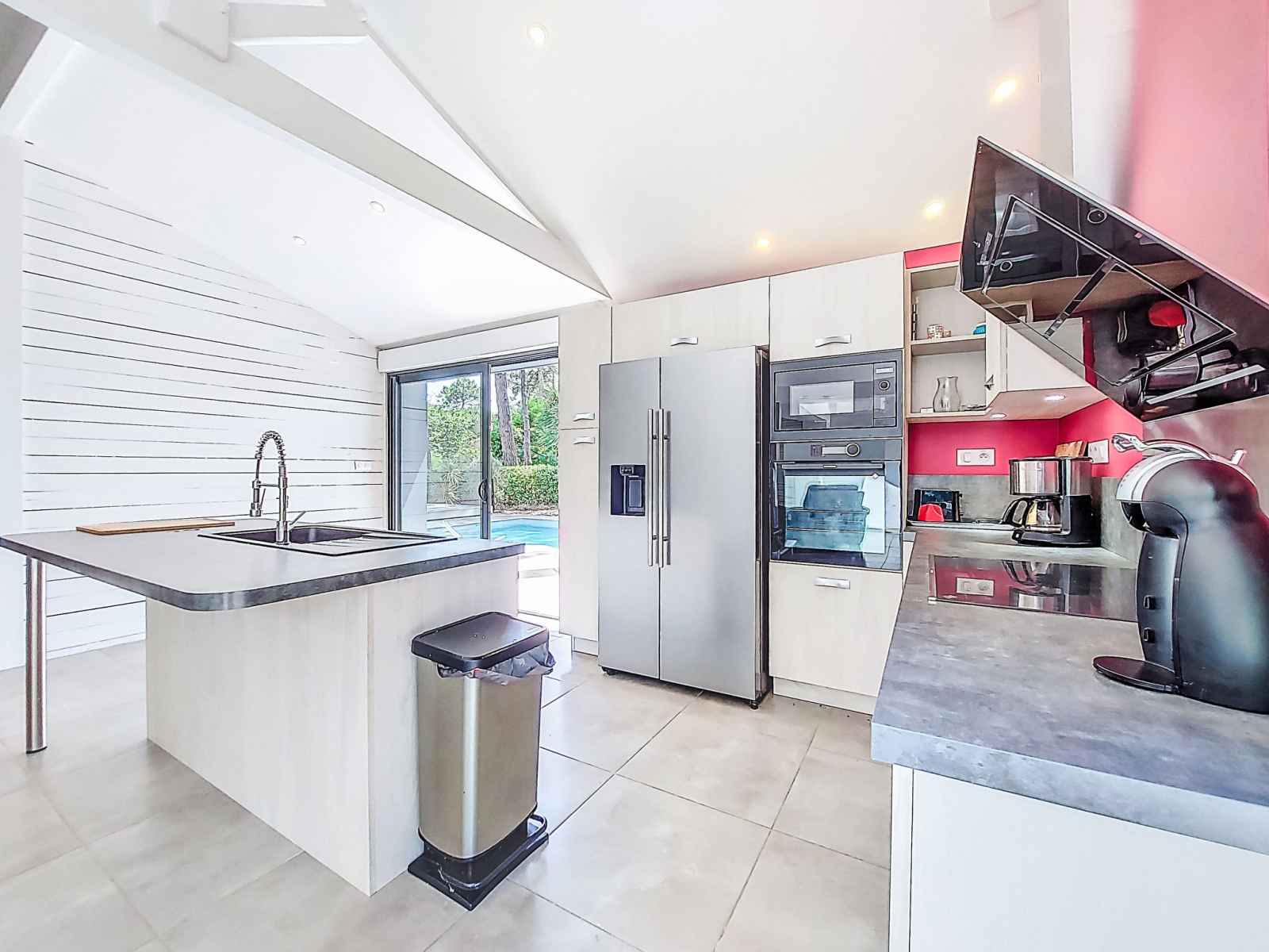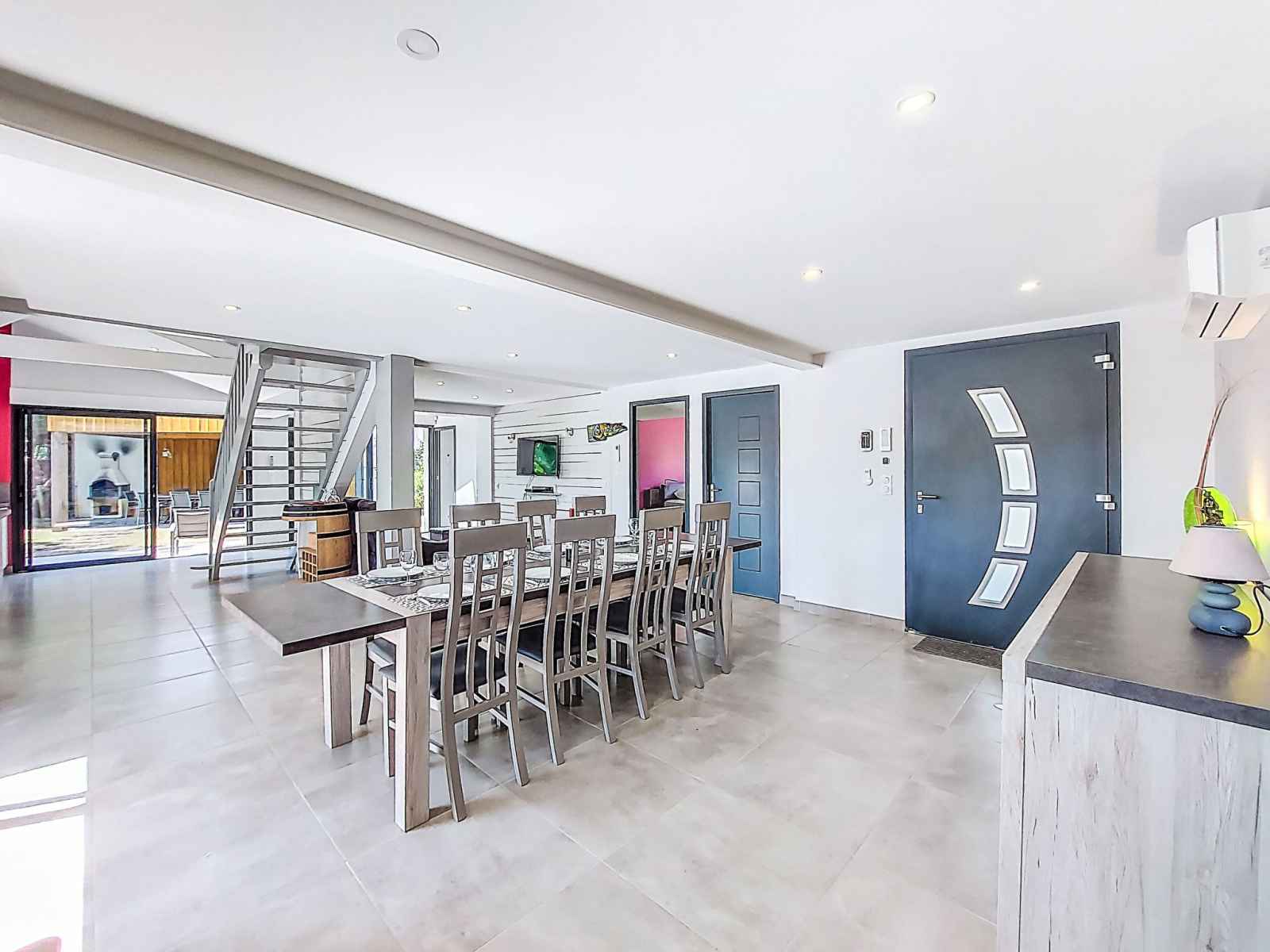 Villa 6 pièces 150 m2 sur 2 niveaux. aménagement confortable et agréable: salle à manger avec tv (écran plat). 1 chambre avec (140 cm, longueur 190 cm), douche. sortie sur la terrasse, sur la piscine. 2 chambres, chaque chambre avec: (160 cm, longueur 200 cm), douche. grande cuisine ouverte (four, 4 plaques à induction, grille-pain,