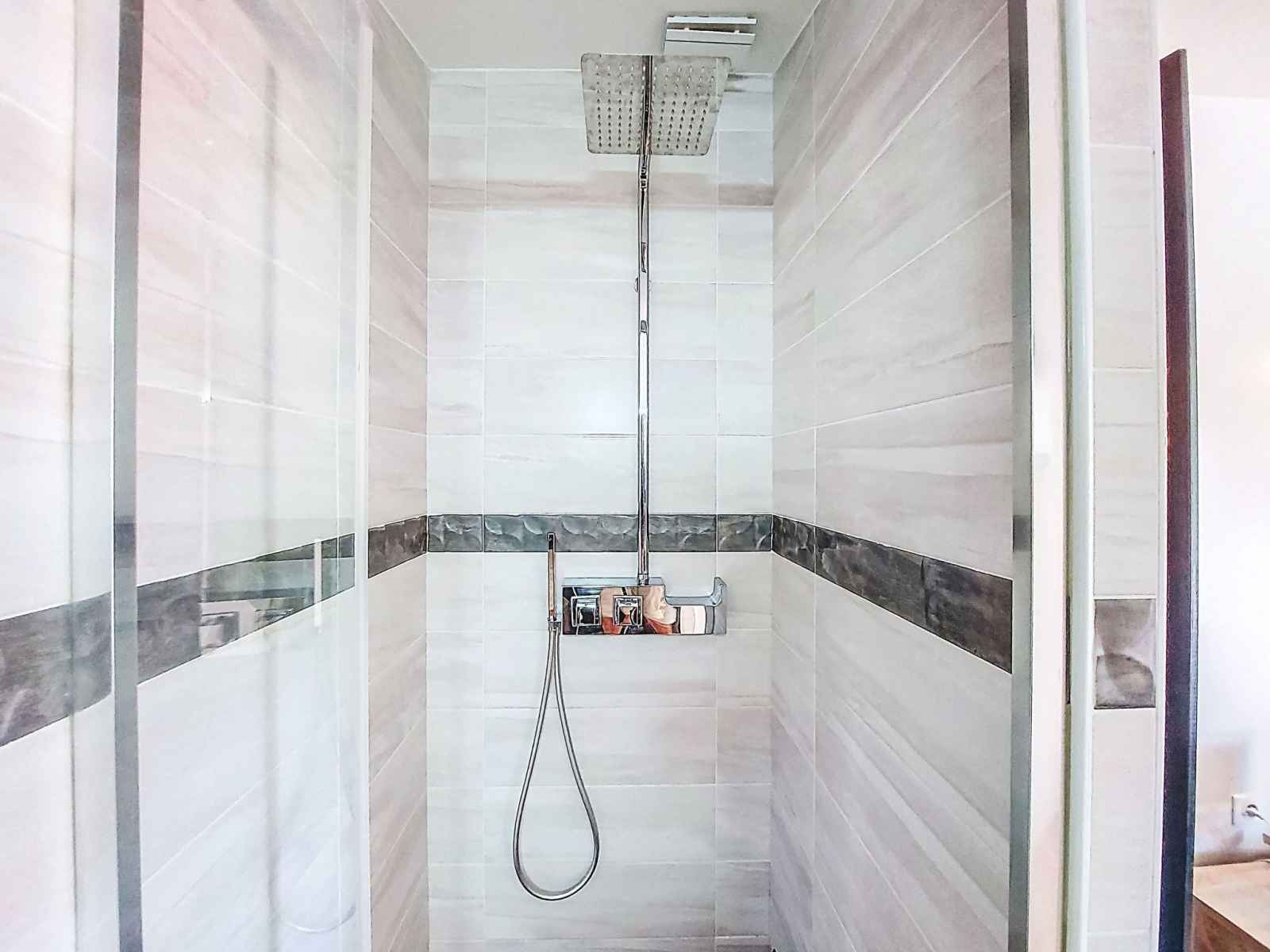 bouilloire électrique, micro-ondes, cafetière électrique, Capsules pour machine à café (Dolce Gusto) (NON INCLUSES)). WC séparé. À l'étage supérieur: 1 chambre avec (160 cm, longueur 200 cm), douche. 1 chambre avec (160 cm, longueur 200 cm), douche. Sortie sur la terrasse. WC séparé. Air-conditionné. Grande terrasse 105 m2, situation sud. Meubles de terrasse, barbecue, chaises longues (6). A disposition: lave-linge, fer à repasser. Internet (Connexion WIFI, gratuit). Place de parking (cloturée, 4 Voitures). Veuillez noter: logement non-fumeur. Maximum 2 animaux/ chiens autorisés. Détecteur de fumée. Annonce d'un particulier (art 155, IV du CGI).