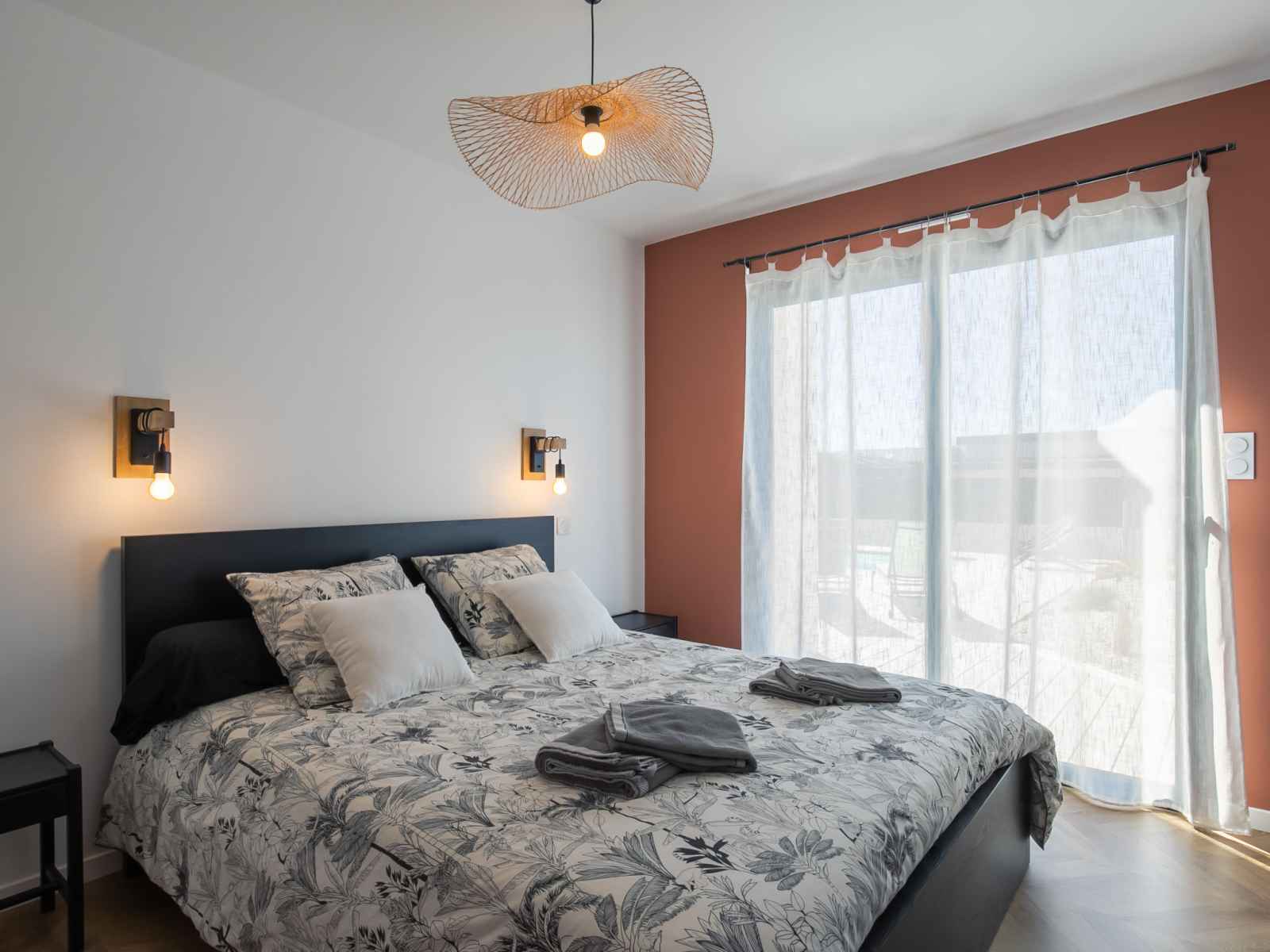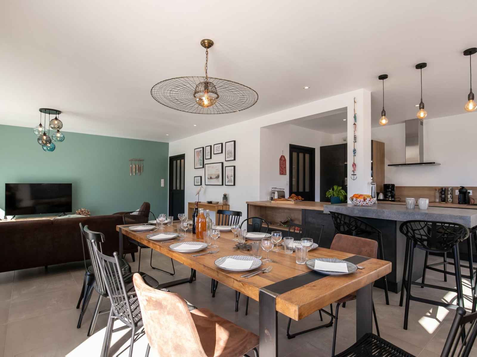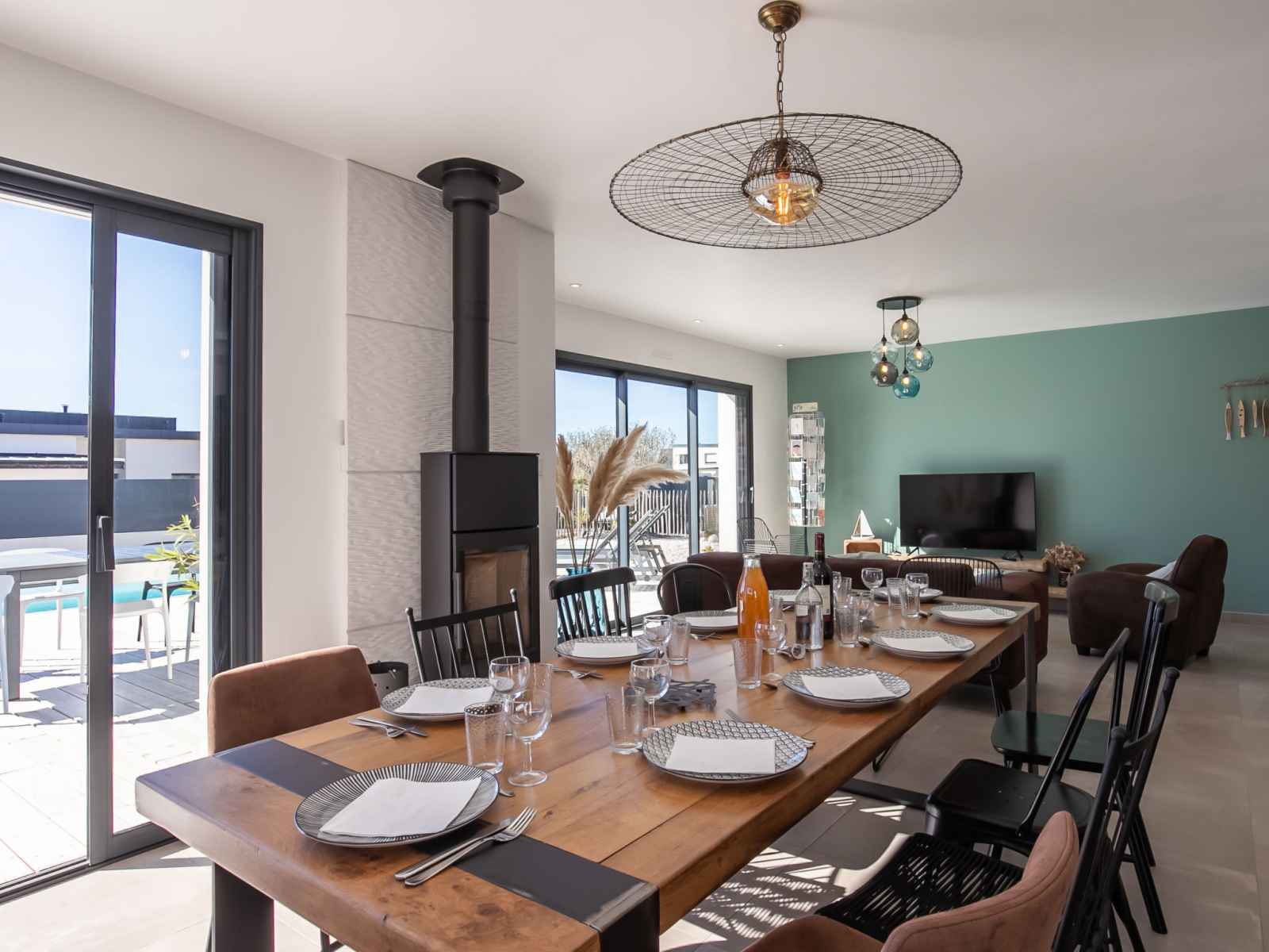 "au gré du vent", villa 5 pièces 132 m2. logement idéal pour 6 adultes + 4 enfants. spacieux et clair, aménagement agréable et de bon goût: grand séjour/salle à manger 52 m2, ouvert avec télévision numérique et poêle à bois. sortie sur le jardin, sur la terrasse, sur la piscine. 1 chambre avec dressing avec 1 grand-lit (160 cm,