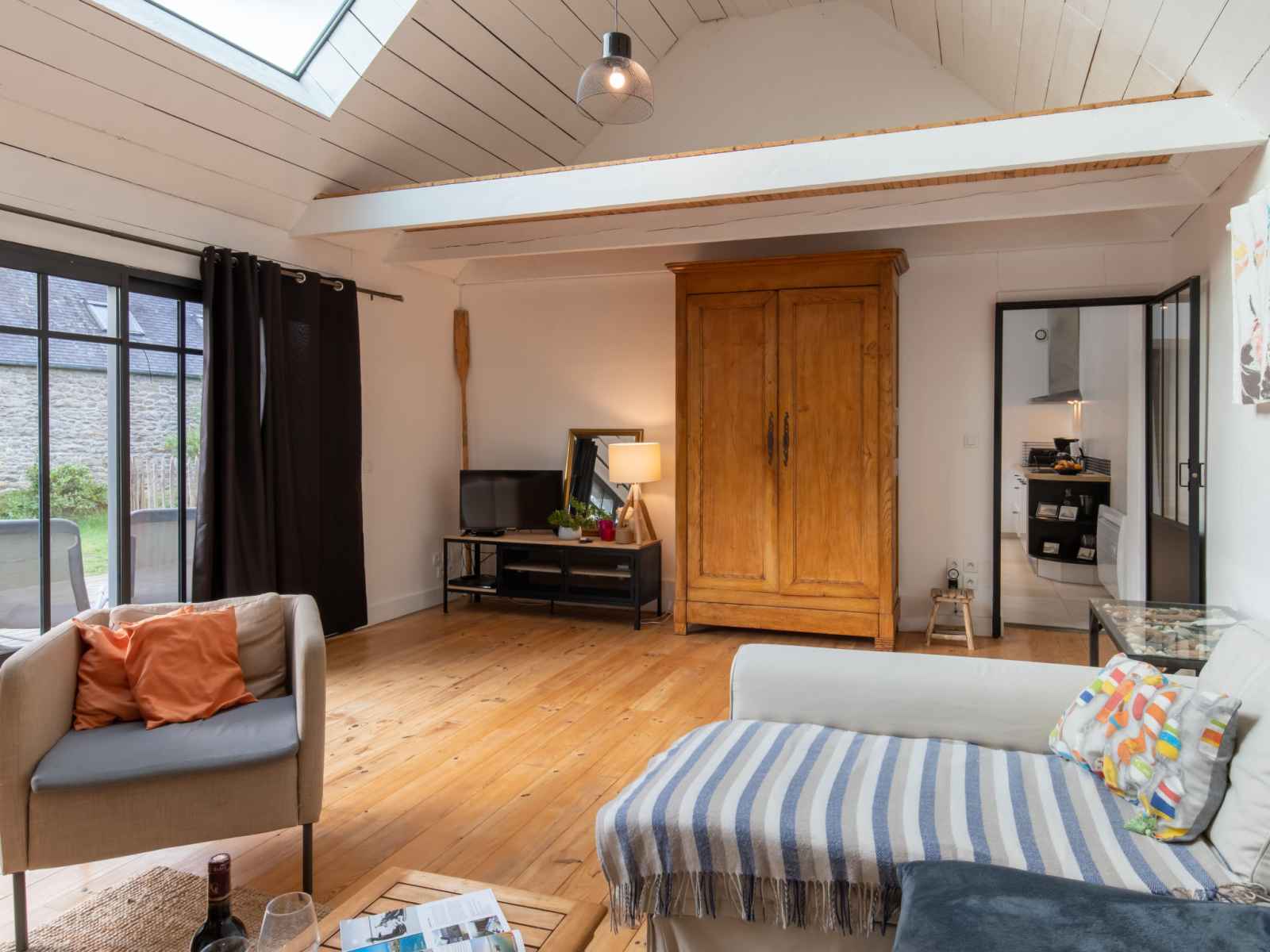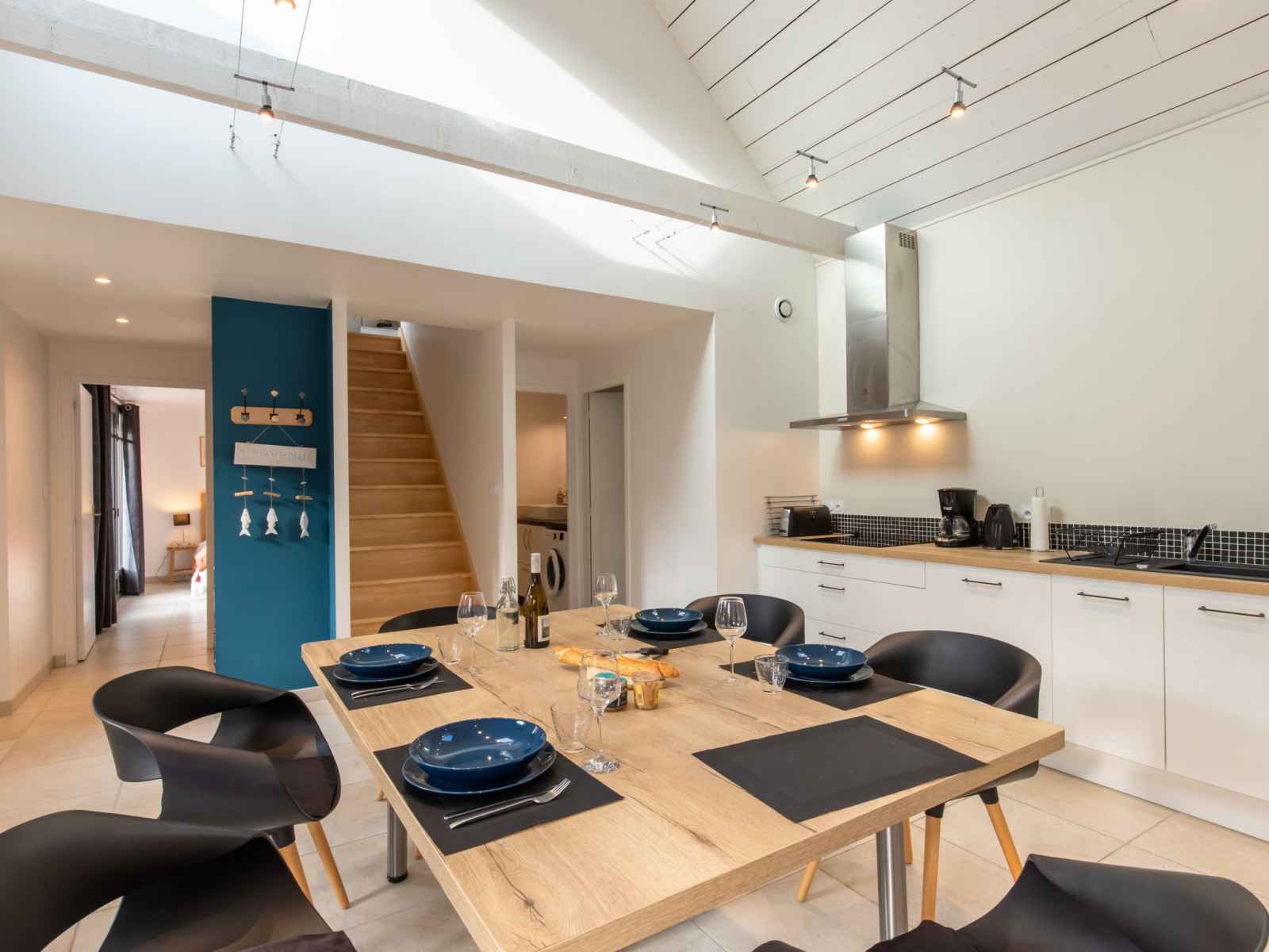 "le petit bonheur", maison 3 pièces 90 m2. aménagement moderne et de bon goût: séjour avec poêle suédois, tv (satellite) et dvd. sortie sur la terrasse. 1 chambre avec 1 grand-lit (140 cm, longueur 190 cm). sortie sur la terrasse. cuisine ouverte (four, lave-vaisselle, 3 plaques à induction, grille-pain, bouilloire électrique, micro-ondes,