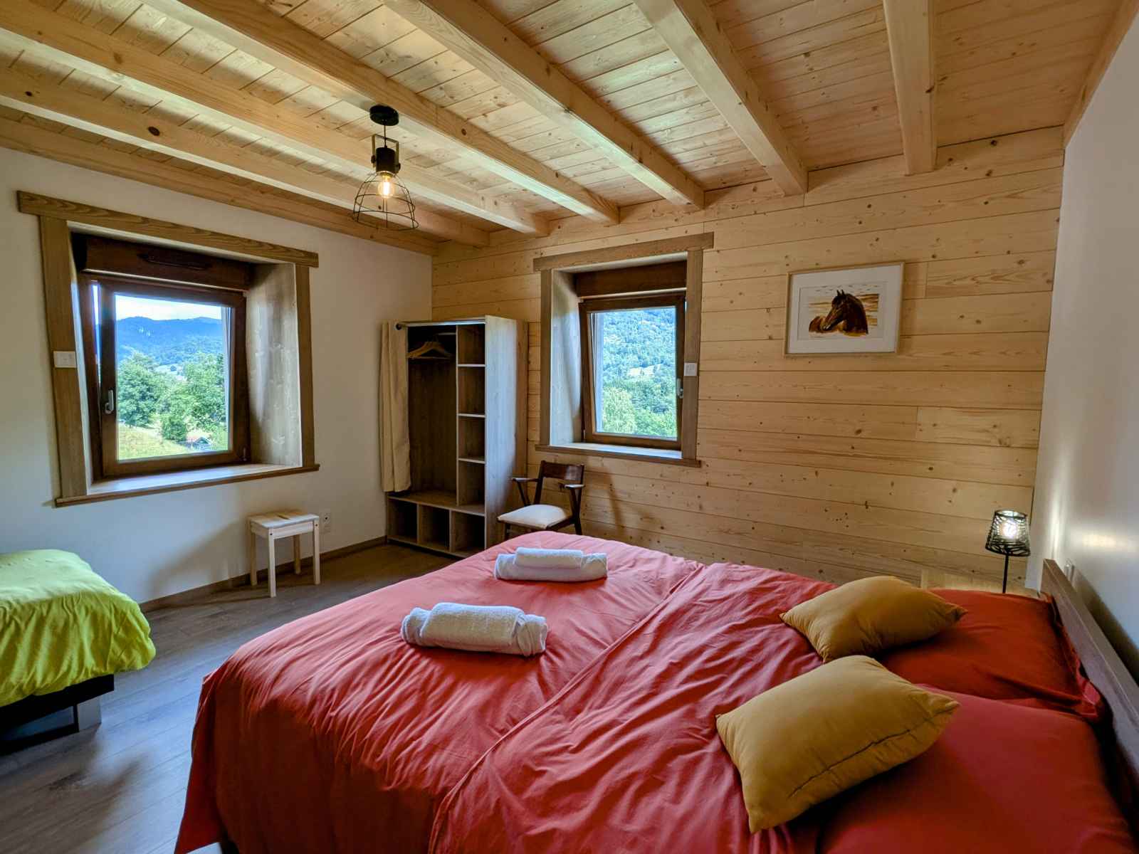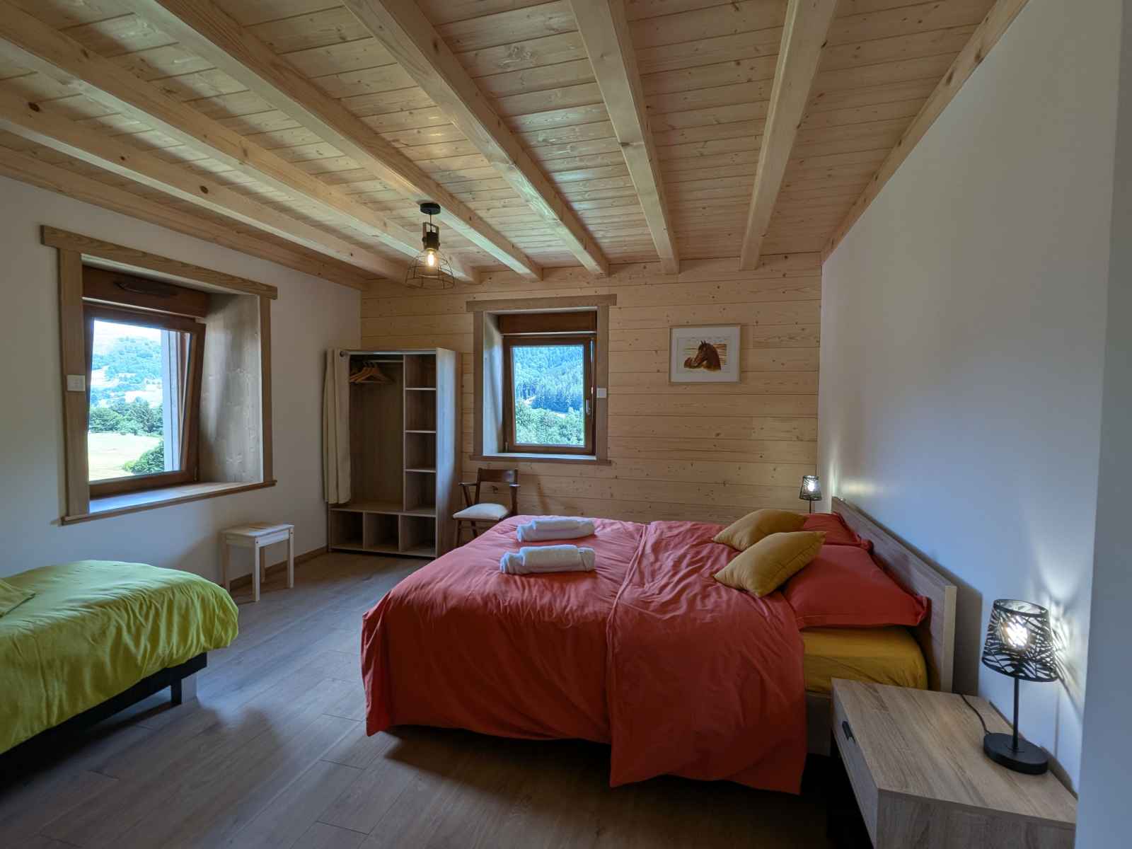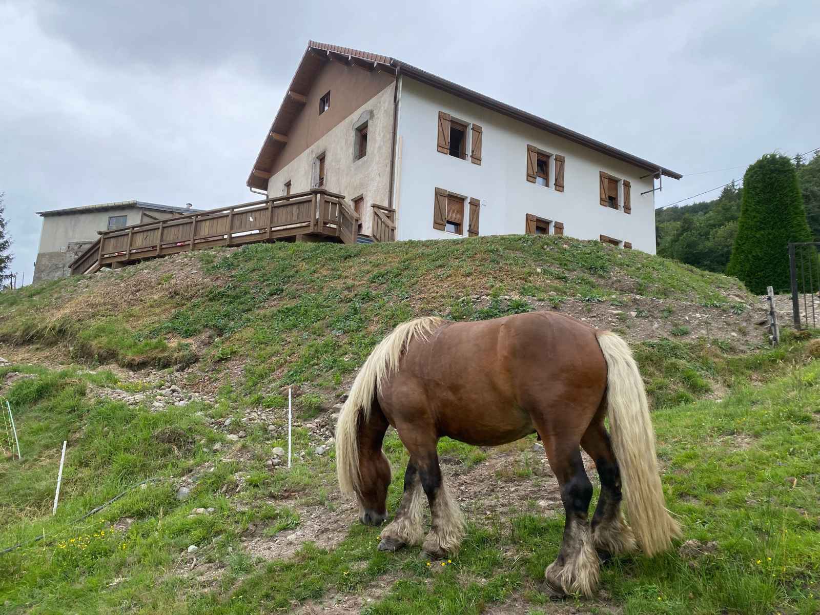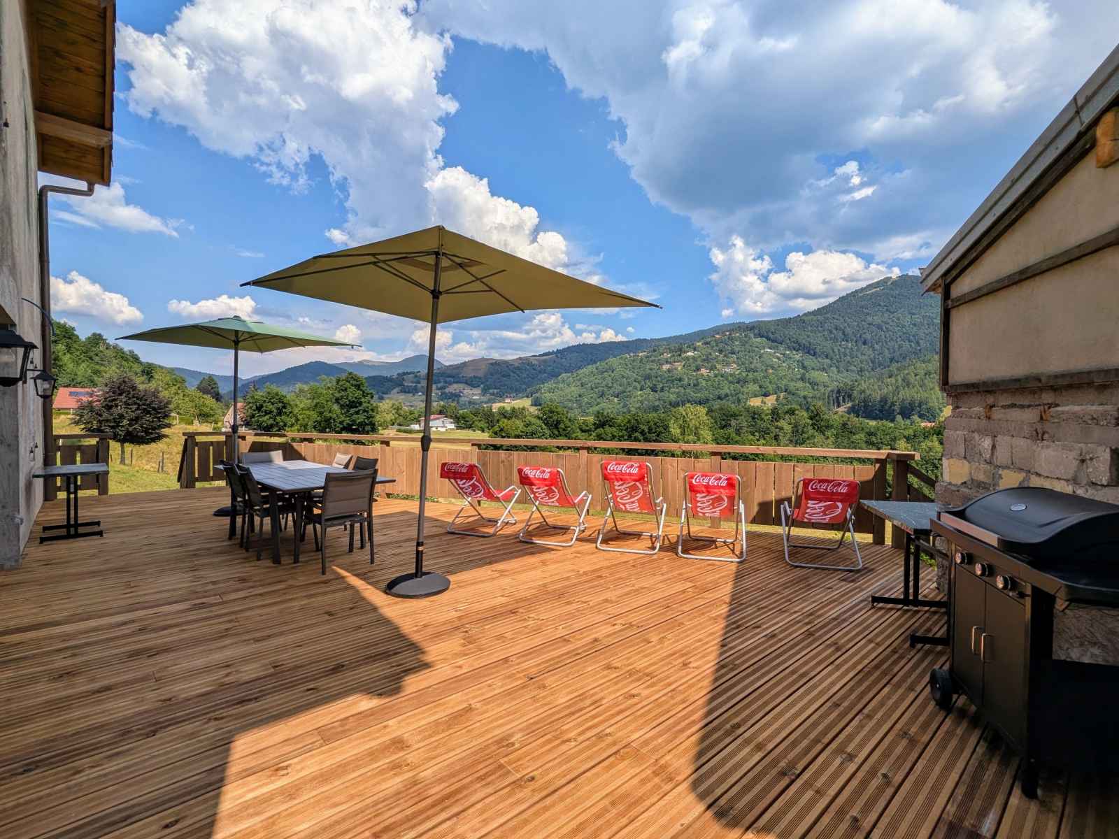 exceptionnel. Un séjour nature et ressourçant. Situé à proximité immédiate des sentiers de randonnée et des pistes de ski du domaine skiable de Larcenaire, ce logement est un point de départ parfait pour découvrir les paysages montagneux des Ballons des Vosges. Été comme hiver, les activités de plein air ne manquent pas : ski alpin et nordique, raquettes, VTT, Rando Ferrata, Voie verte, parapente, ou encore randonnées pédestres dans les forêts vosgiennes. Activités culturelles et découvertes locales comme la Source de la Moselle ou la Source Marie. Bussang est aussi réputé pour son Théâtre du Peuple qui se situe à 500 mètres du gîte, classé monument historique et connu pour sa scène unique s’ouvrant sur la forêt, ouvert de mi-Juillet à fin Août. À quelques kilomètres, explorez la Route des Crêtes, les lacs de montagne (Lac de Kruth-Wildenstein, Lac des Perches), ou encore les charmants villages alsaciens sur la route des vins. À proximité : - Centre du village de Bussang (1km) - Casino. - Tous commerces crèmerie, épicerie, bar et boulangerie avec salon de thé, boucherie et pharmacie au centre du village. - Site du Drumont avec sa ferme auberge ouvrant un panorama à 1200mètres d'altitude sur les crêtes Vosgiennes. - Station de ski du Larcenaire (3 kms) - Théâtre du Peuple (500 mètres) - Ballon d’Alsace et Ballon de Servance (20 min) - Thermes de Plombières-les-Bains (40 min) - Parc de Wesserling et Écomusée textile (20 min) - Lacs vosgiens (Lac des Perches, Kruth-Wildenstein), sentiers balisés et circuits VTT - Route des Crêtes, fermes-auberges. Ce gîte est une invitation à la détente et à la découverte, avec le confort d’un hébergement moderne et le charme d’un séjour en montagne. Le logement se compose de : Rez-de-chaussée : - Une pièce à vivre comprenant : - Un espace repas pour 10 personnes - Un salon avec canapés, fauteuils, TV, WIFI et vue sur les montagnes - Une cuisine équipée avec : 2 feux induction et deux feux gaz, réfrigérateur avec compartiment congélateur (230L +98L), cafetière filtre et Senseo, lave-vaisselle, four, micro-ondes, bouilloire, grille-pain, appareil à fondue et à raclette, autocuiseur. - Une chambre spacieuse avec un lit 160x200. - Une salle d'eau avec : Douche à l'italienne 150/90, vasque avec meuble sous vasque, sèche serviettes chauffant, sèche-cheveux. - WC indépendant. - Une terrasse bois de 60m² avec salon de jardin 10 personnes, chilienne et barbecue à gaz. - Hall entrée et couloir. Lave linge et sèche linge. Au premier étage : - Un espace mezzanine avec coin lecture et TV canapés. - Une chambre spacieuse avec deux lits 90/200. - Deux chambres spacieuse avec un lit 160/200 et un lit 80/200. - Une salle d'eau avec douche à l'italienne 150/90, double vasque. Sèche cheveux et sèche serviette chauffant. Wifi box internet gratuite. Tout est prévu pour les jeunes parents, chaise haute, table à langer et lit en bois réhaussable. Places de stationnement sur place, pour plusieurs véhicules. GITE EQUESTRE : Propriétaire passionnés de chevaux de trait, vous pourrez observer autour du gîte leurs chevaux comtois. Cavaliers et Meneurs d'Attelage sont les bienvenus : Hébergement possible pour vos chevaux avec boxs sur prairie et plusieurs terrains à disposition. Le tarif tout inclus comprend : le linge de lit et de toilette pour le séjour, un ménage de fin de séjour (hors vaisselle et poubelles), le chauffage aux pellets et à l'électricité avec une consommation raisonnée et raisonnable - si le chauffage du gîte est électrique vous disposez de 15 Kwh par jour (le dépassement sera à régler sur place aux hébergeurs).