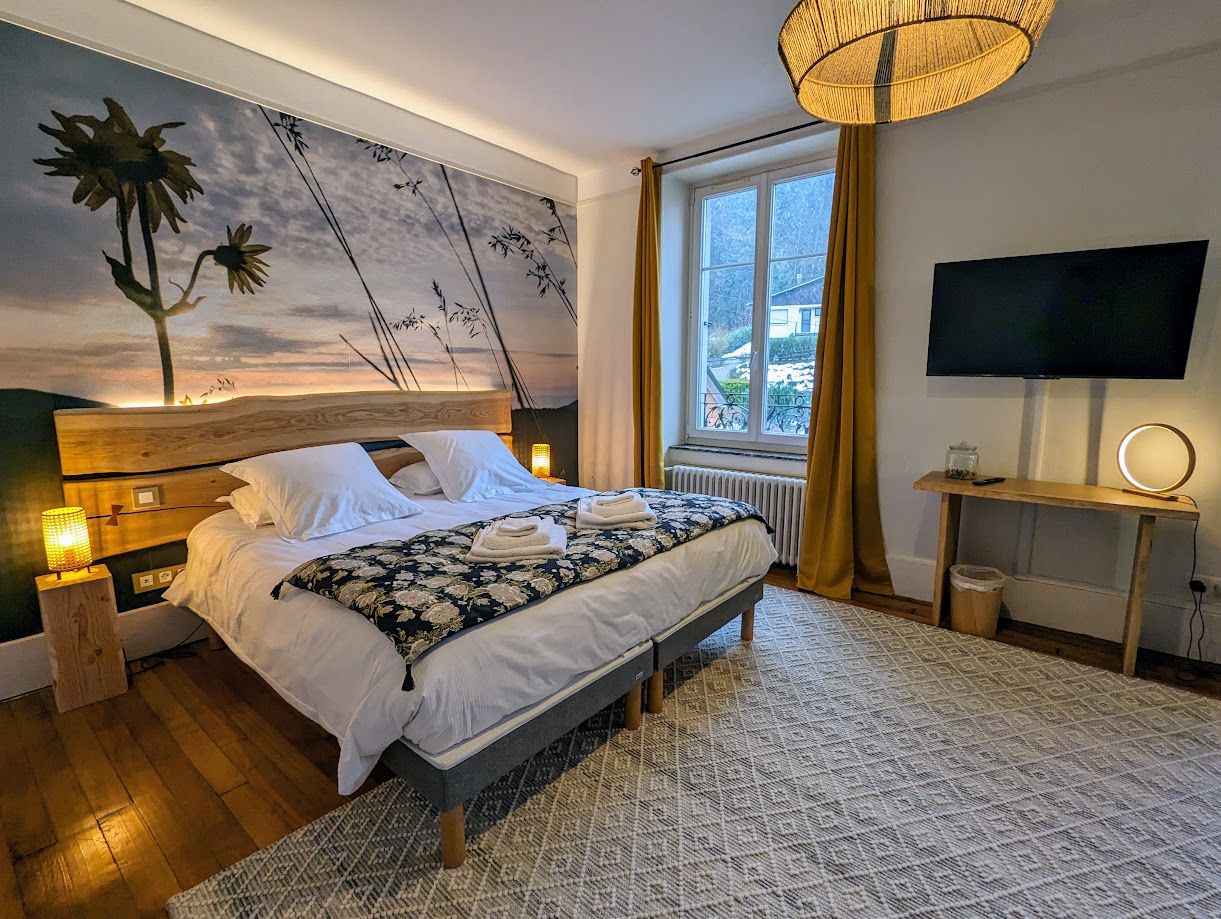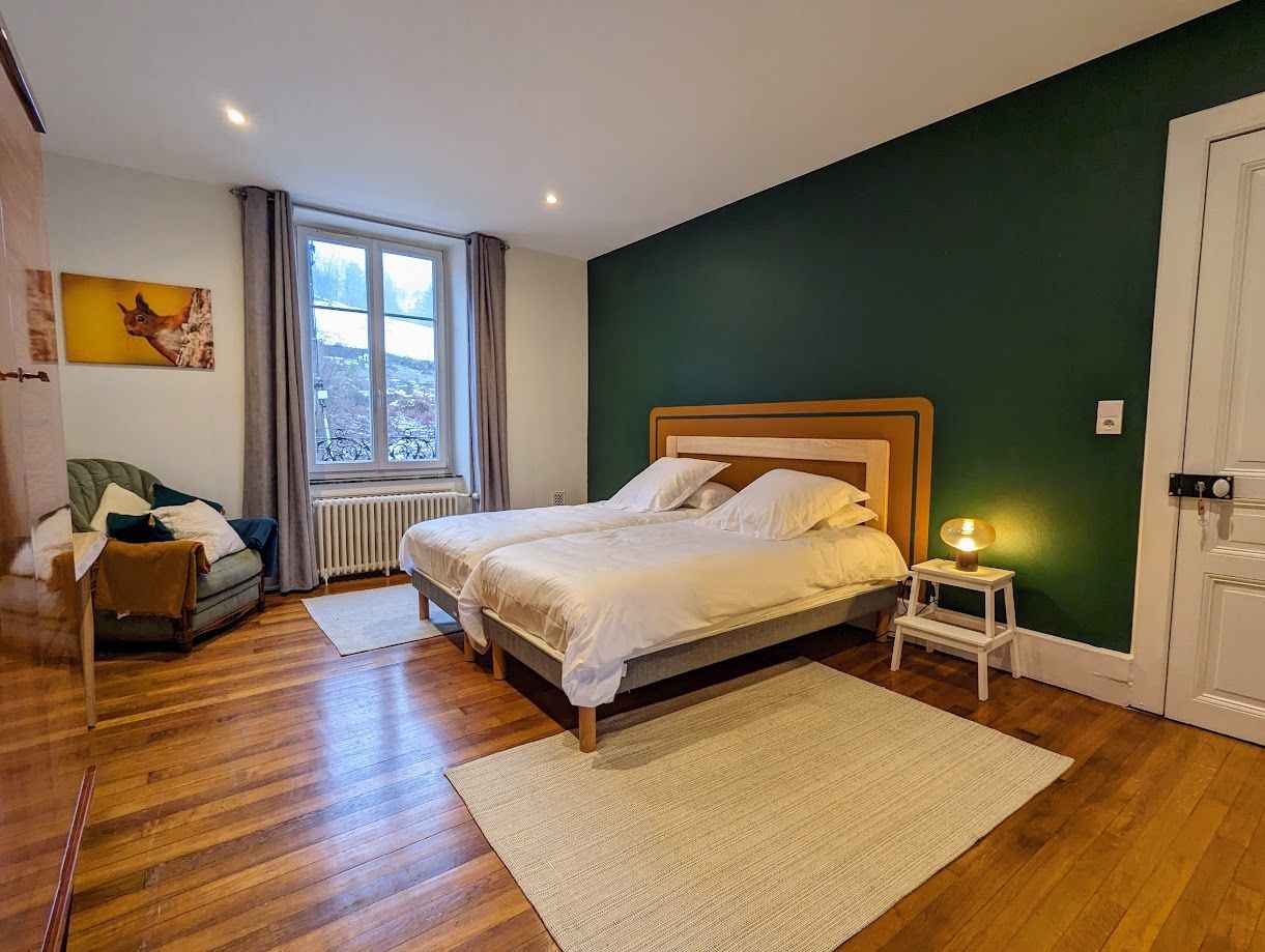 route des vins. Confortable et élégant compte divers détails intéressants. Il s'agit de la destination idéale pour les vacanciers en quête de calme, qui pourront y profiter dune jolie vue sur les montagnes et forêts. Idéalement situé au départ de belles balades à vélo ou à pied La Maison des douceurs vous accueille pour un séjour de découverte de la nature et vous y trouverez tous le confort nécessaire pour profiter d'un repos bien mérité Magnifique maison de maitre de 260m2 pleine de charme et d'authenticité et vue dégagée sur les montagnes ! Cette Maison des années 1880 entièrement rénovée avec gout et élégance vous propose : Au rez de chaussée : une entrée spacieuse avec poêle à pellets, un grand séjour traversant et lumineux doté lui aussi d'un poêle à pellets pour vos soirées d'hiver, salon COCOONING avec grande TV NEO LED, cuisine équipée , toilette avec buanderie. Au jardin un magnifique SPA vous attend pour un moment de détente vue sur les montagnes, douche extérieure, salon de jardin et salon de détente. A l'étage : Une salle d'eau séparée avec douche grandes dimensions et WC 4 chambres : 2 belles chambres avec literies neuves de grande qualités en 180 * 200, TV ,vue jardin et montagne Une chambre avec deux lits en 90*200 (pouvant être communicante) ,TV, vue montagne Une suite parentale avec spacieuse literies neuves de grande qualité en 180 * 200 salle de bain privée (douche à l'italienne et baignoire ). TV ,Vue montagne Cette magnifique bâtisse et ses prestations haut de gamme ne manquera pas de vous surprendre ! COUP DE COEUR ASSURE ! Jardin de 1650m2. avec terrasse pour profiter des beaux jours ! internet haut débit par fibre idéal pour le télé travail WIFI dans toute la maison A. disposition sur réservation écran connecté pour vidéoconférence Matériel bébé à la demande : lit parapluie et chaise haute Animaux strictement refusés. Le tarif tout inclus comprend : - Le linge de lit, de toilette et de maison pour le séjour - Un ménage de fin de séjour (hors vaisselle et poubelles) - Le chauffage et l'électricité avec une consommation raisonnée et raisonnable : vous disposez de 15 Kwh par jour (le dépassement sera à régler sur place aux hébergeurs). Vous serez accueillis par le propriétaire