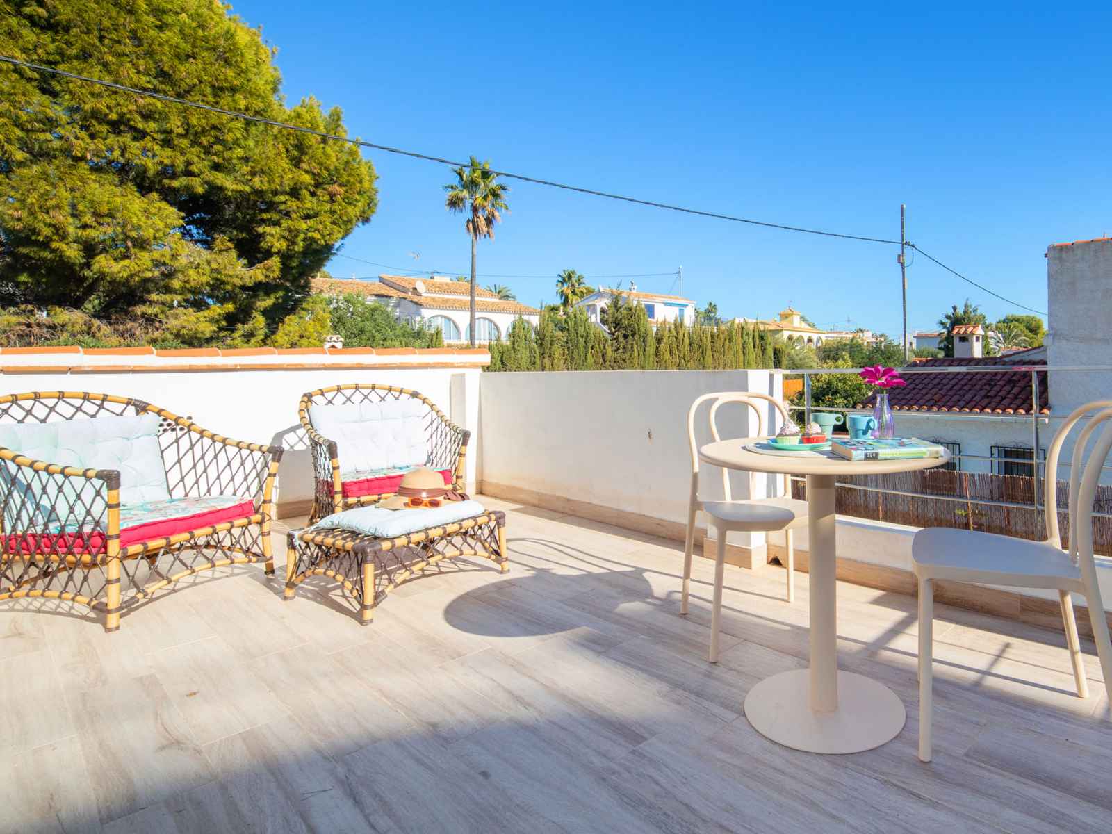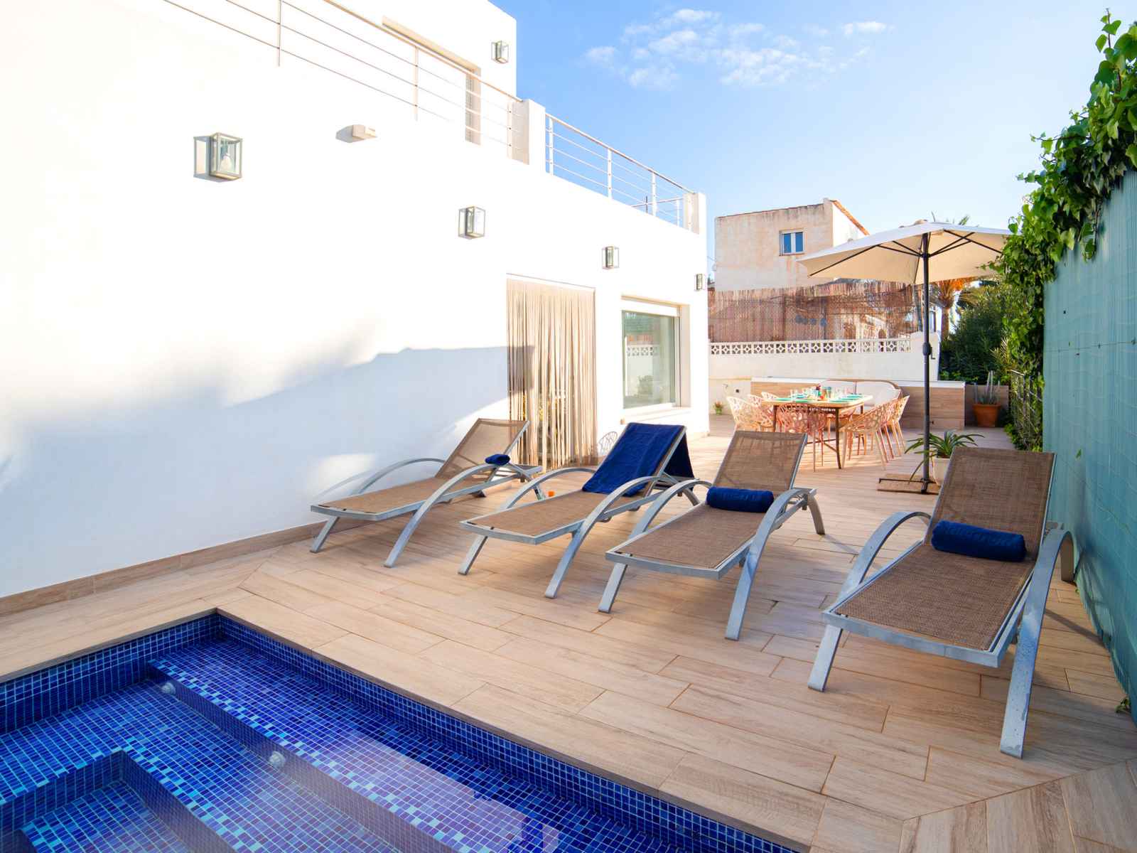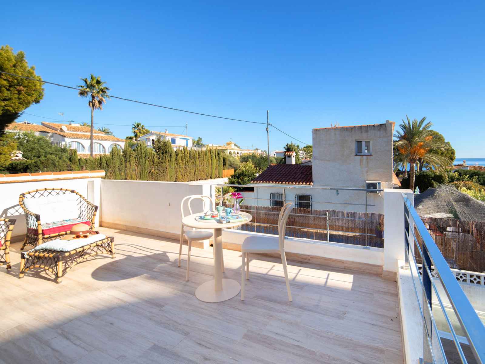 chambres, chaque chambre avec: 2 lits (90 cm, longueur 200 cm), air-conditionné et chauffage à air chaud. Cuisine (four, lave-vaisselle, 3 plaques vitrocéramiques, grille-pain, bouilloire électrique, micro-ondes, congélateur, cafetière électrique, Capsules pour machine à café (Nespresso) (NON INCLUSES)). Douche/WC. À l'étage supérieur: 1 chambre avec 1 grand-lit (150 cm, longueur 190 cm), douche/WC. Sortie sur la terrasse. Meubles de terrasse, barbecue, chaises longues (4). Vue partielle sur la mer. A disposition: lave-linge, fer à repasser, chaise haute pour enfant, lit bébé jusqu'à 2 ans, sèche-cheveux. Internet (Connexion WIFI, gratuit). Place de parking près de la maison. 1 animal/ chien de petite taille autorisé. AT-504609-A // Reg. Nr.: ESFCTU00000302900022829700000000000000000AT-504609-A6