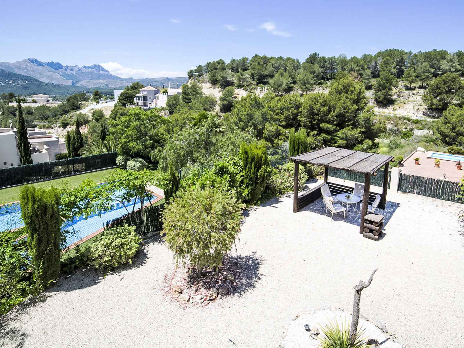 (clôturé), jardin fleurs et arbres, place de parking près de la maison. magasin d'alimentation 5.4 km, supermarché 5.4 km, arrêt de bus "parada bus" 2.7 km, plage de sable "playa de la fosa" 5.7 km. port plaisance 6.3 km, terrain de golf (9 trous) 9 km, tennis 3.9 km. attractions à proximité: aqualandia, mundomar, terra mítica, terra natura, benidorm palace (benidorm).