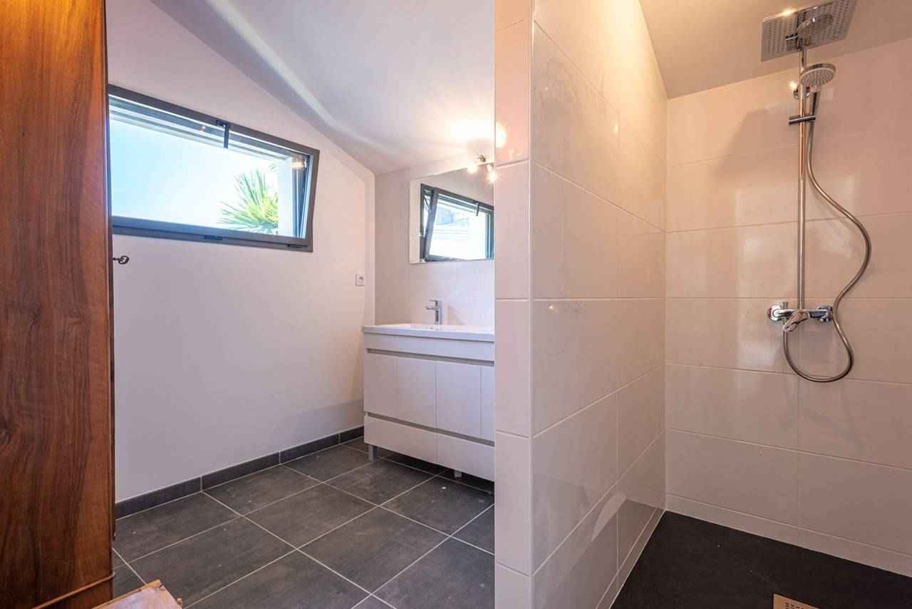 - 1 salle d'eau avec douche à l'italienne et double vasque