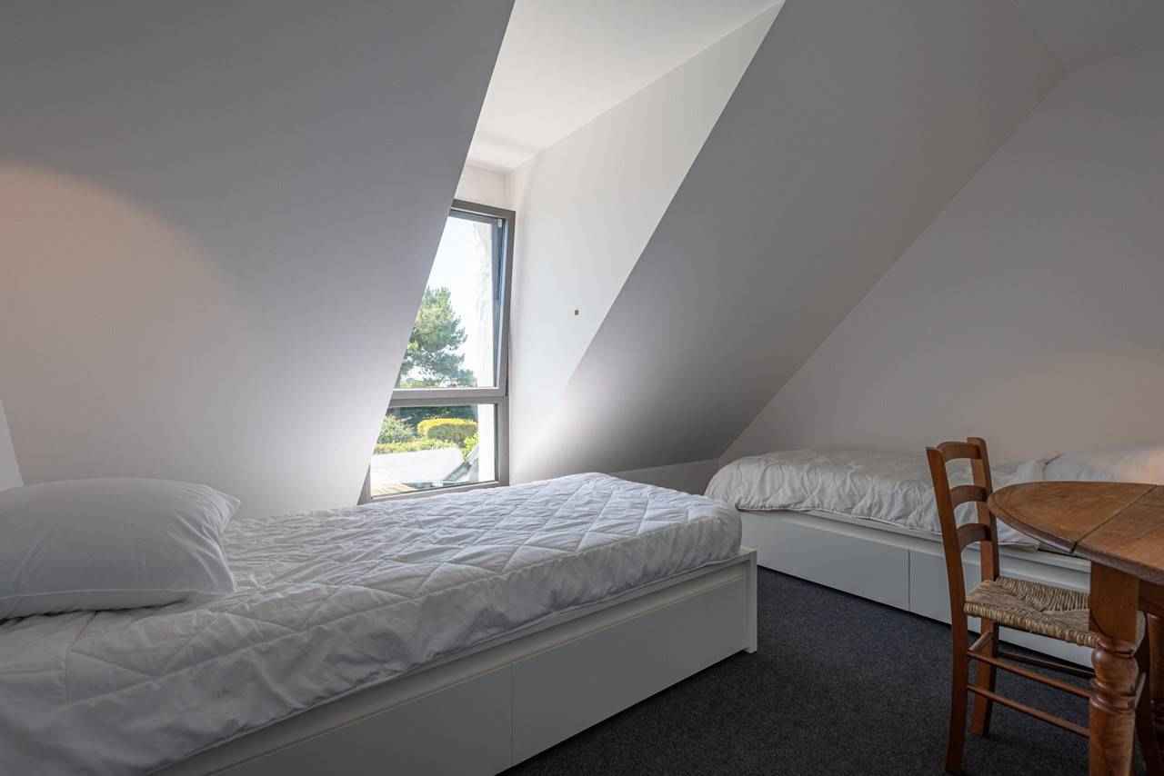 - 1 chambre avec 2 lits individuels (90, couettes) moquette rase