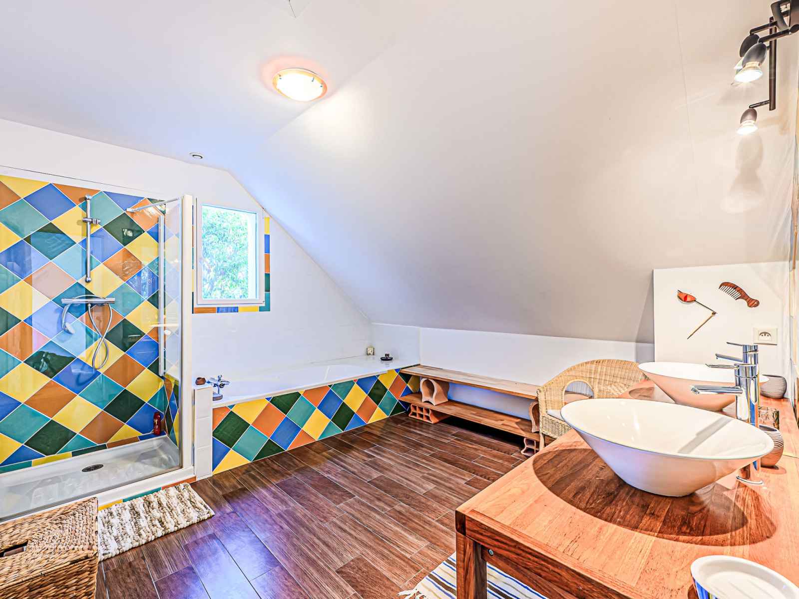 Maison 5 pièces 125 m2 sur 2 niveaux. partiellement rénovée en 2025, aménagement confortable: séjour/salle à manger. sortie sur le jardin. 1 chambre avec 1 grand-lit (1 x 140 cm, longueur 190 cm), lavabo et douche/wc. sortie sur la terrasse. cuisine (four, lave-vaisselle, 3 plaques à induction, grille-pain, bouilloire électrique,