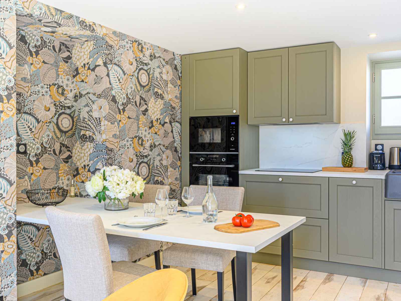 "colary", maison 2 pièces 40 m2. complètement rénovée en 2023, aménagement confortable: séjour/salle à manger avec tv (écran plat). sortie sur la terrasse. cuisine ouverte (four, lave-vaisselle, 3 plaques à induction, grille-pain, bouilloire électrique, micro-ondes, cafetière électrique, capsules pour machine à café (nespresso) (non