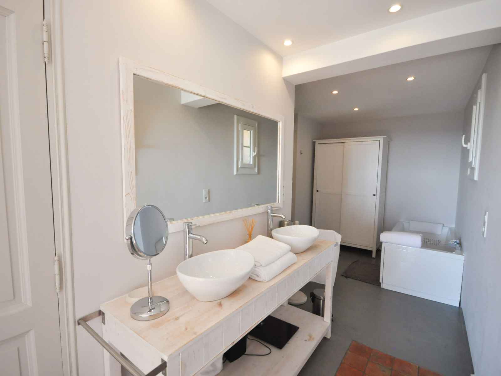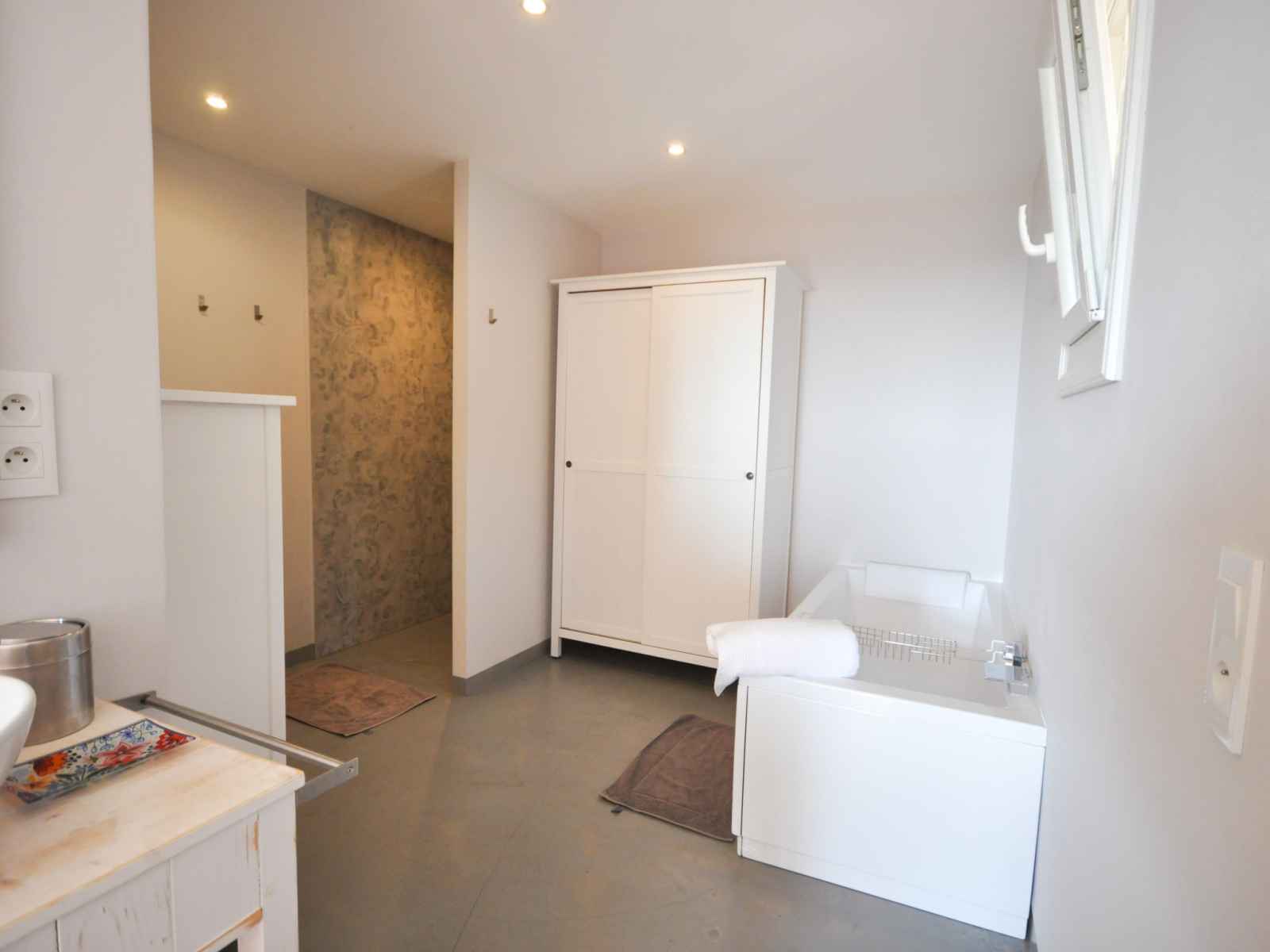 piscine. Cuisine ouverte (2 plaques de cuisson, four, lave-vaisselle, 4 plaques vitrocéramiques, grille-pain, bouilloire électrique, micro-ondes, cafetière électrique). WC séparé. Chauffage électrique. À l'étage supérieur: 1 chambre avec 2 lits (80 cm, longueur 200 cm), douche et air-conditionné. 1 chambre avec 1 grand-lit (1 x 140 cm, longueur 190 cm), douche et air-conditionné. Sortie sur le balcon. 1 petite chambre avec 1 grand-lit (140 cm, longueur 190 cm), air-conditionné. WC séparé. Petit balcon 9 m2, grande terrasse 350 m2. Meubles de terrasse, barbecue, chaises longues (8). Belle vue sur la mer et le port. A disposition: lave-linge, coffre-fort, fer à repasser, chaise haute pour enfant, lit bébé jusqu'à 3 ans. Internet (Connexion WIFI, gratuit). Veuillez noter: maximum 1 animal/ chien autorisé. Détecteur de fumée. Frigo américain et distributeur de glace. La douche du rez-de-chaussée est une douche italienne. Enceinte compacte compatible bluetooth et wifi (utilisable avec un smartphone). La télévision comprend des chaines allemandes. Terrasse panoramique sur pilotis. FR8430.800.1