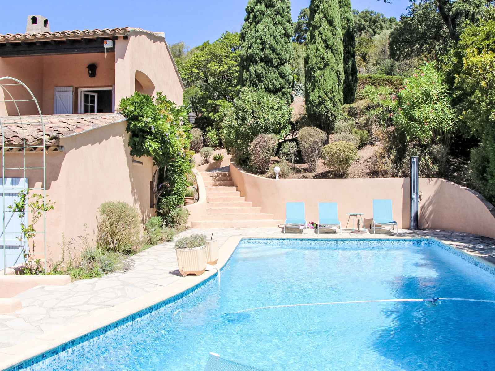 Belle villa "mare e sole". en-dehors de la localité, à 3.3 km du centre de cavalaire sur mer, situation tranquille sur un versant, dans un quartier résidentiel, à 1.6 km de la mer. a usage privé: terrain 1'800 m2 (clôturé), jardin entretenu, piscine (11 x 5 m, profondeur 120 - 210 cm, disponibilité saisonnière: 01.jan. - 31.dec.) avec