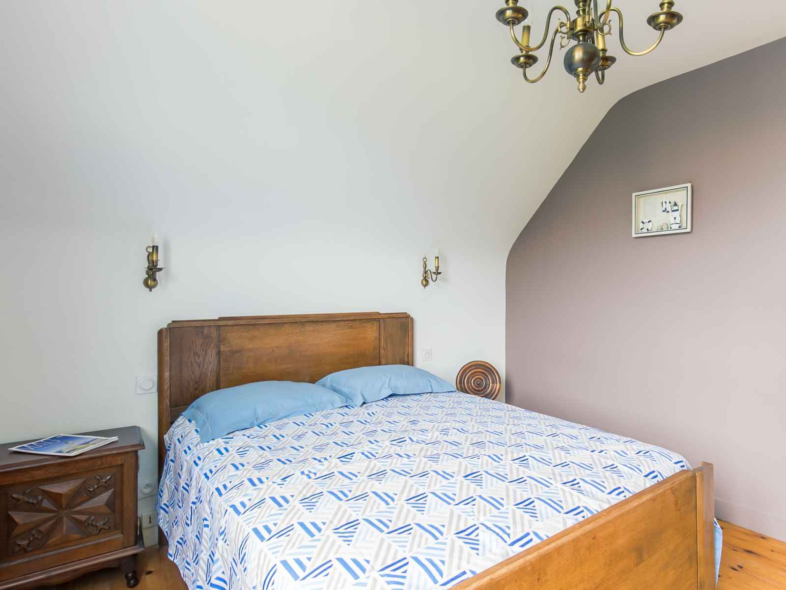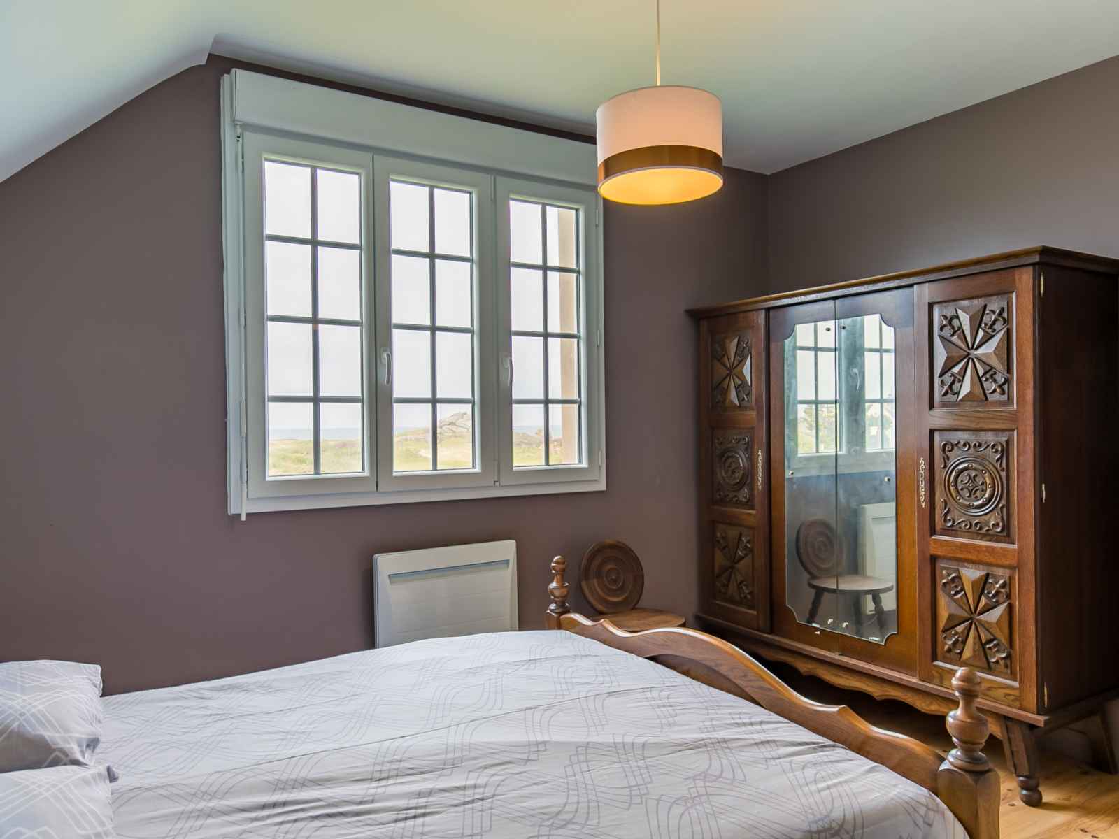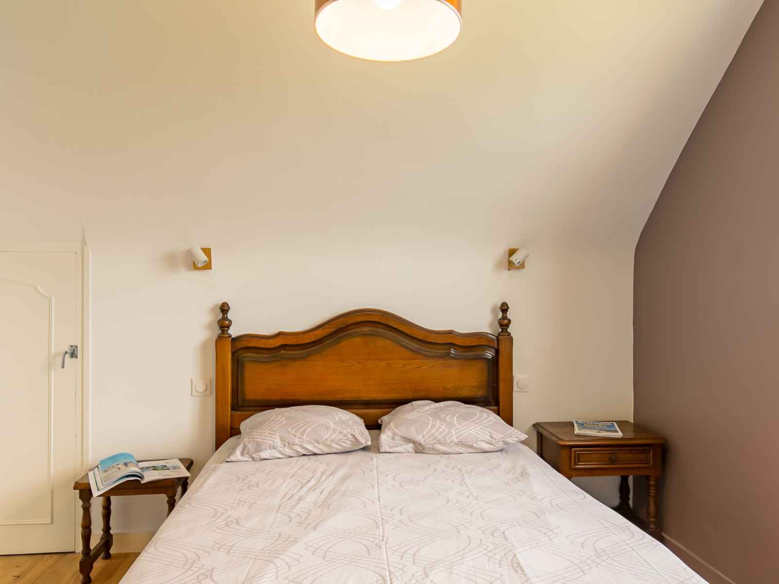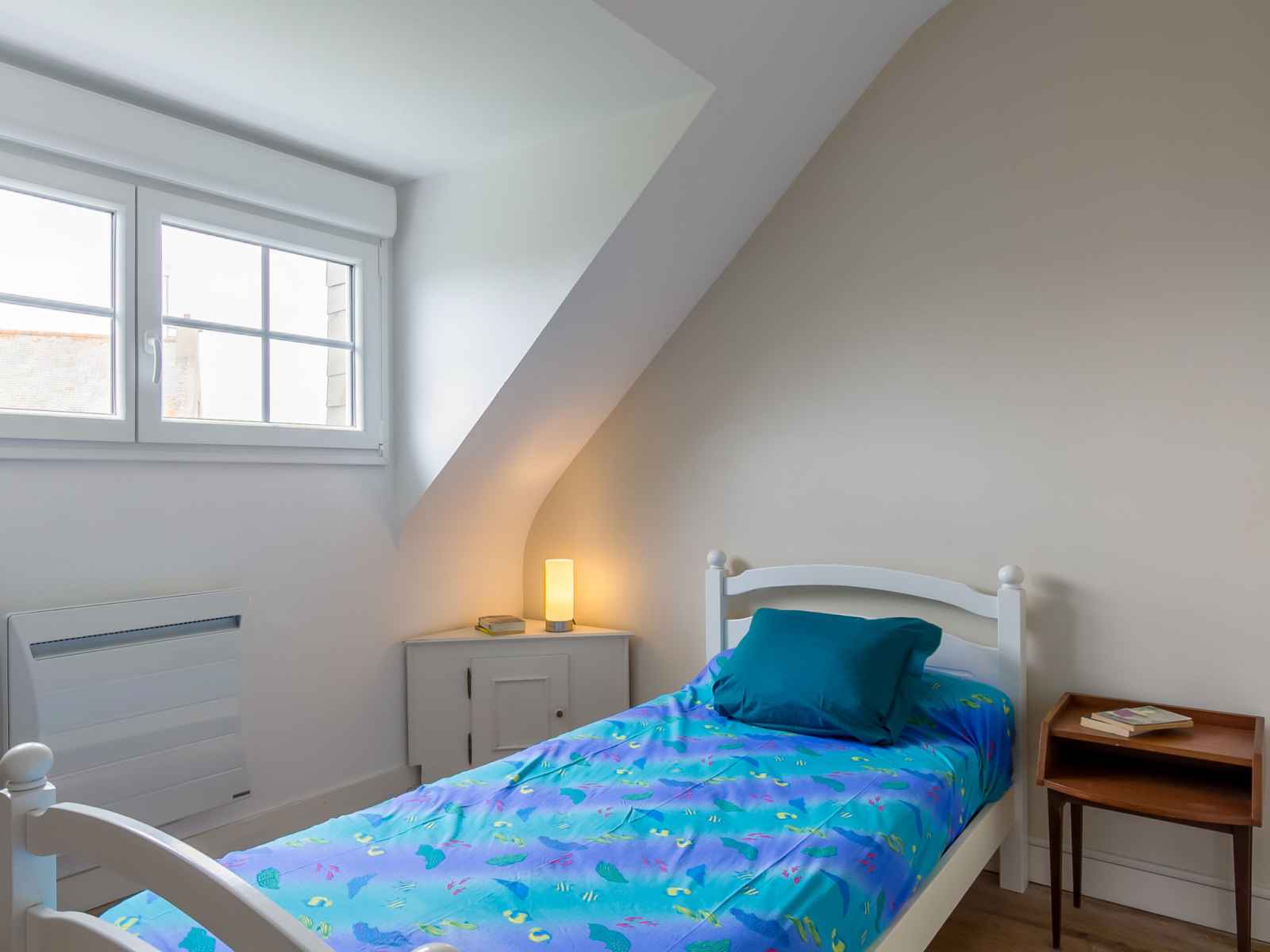supérieur: 3 chambres, chaque chambre avec: 1 grand-lit (140 cm, longueur 190 cm). 1 chambre avec 1 lit (90 cm, longueur 190 cm). Douche. Chauffage électrique. Meubles de terrasse, chaises longues (3). Vue sur la mer. A disposition: lave-linge, fer à repasser. Place de parking. Veuillez noter: maison non-fumeur. Détecteur de fumée. Annonce d'un particulier (art 155, IV du CGI). 29030 000113 9G