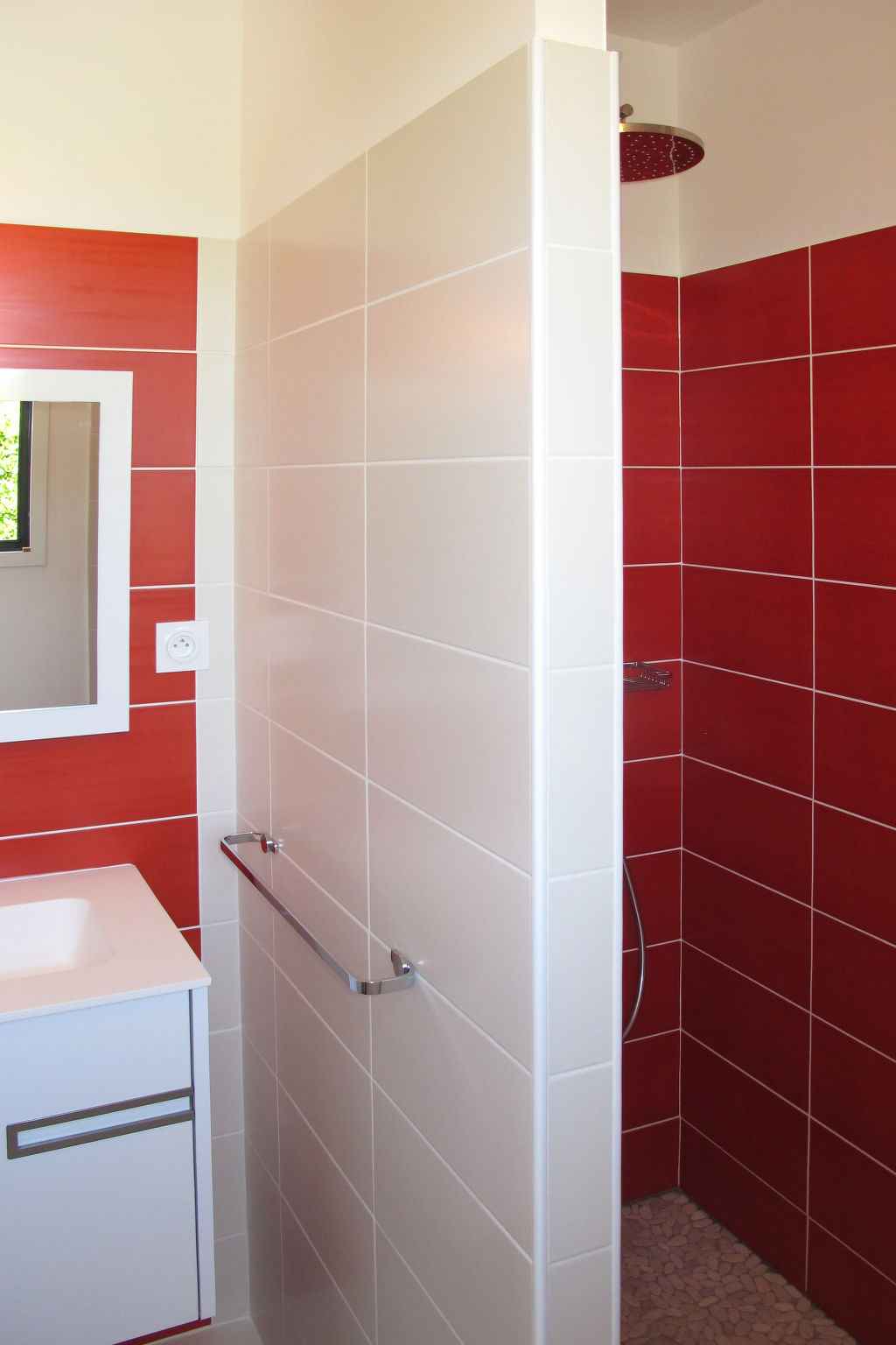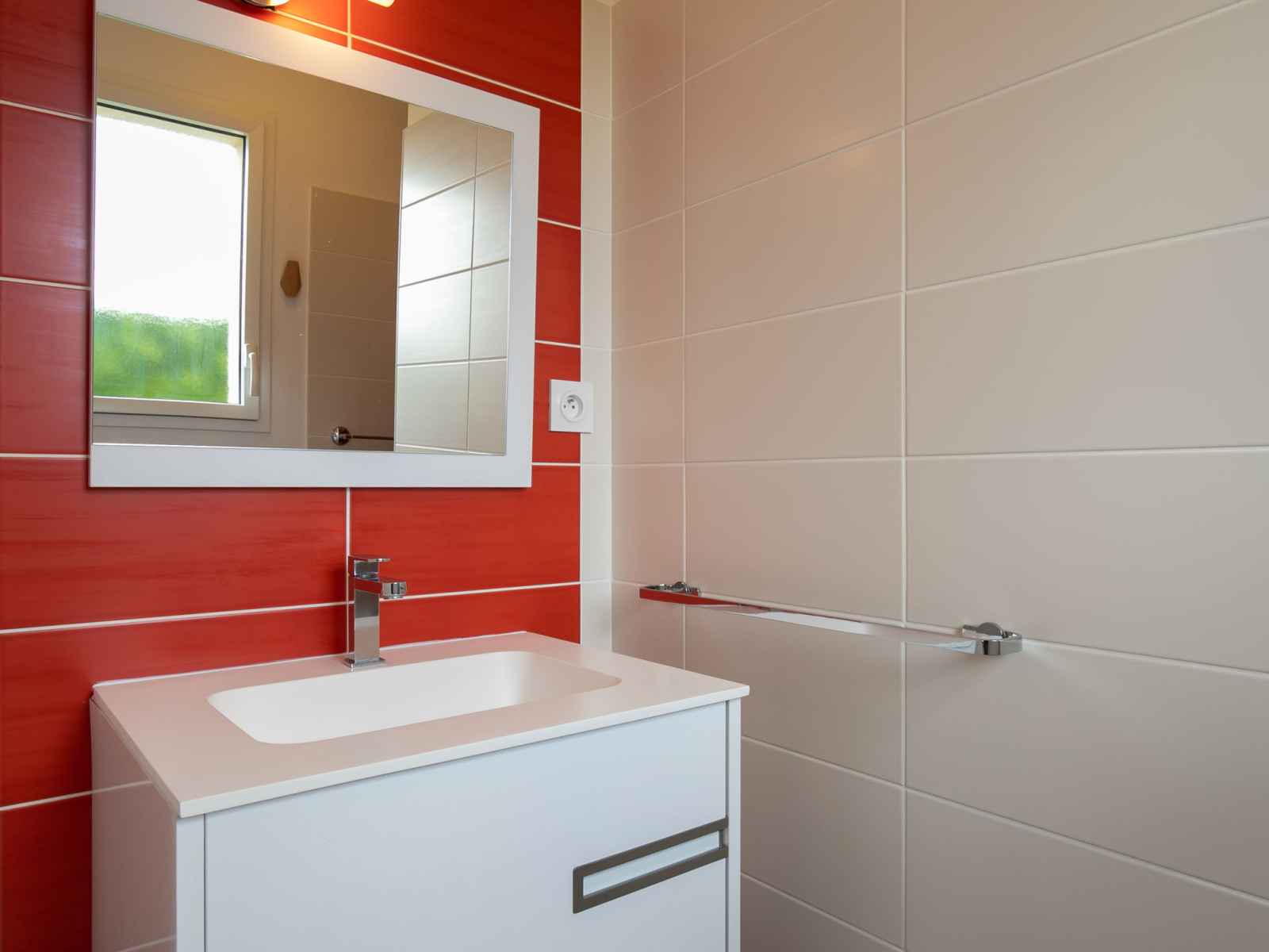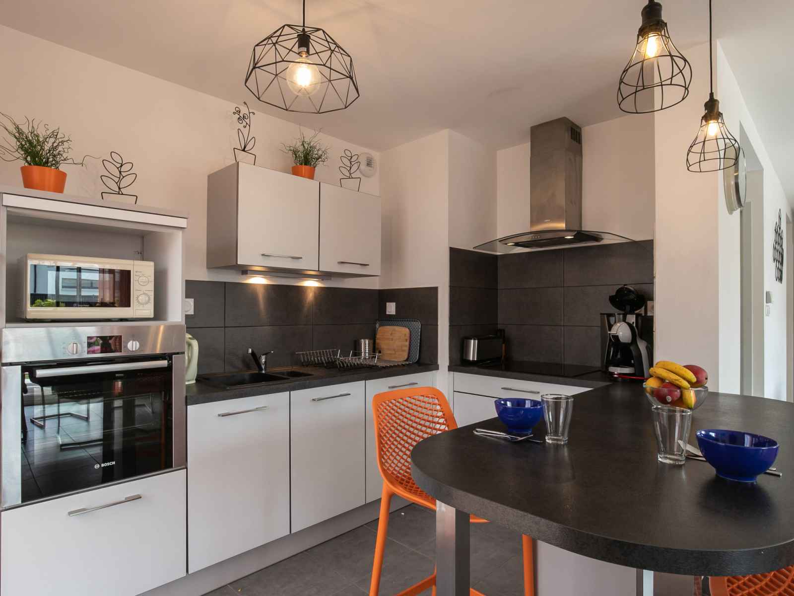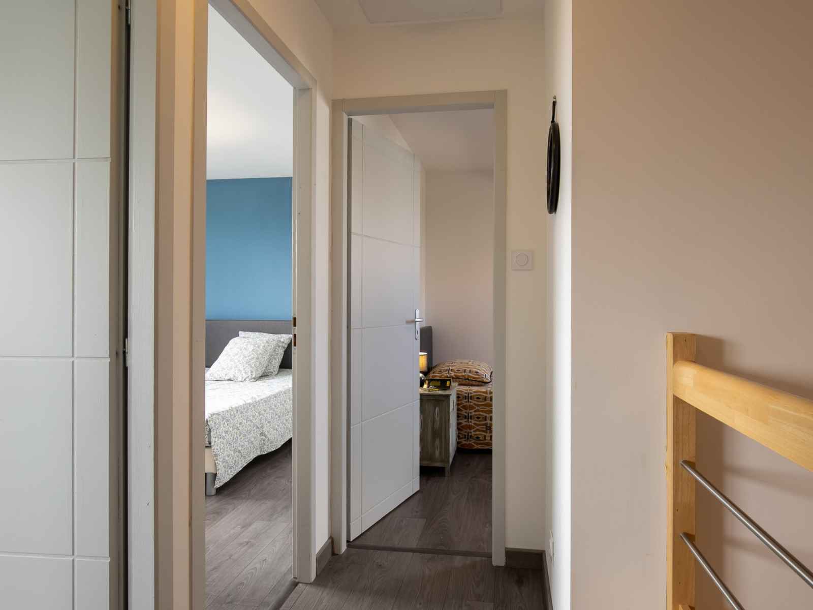 micro-ondes, congélateur, cafetière électrique) avec petite table pour les repas. Sortie sur le jardin. WC séparé. À l'étage supérieur: 2 chambres, chaque chambre avec: 1 grand-lit (140 cm, longueur 190 cm). 1 chambre avec 1 lit (90 cm, longueur 190 cm). Bain/WC. Chauffage. Sol en parquet. Terrasse, situation sud. Meubles de terrasse, barbecue (portable), chaises longues (2), réduit. A disposition: lave-linge, chaise haute pour enfant, lit bébé. Internet (Connexion WIFI, gratuit). Veuillez noter: maison non-fumeur. Détecteur de fumée. 29030 000057 F2