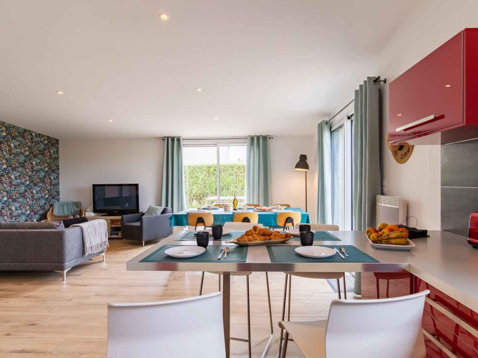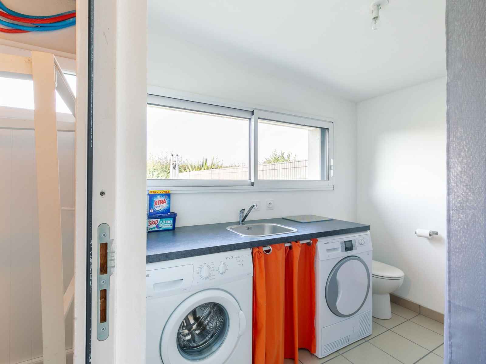longueur 190 cm). Cuisine ouverte (four, lave-vaisselle, 4 plaques à induction, grille-pain, bouilloire électrique, micro-ondes, cafetière électrique) avec petite table pour les repas. Douche, WC séparé, double vasque. Chauffage électrique. Meubles de terrasse, barbecue (portable), chaises longues (4). A disposition: lave-linge, sèche-linge, chaise haute pour enfant, lit bébé. Internet (Connexion WIFI, gratuit). Veuillez noter: maison non-fumeur. Maximum 1 animal/ chien autorisé. Détecteur de fumée. 29030 000079 M3