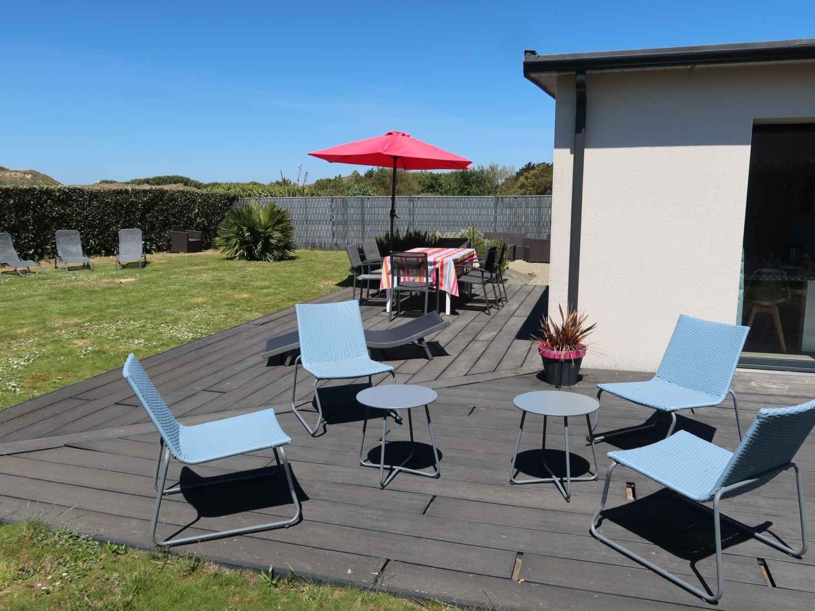 Belle maison individuelle moderne, confortable "ty amiets". dans le quartier de clos an theven, à 4.5 km du centre de cléder, à 6 km du centre de plouescat, à 250 m de la mer, à 250 m de la plage. a usage privé: terrain 520 m2, jardin entretenu avec pelouse et plantes. infrastructures de la maison: réduit pour bicyclettes. place de parking