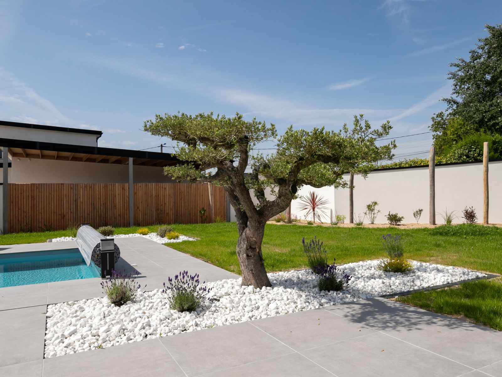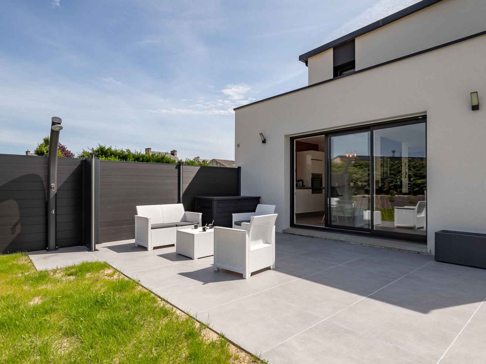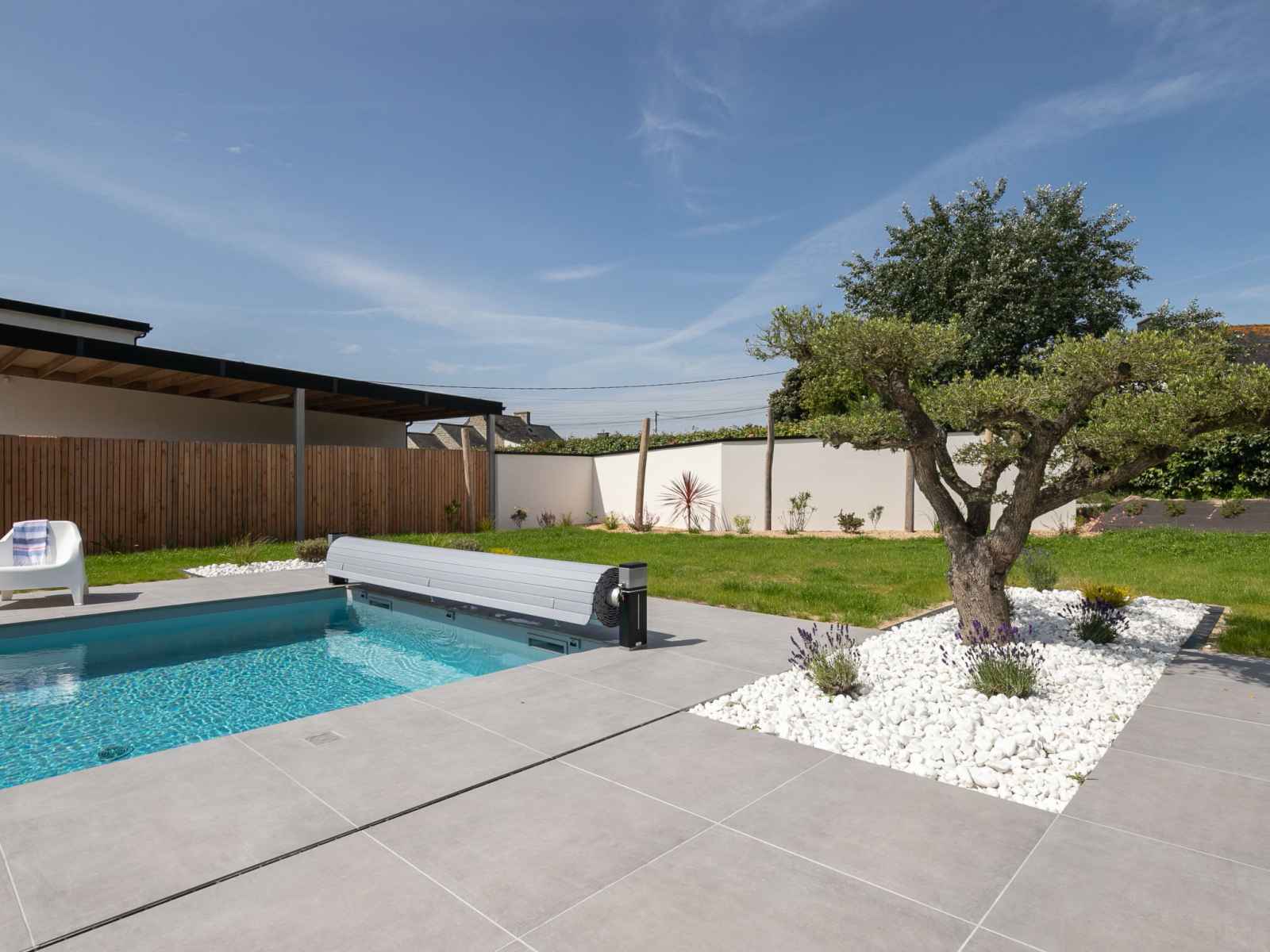 Belle maison individuelle moderne "villa ty coz". dans le quartier de kerfissien, à 6 km du centre de cléder, situation tranquille dans un quartier résidentiel, à 400 m de la mer, à 400 m de la plage. a usage privé: terrain 1'300 m2, jardin avec pelouse et plantes, piscine rectangulaire, chauffée (4 x 8 m, 32 m2, profondeur 150 cm,