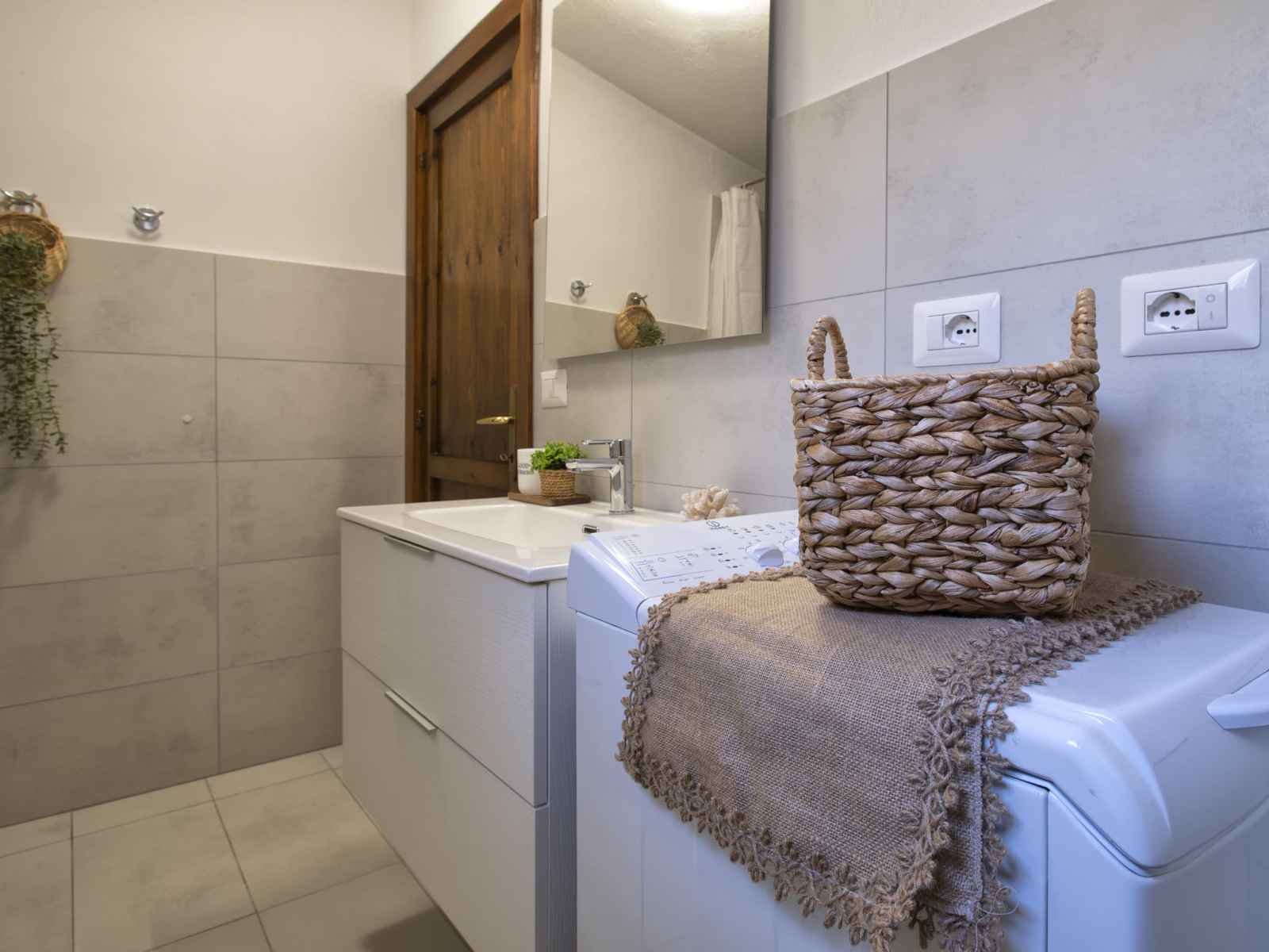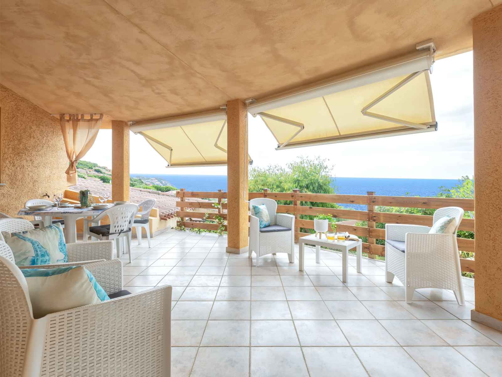 Grande terrasse partiellement couverte. Meubles de terrasse, barbecue. Belle vue sur la mer et les alentours. A disposition: lave-linge, chaise haute pour enfant, lit bébé (en sus), sèche-cheveux. IT090074C2000R3896